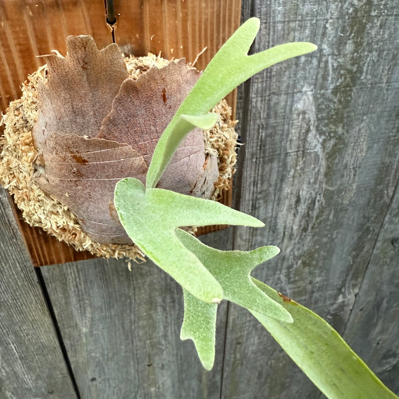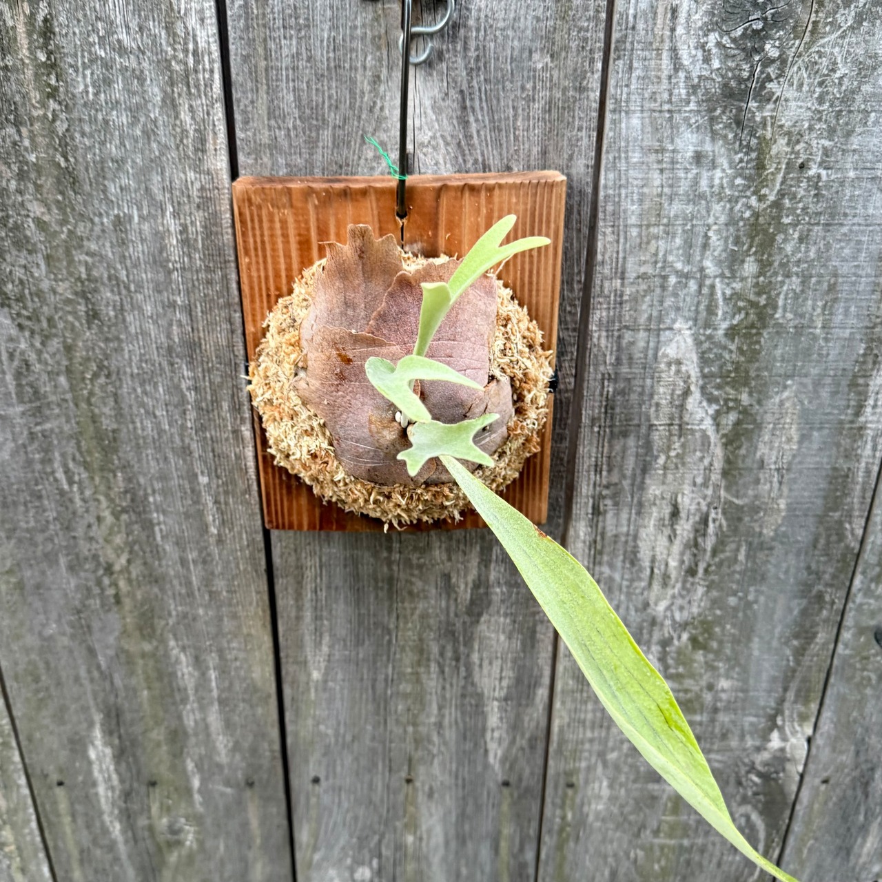 タイ北部チェンマイにナーセリーを持つbannaさんから譲っていただいた親株からの子株です。厚みのある貯水葉と、白く細い胞子葉はとても美しく、非常に優雅で見応えのある姿に成長します。P.モンキーキング(willinckii × veitchii)
