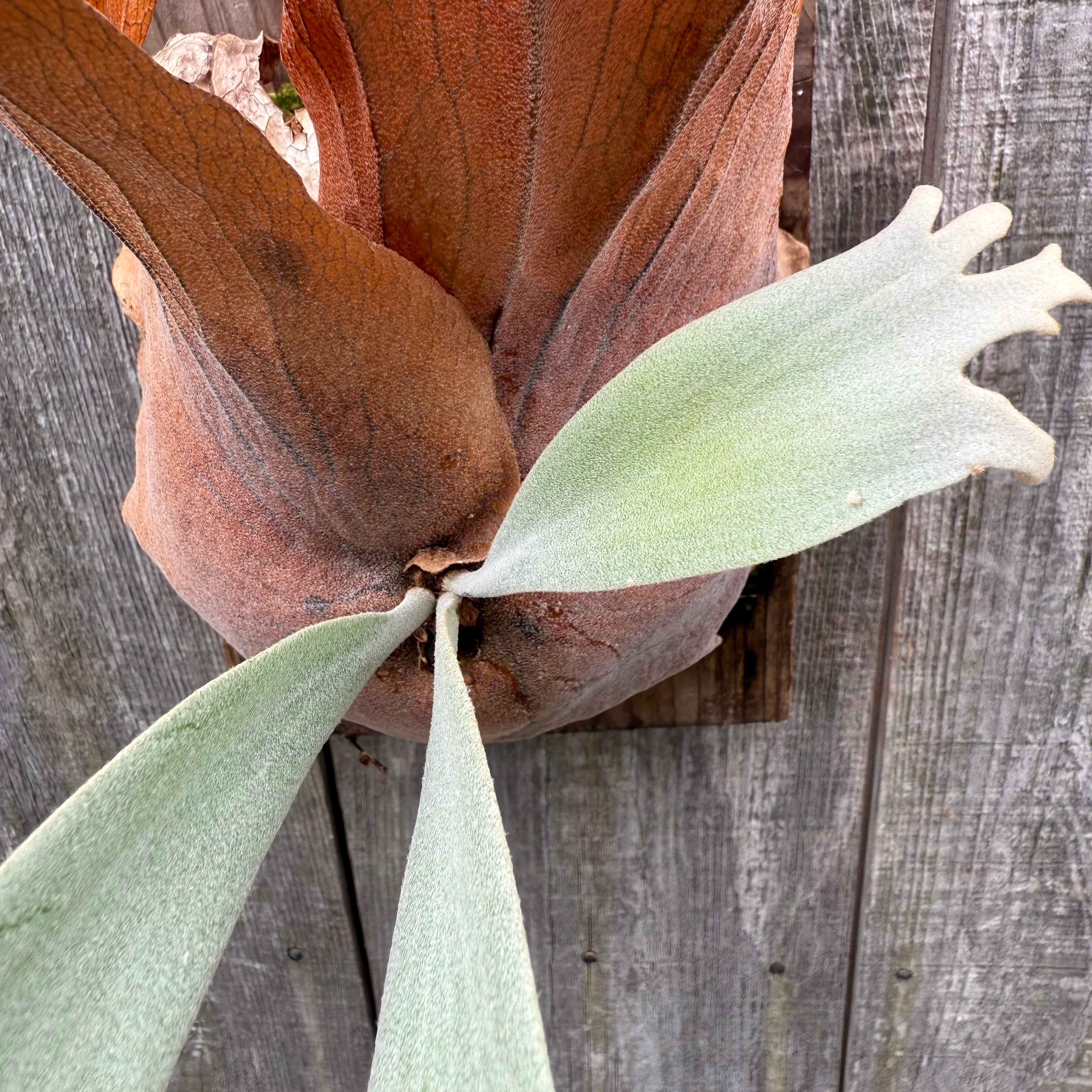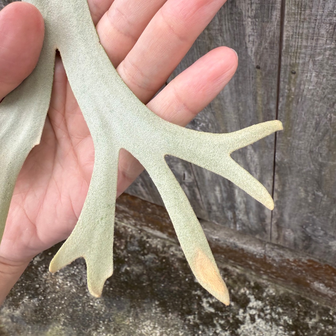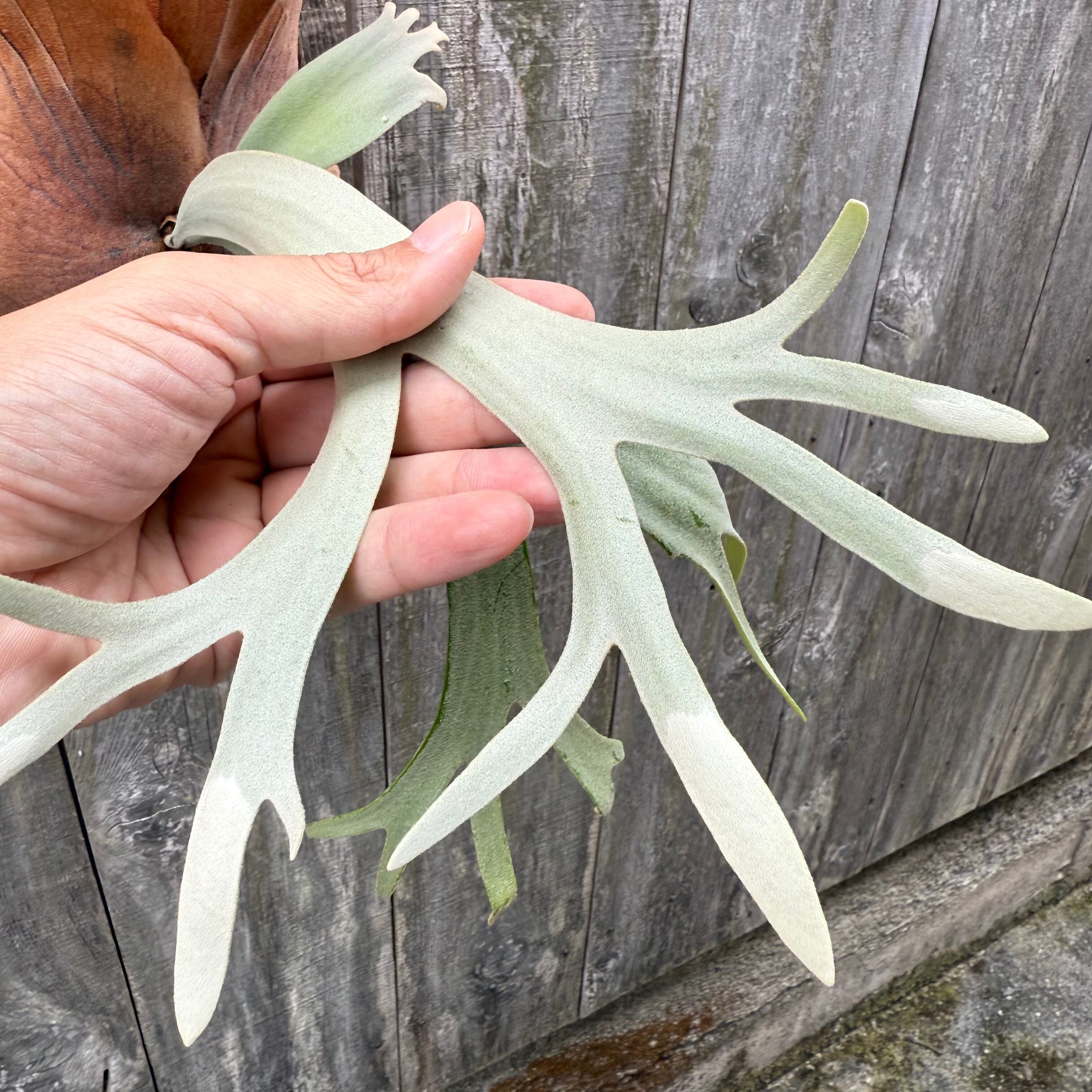 非常に白く繊細な胞子葉が成長しており、これからの成長が楽しみな一株です。コンパクトながら、既に胞子もつけております。