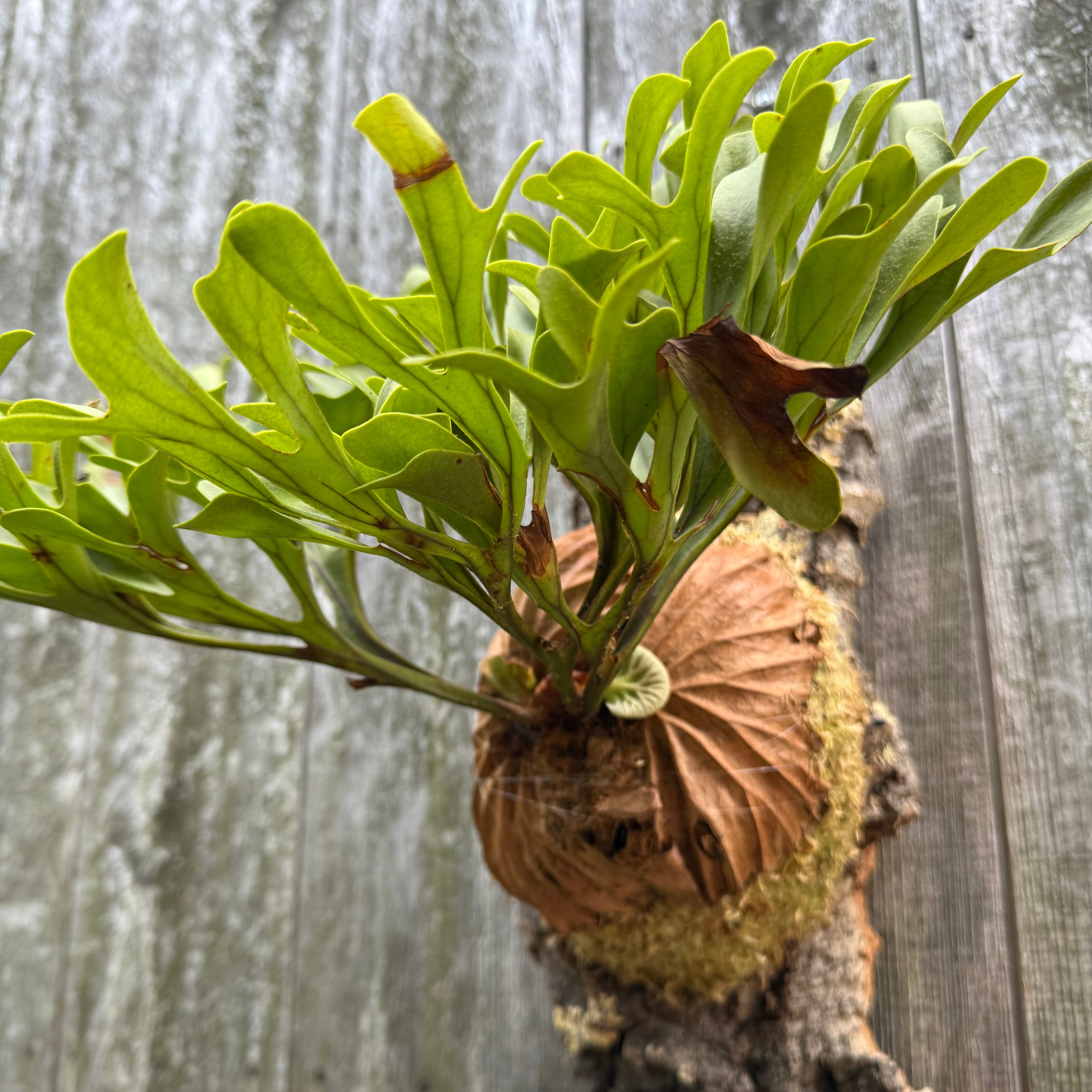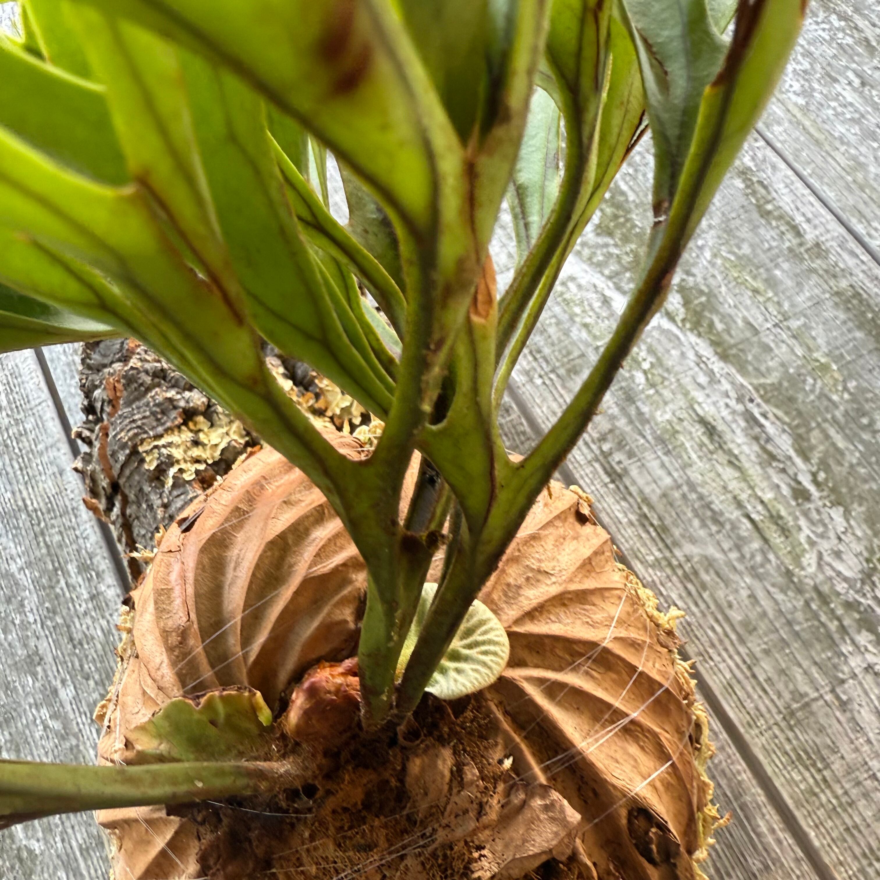 胞子葉、貯水葉には野生種ならではの痛みや傷はありますが、胞子栽培よりも強靭で味があります。成長点からは新しい葉の成長もあります。