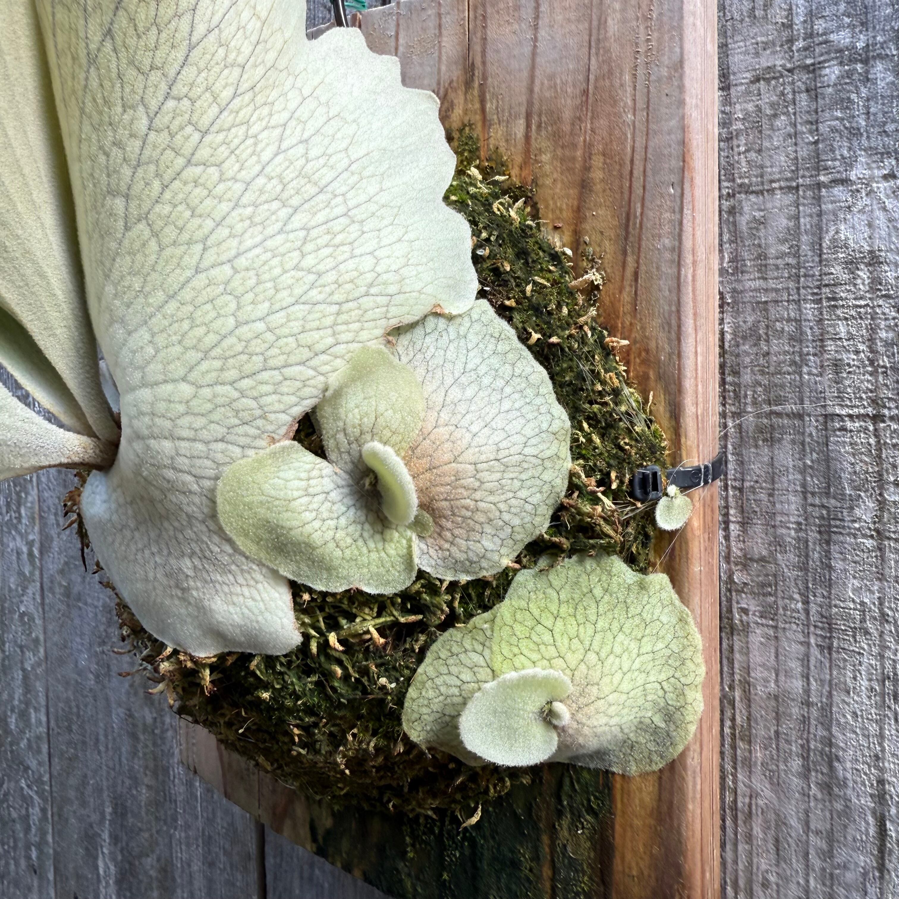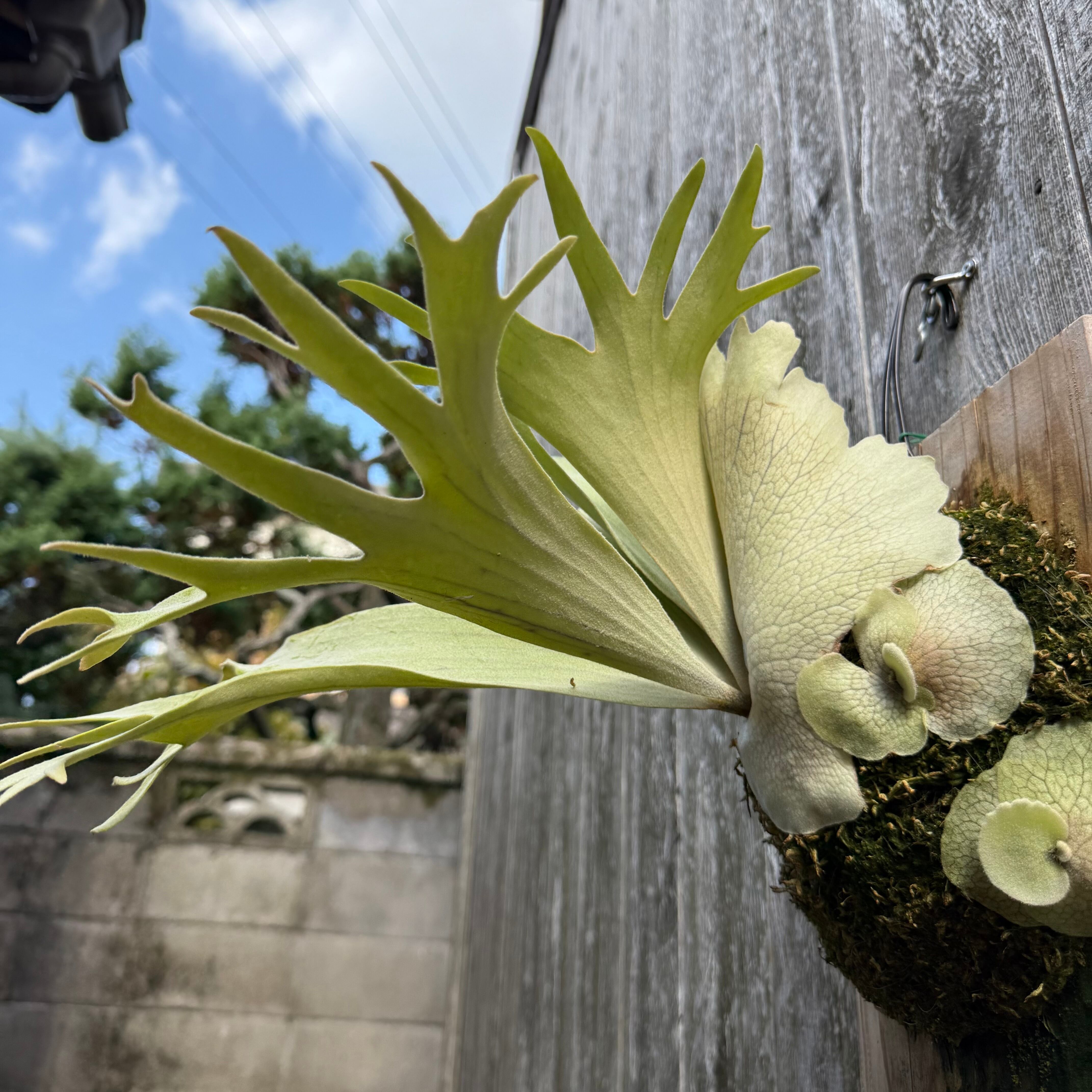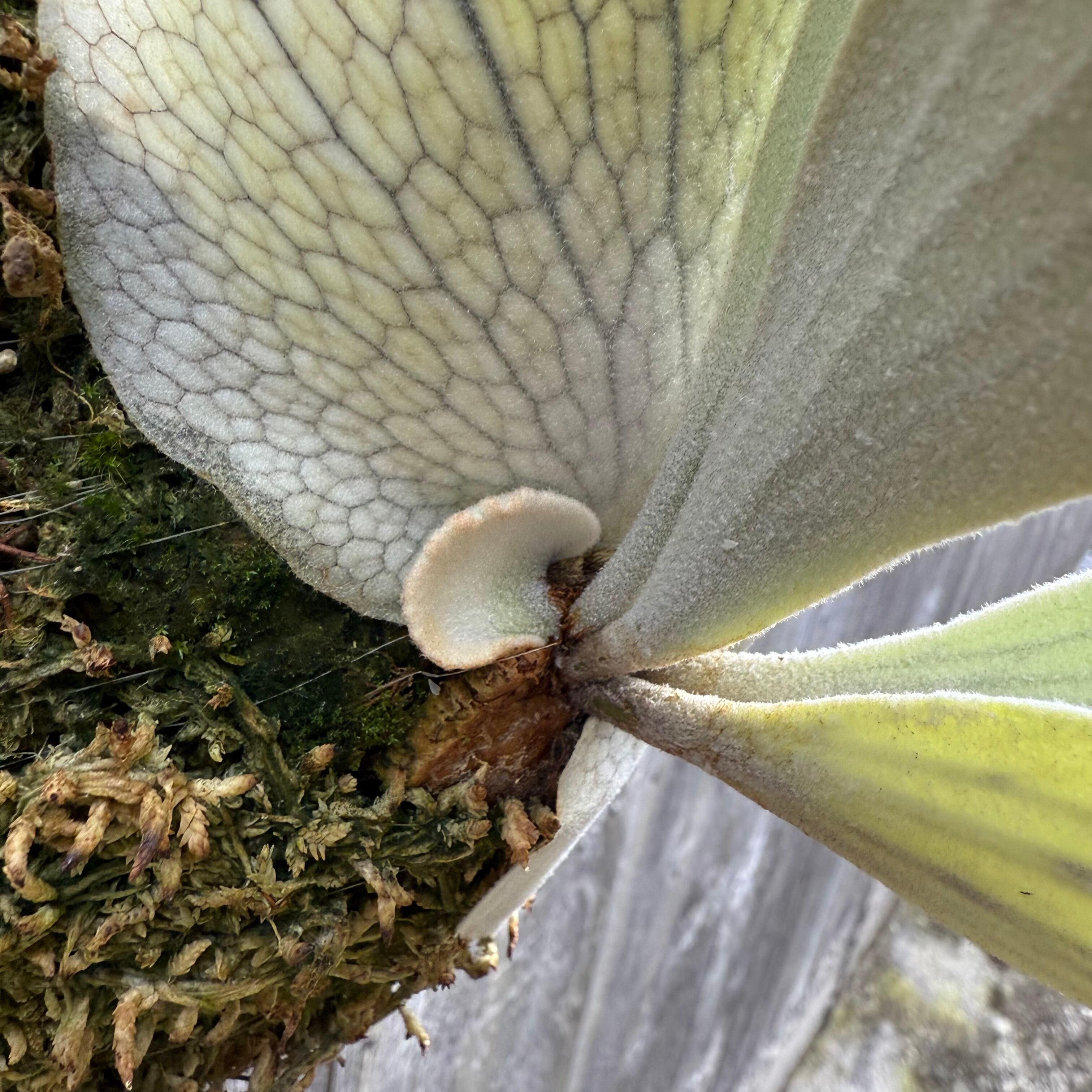 Yotさんの新品種の一つです。 親株は星状毛が非常に白く、輝いているように見える胞子葉が印象的でした。現在は特徴的な白い胞子葉が成長しております。国内にはまだほとんど入ってきていない品種となります。