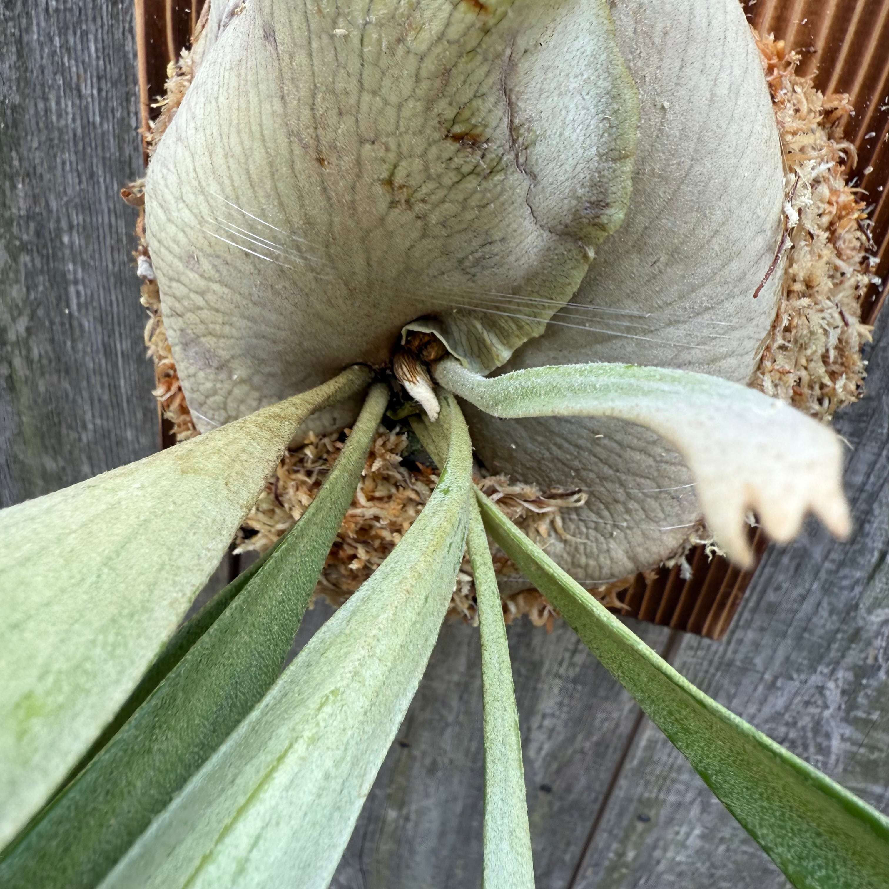 親株は胞子葉が非常に白く特徴的な草姿をしており、異彩を放っています。既に中株サイズとなっており、安心して育成できるのではないでしょうか。