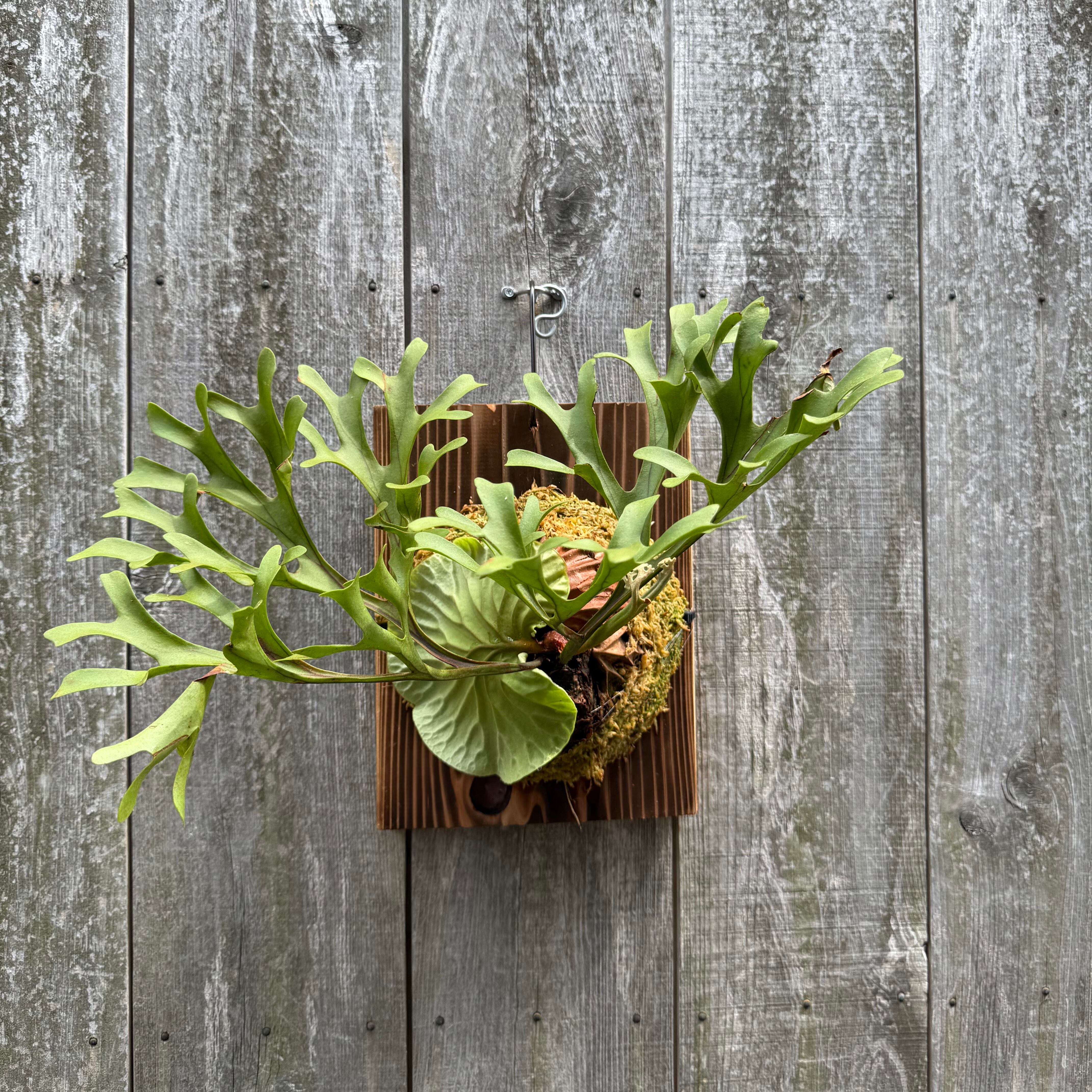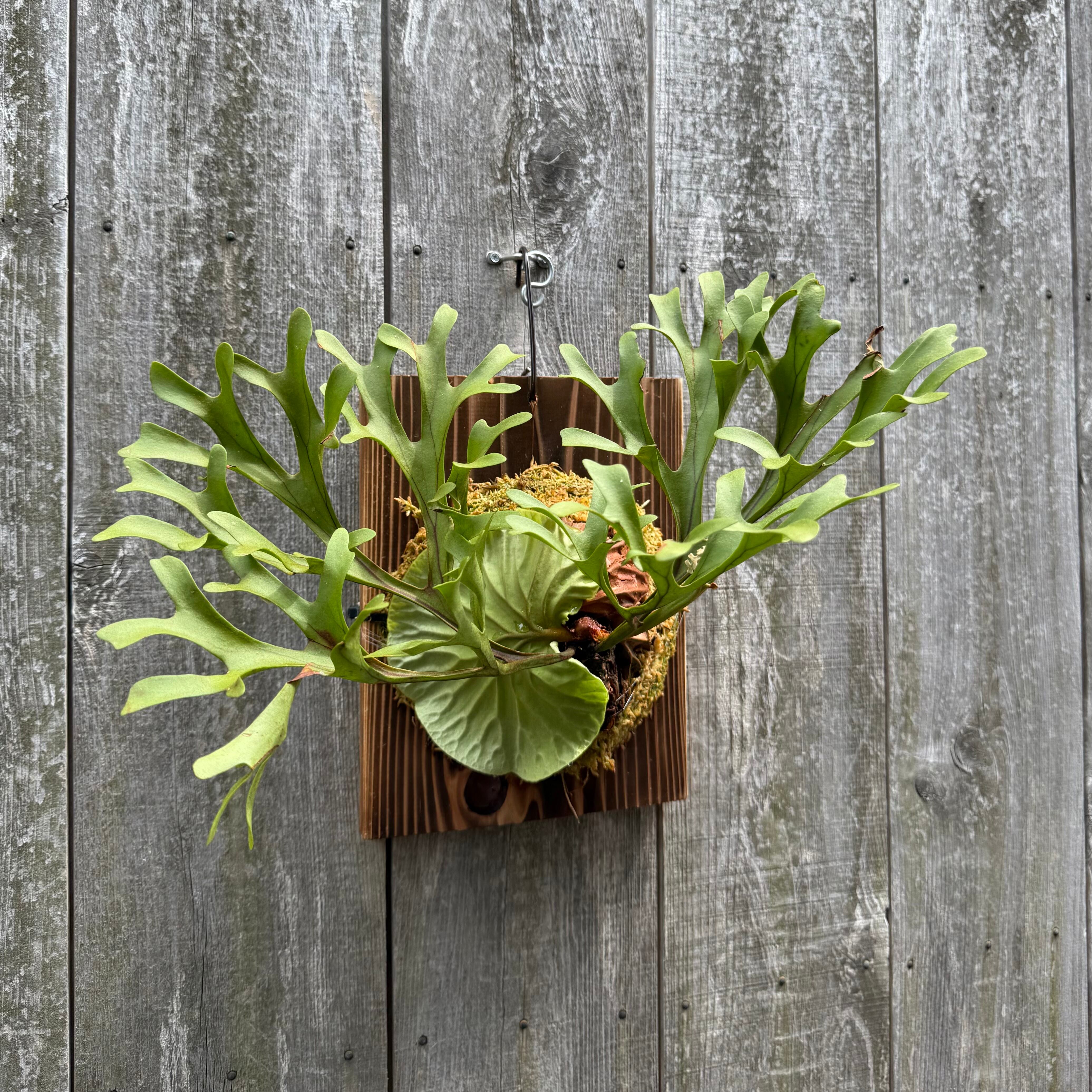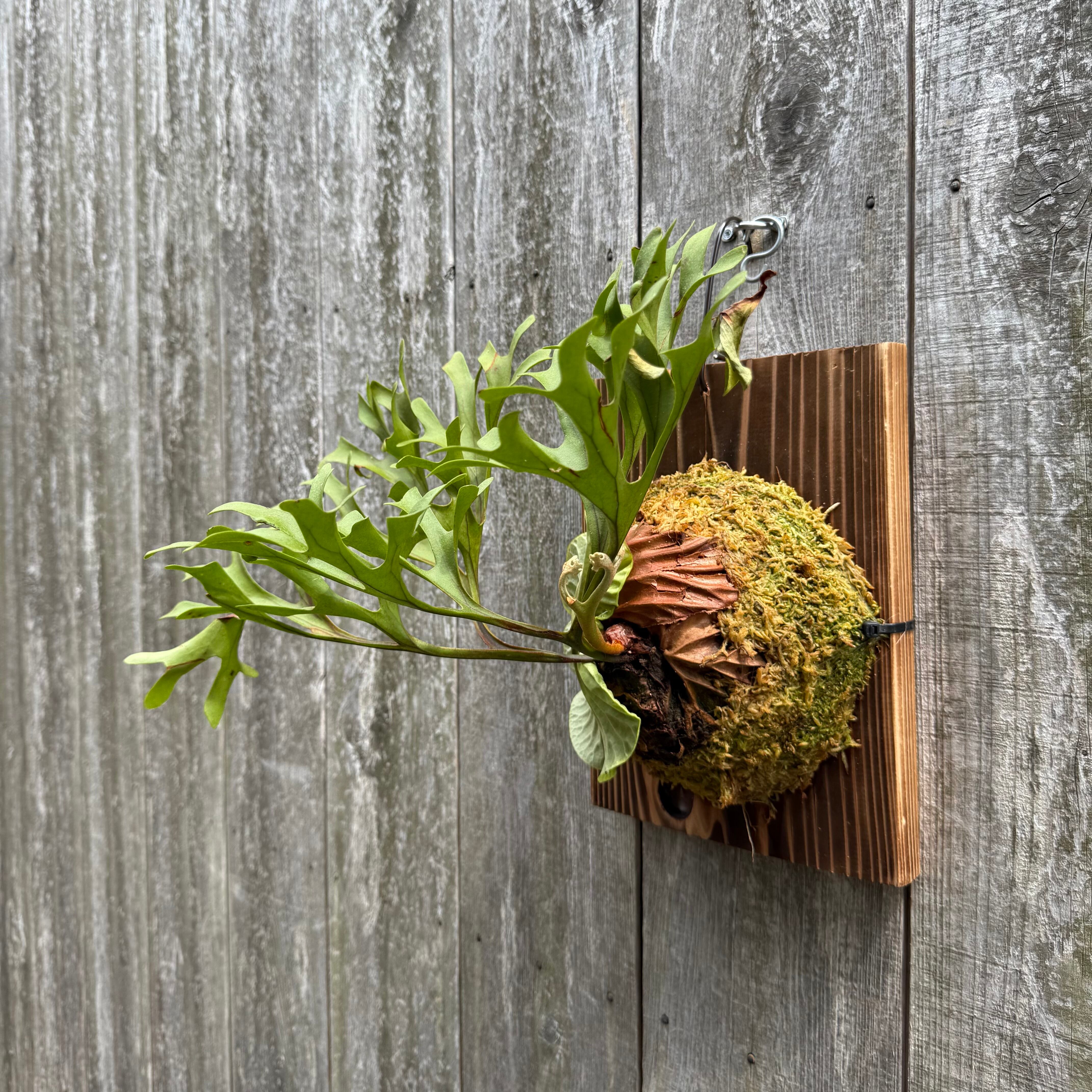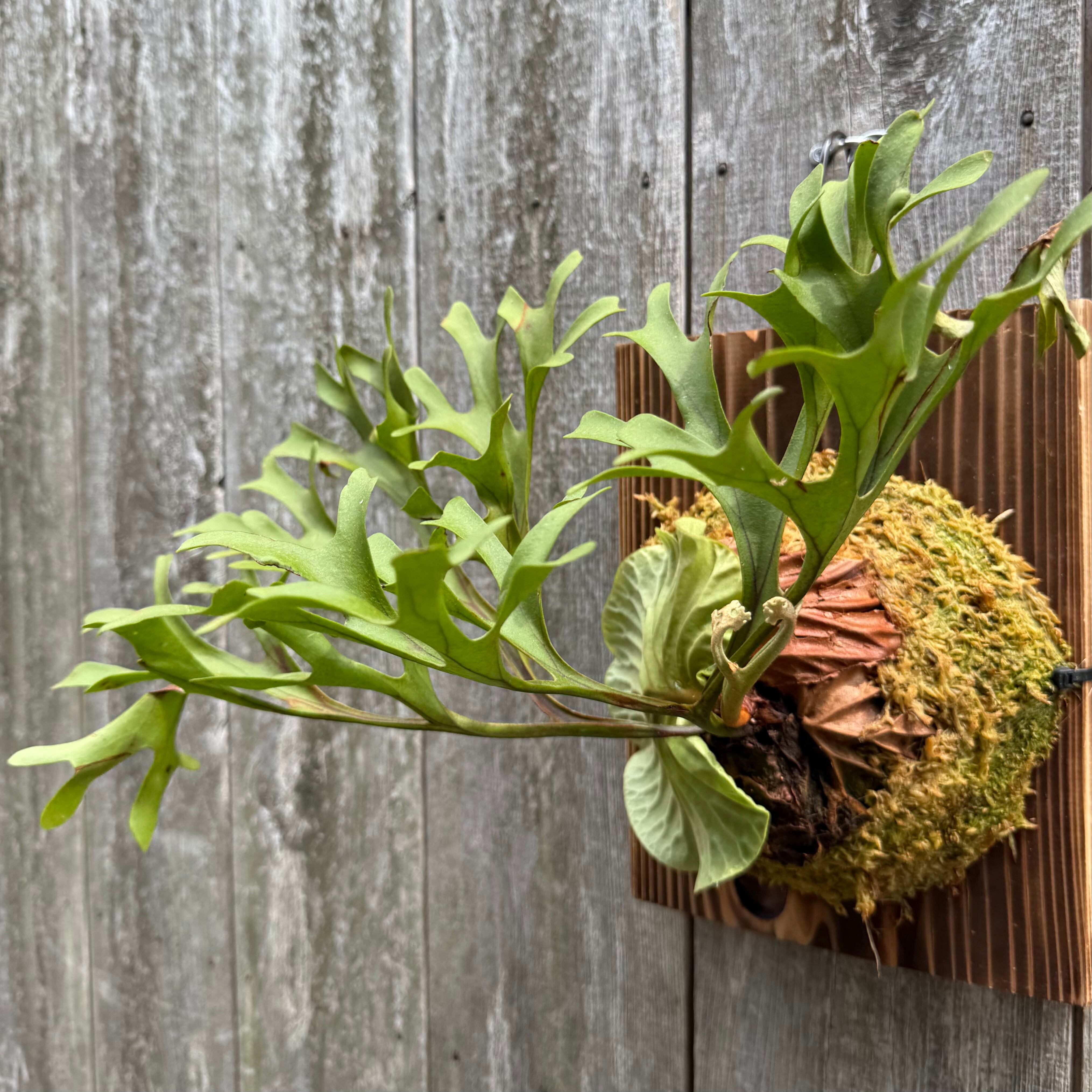 ワイルド株ならではの胞子葉、貯水葉には痛みや傷はありますが、胞子栽培よりも強靭で味があります。成長点からは新しい葉の成長もしっかりとあります。管理しやすい焼板につけております。お部屋のインテリアにいかがでしょうか。