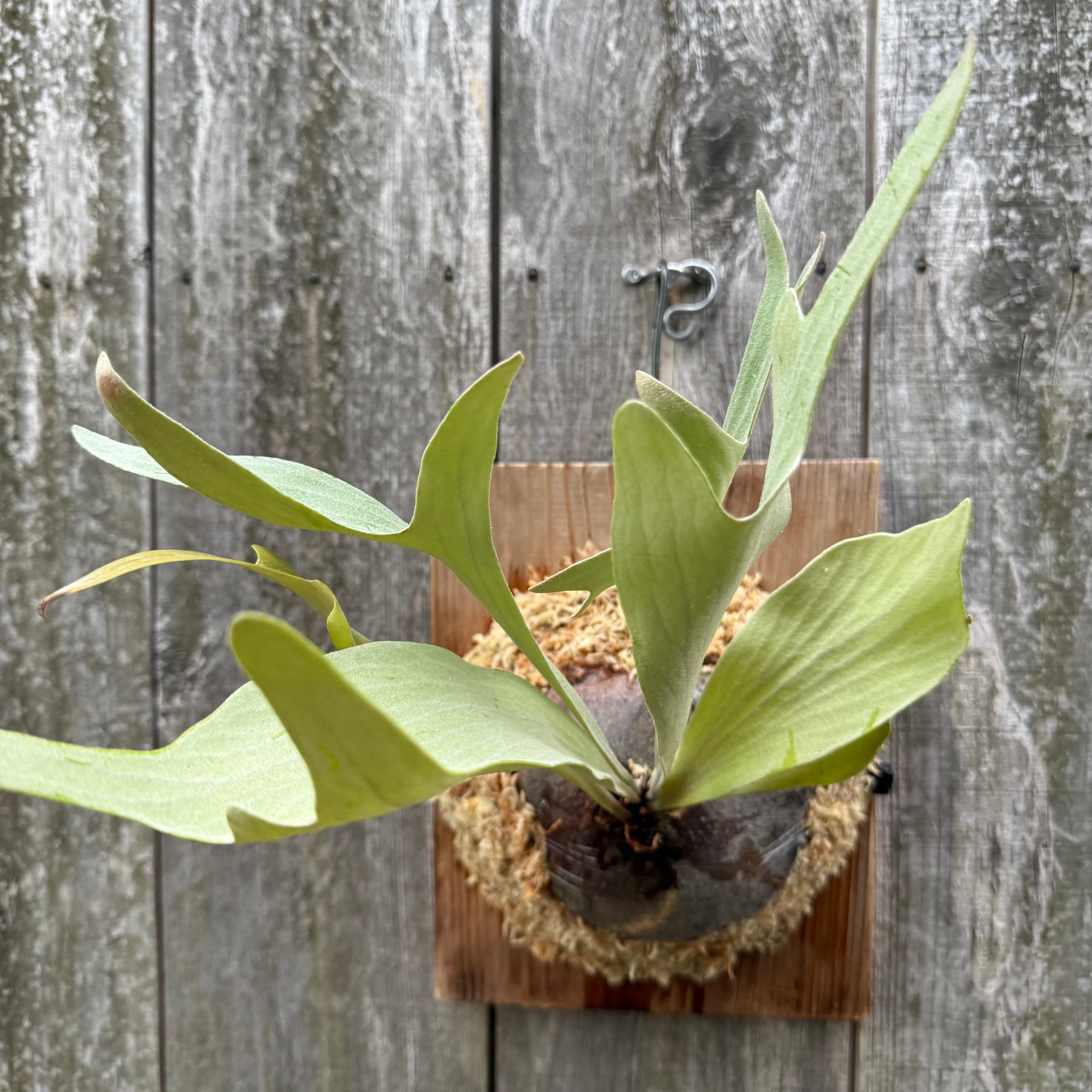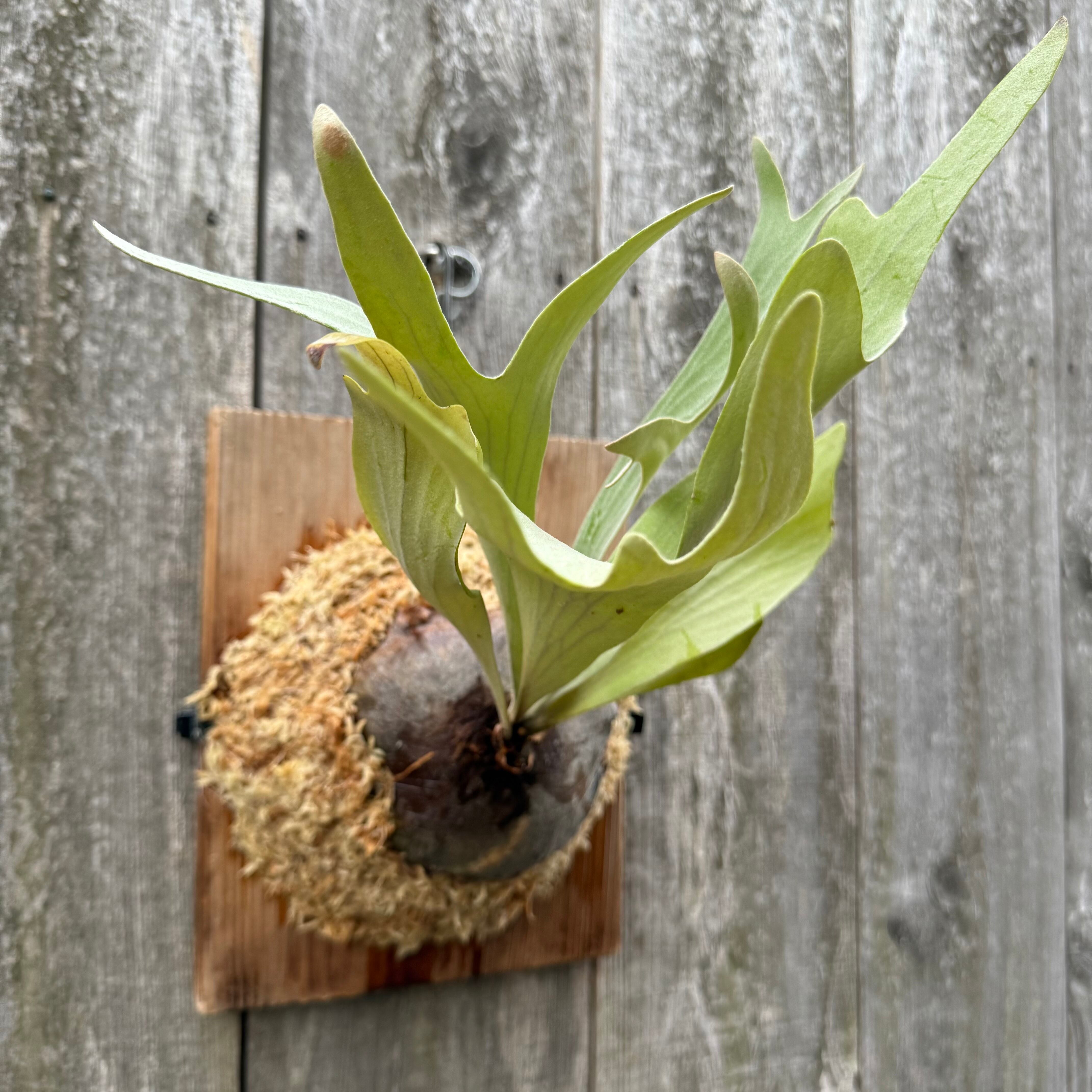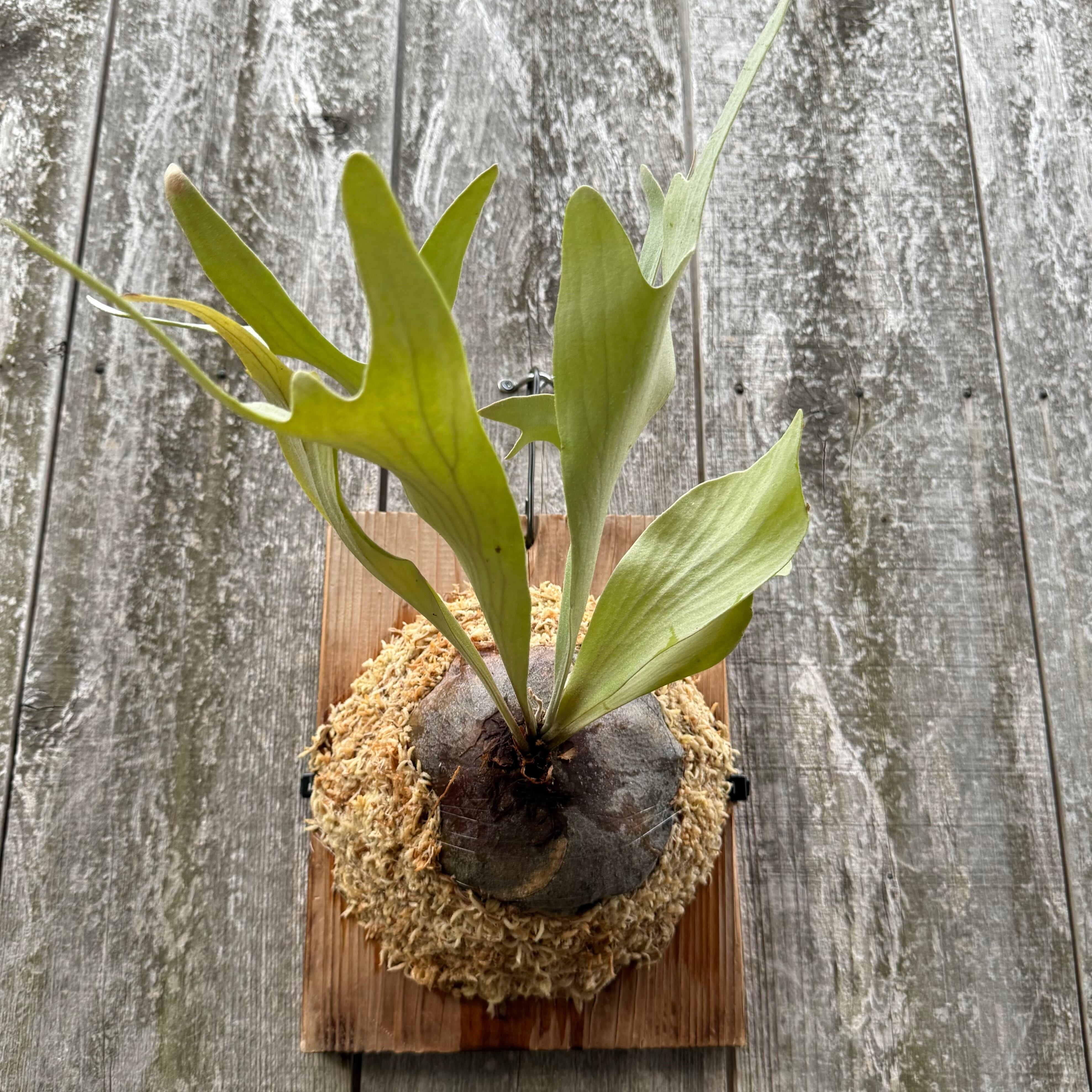 葉脈が美しく非常に白い胞子葉が特徴的です。胞子をつけると葉先がカールする人気品種。しっかりと根も回っており、今後の成長が楽しみな一株です。