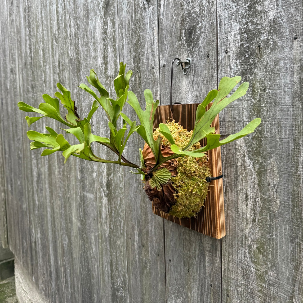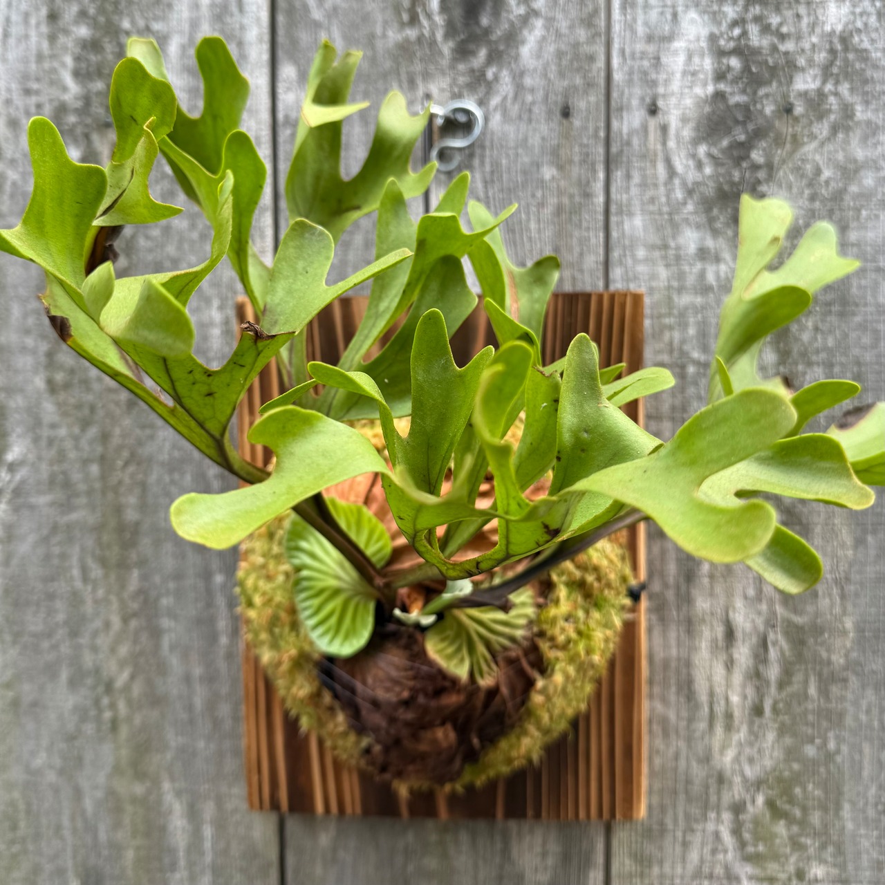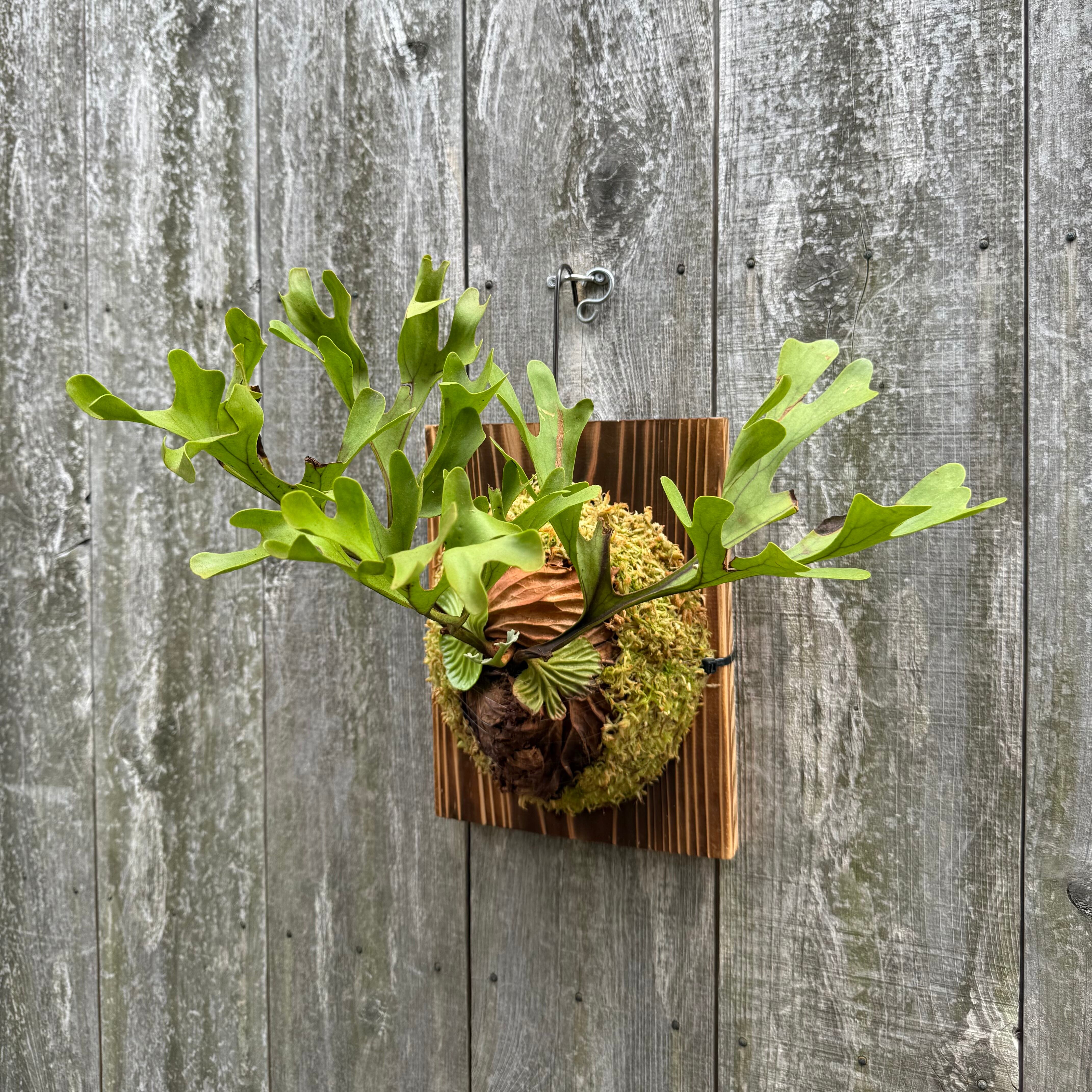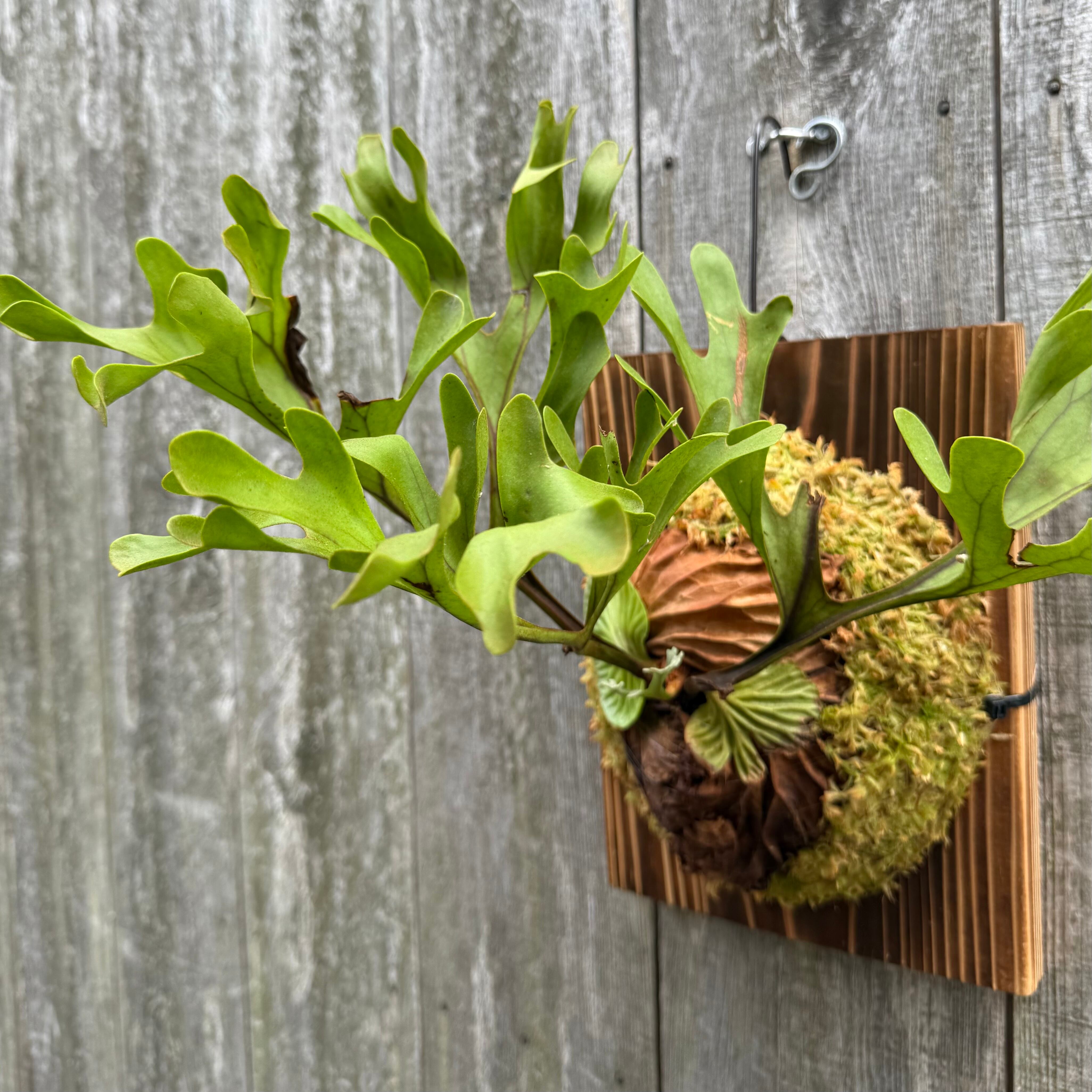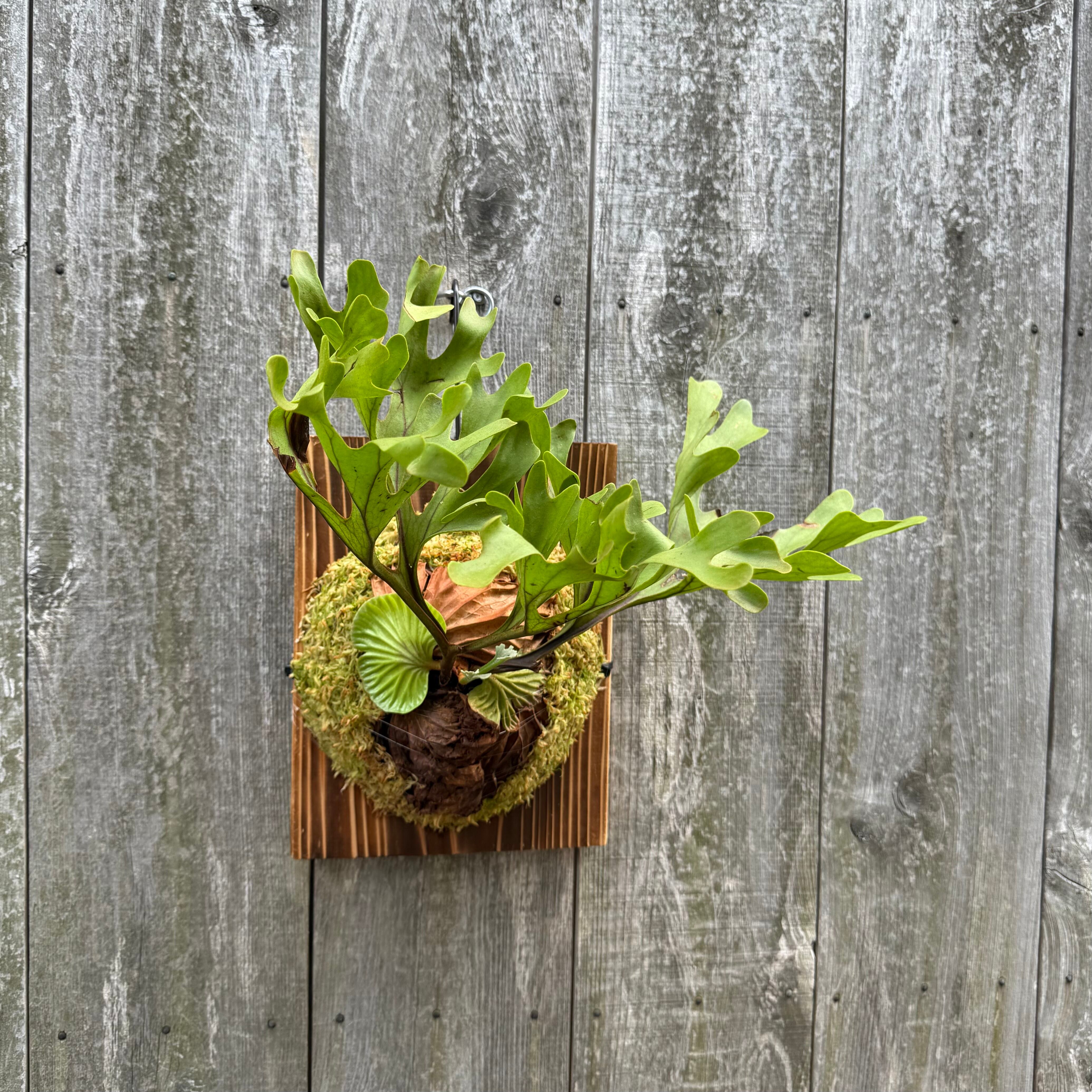 ワイルド株ならではの胞子葉、貯水葉には痛みや傷はありますが、胞子栽培よりも強靭で味があります。成長点からは新しい葉の成長もしっかりとあります。管理しやすい焼板につけております。お部屋のインテリアにいかがでしょうか。