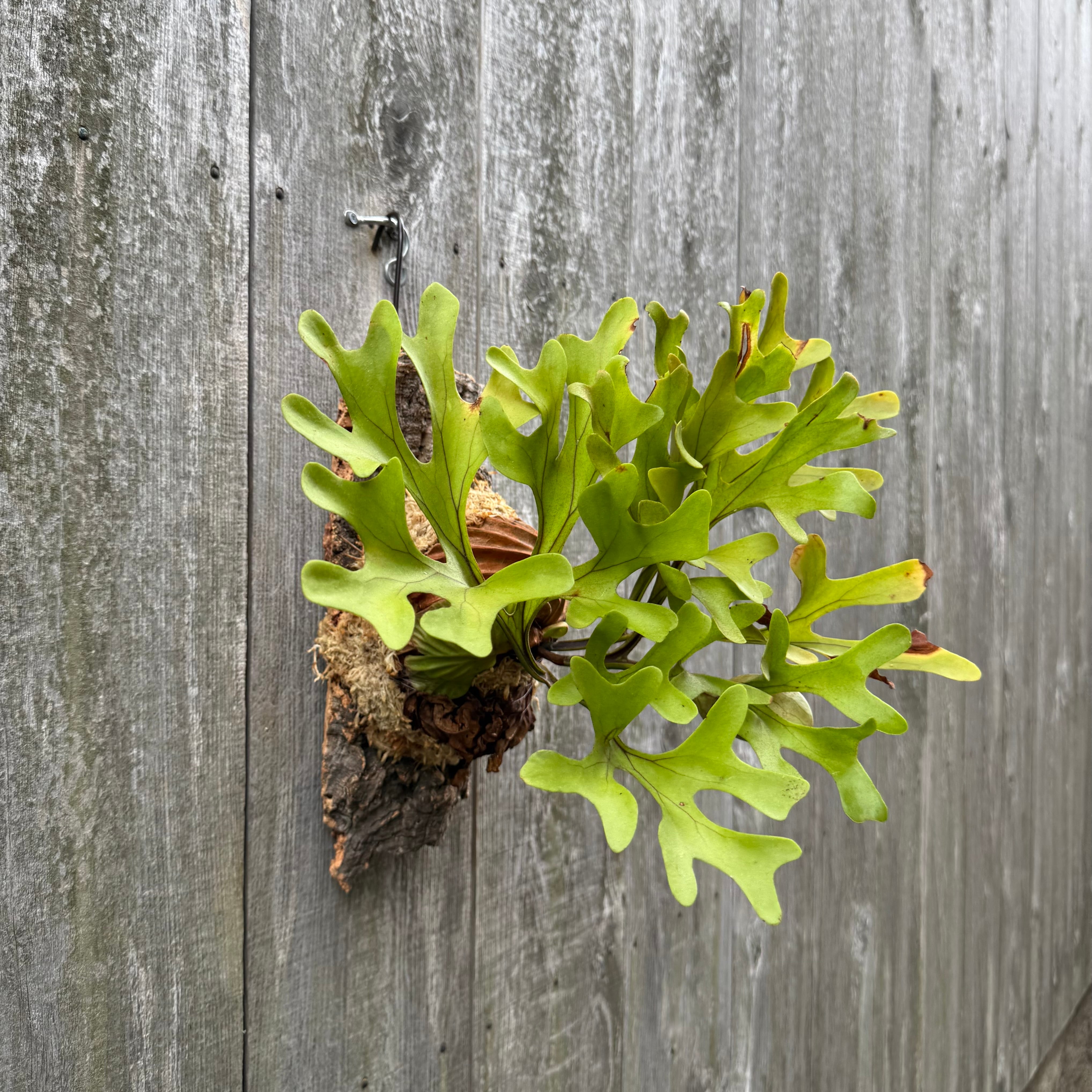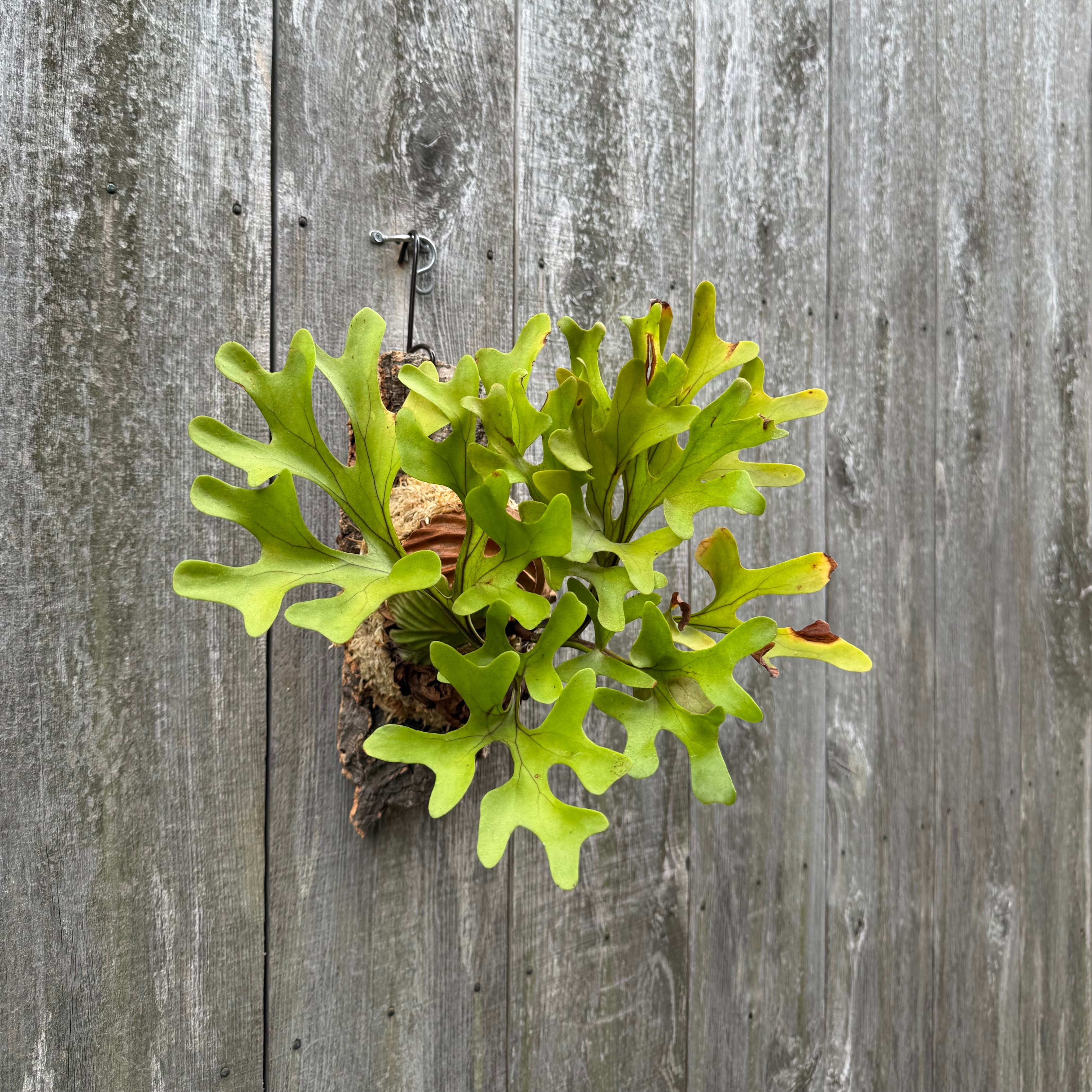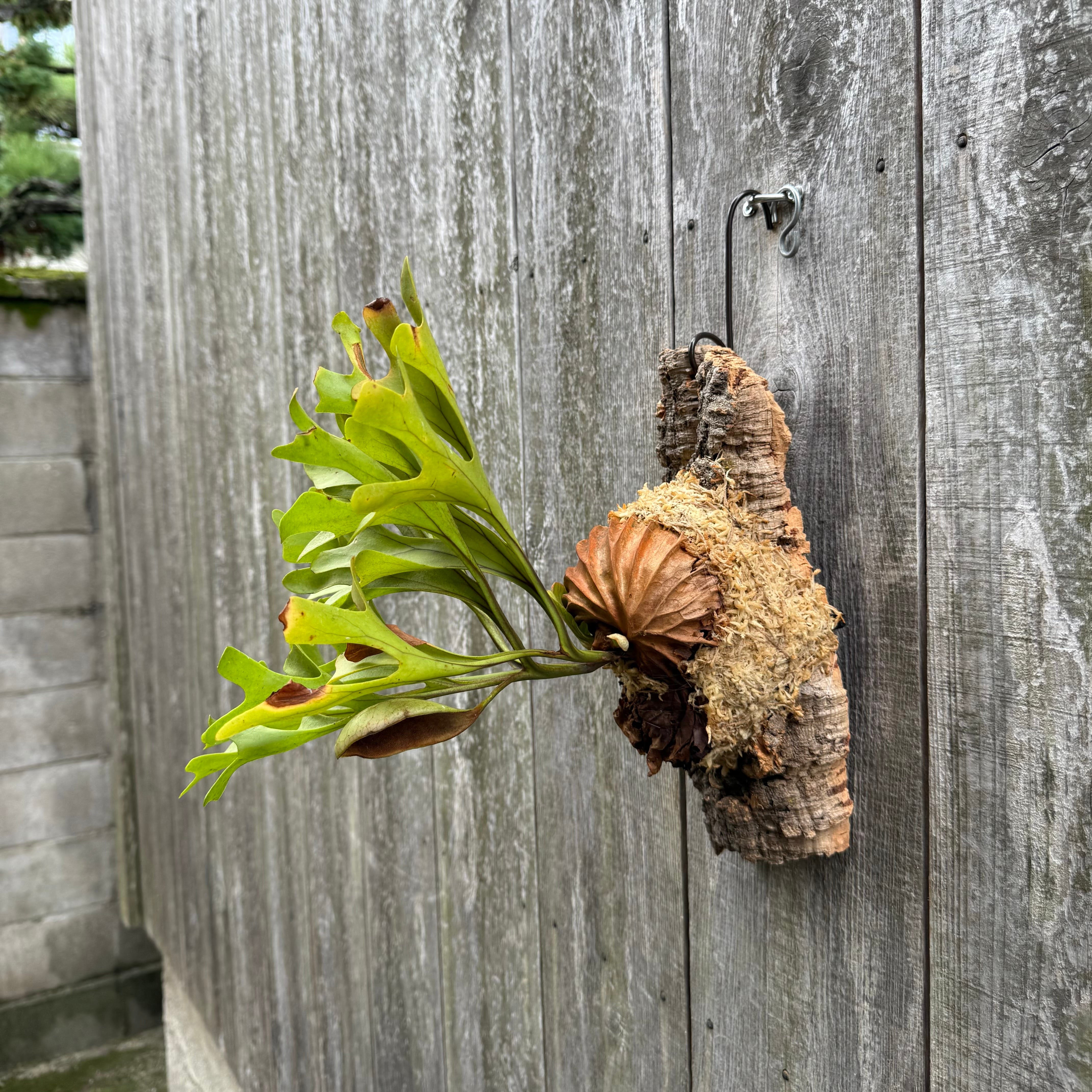 ワイルド株ならではの胞子葉、貯水葉には痛みや傷はありますが、胞子栽培よりも強靭で味があります。成長点からは新しい葉の成長もしっかりとあります。コルクに取いており、お部屋のインテリアにいかがでしょうか。