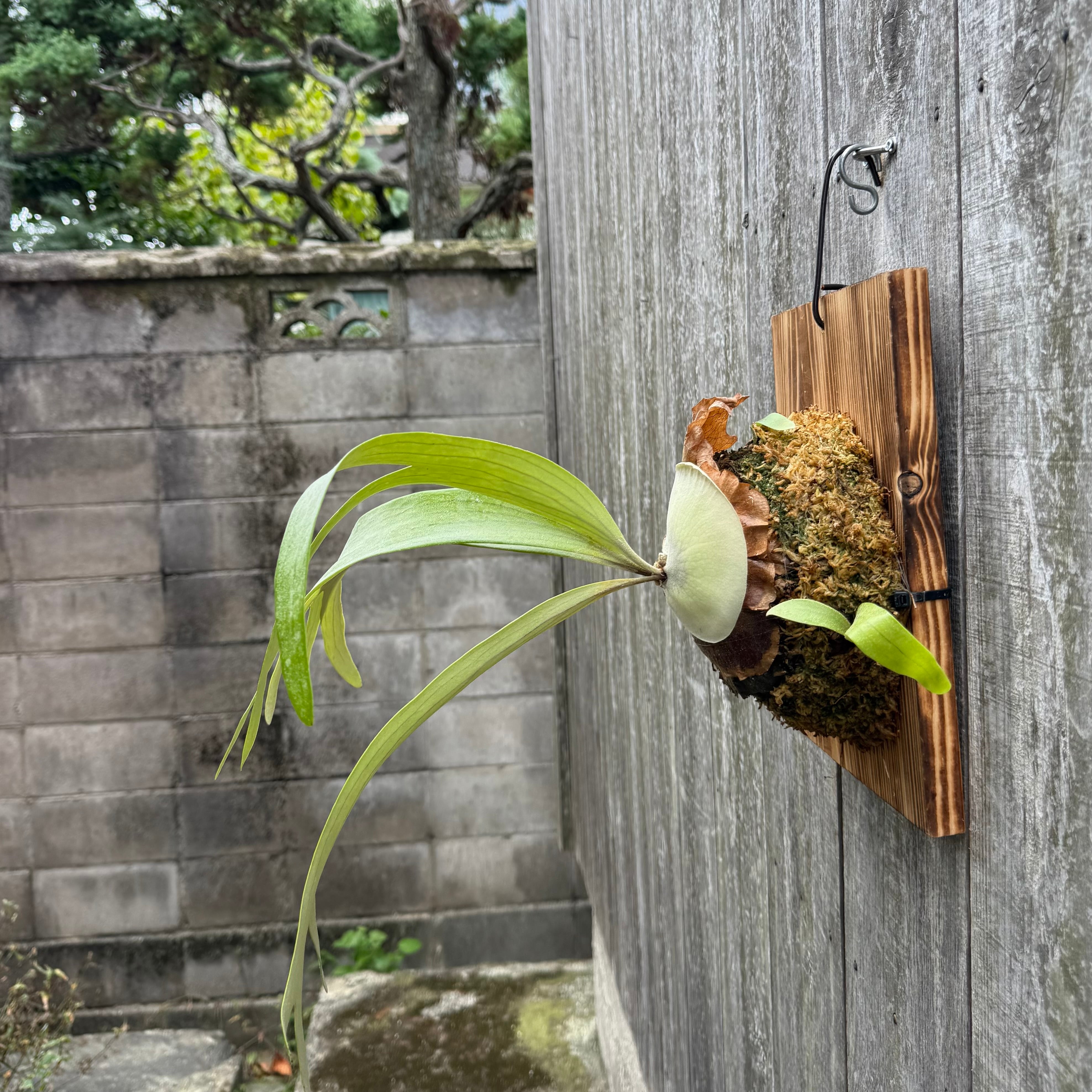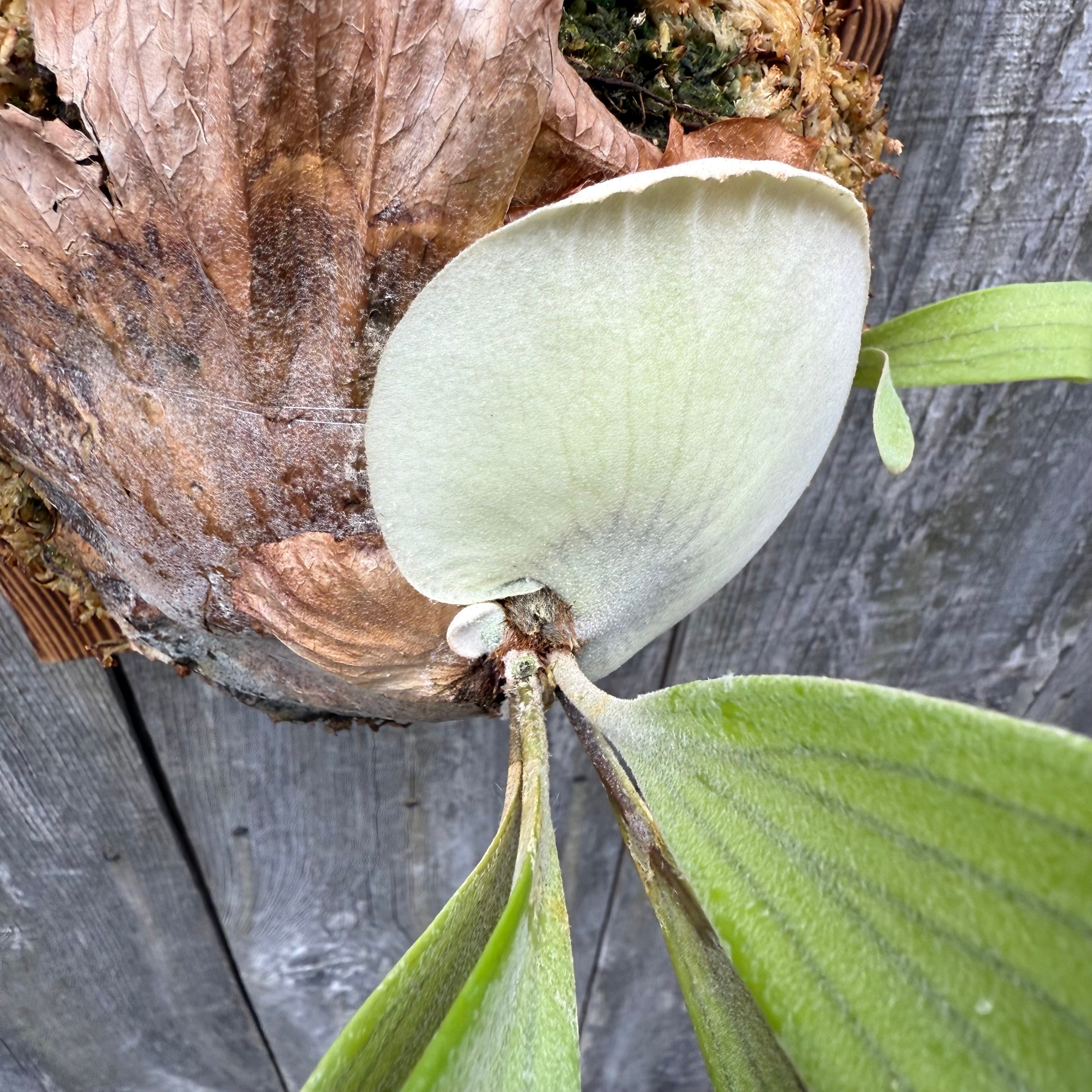 上向きに伸びてから垂れる胞子葉は、非常に優雅で美しく、群生にすると見事です。ウィリンキーのハイブリッド品種とされ、日本ではかなり希少な品種になります。CK Pavilion から仕入れた株からの子株となります。