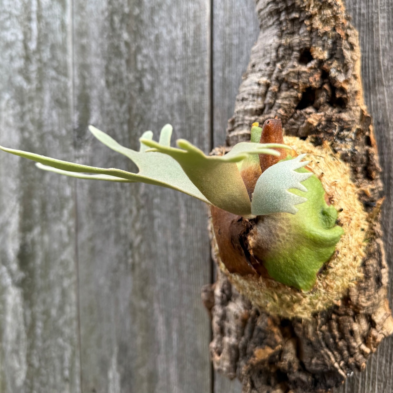 ウィリンキー jade girl のスポア株になります。人気のドワーフ品種になり、コンパクトなコルクに取り付けて仕立ててております。今後の成長が楽しみな一株です。
