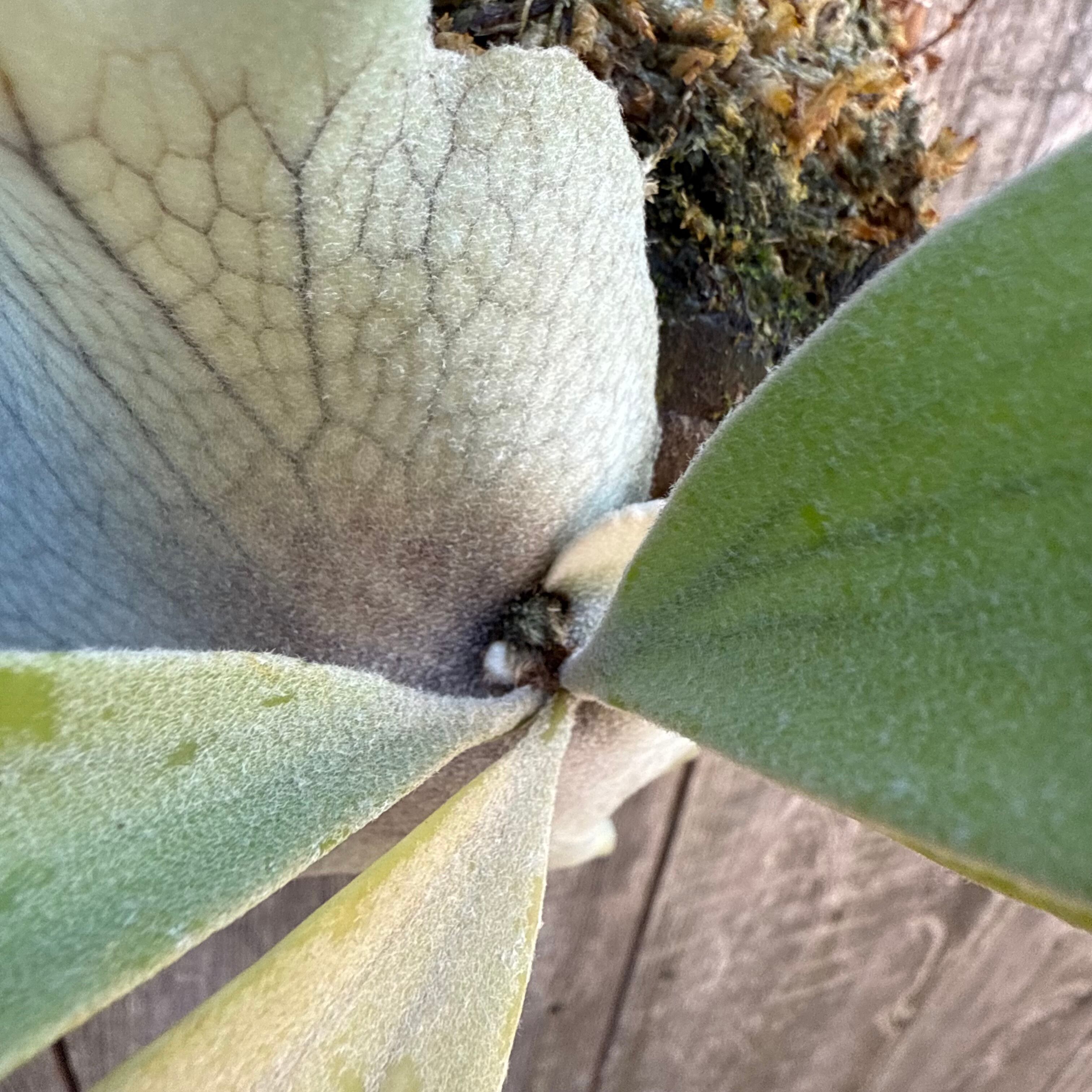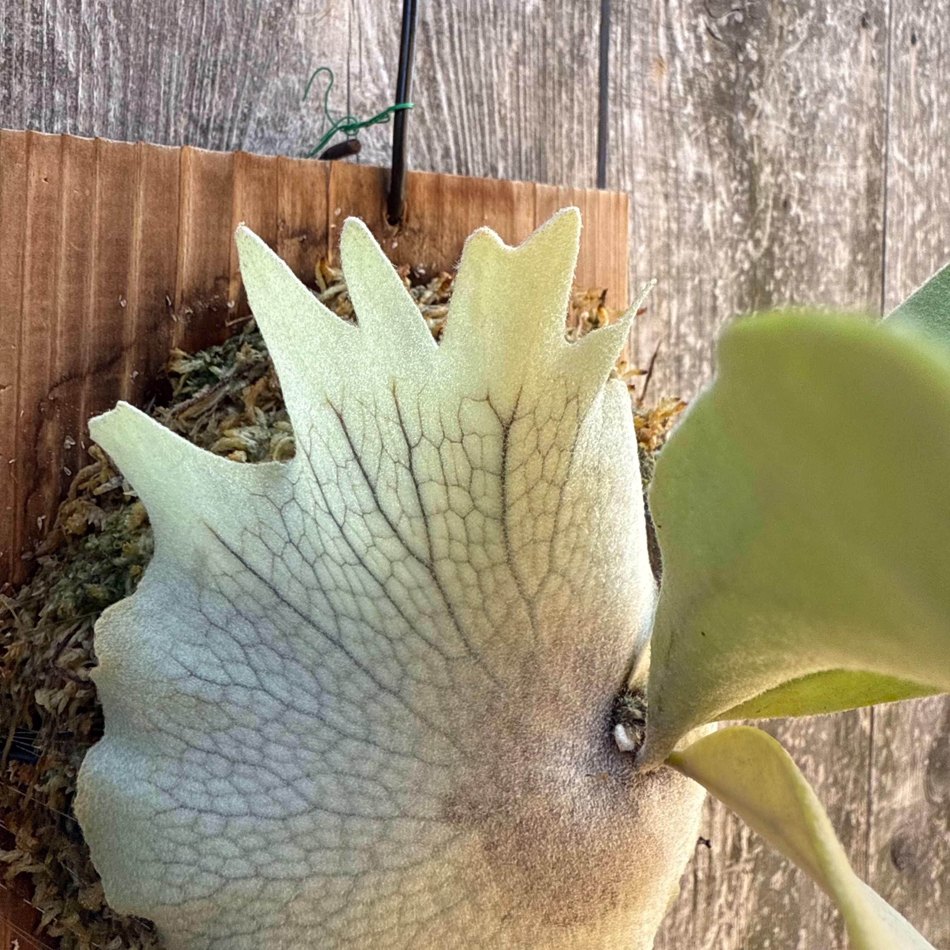 willinckii と veitchii のハイブリッドになります。成熟すると白くて肉厚のある葉を付け、勢いよく広がる胞子葉は見事です。