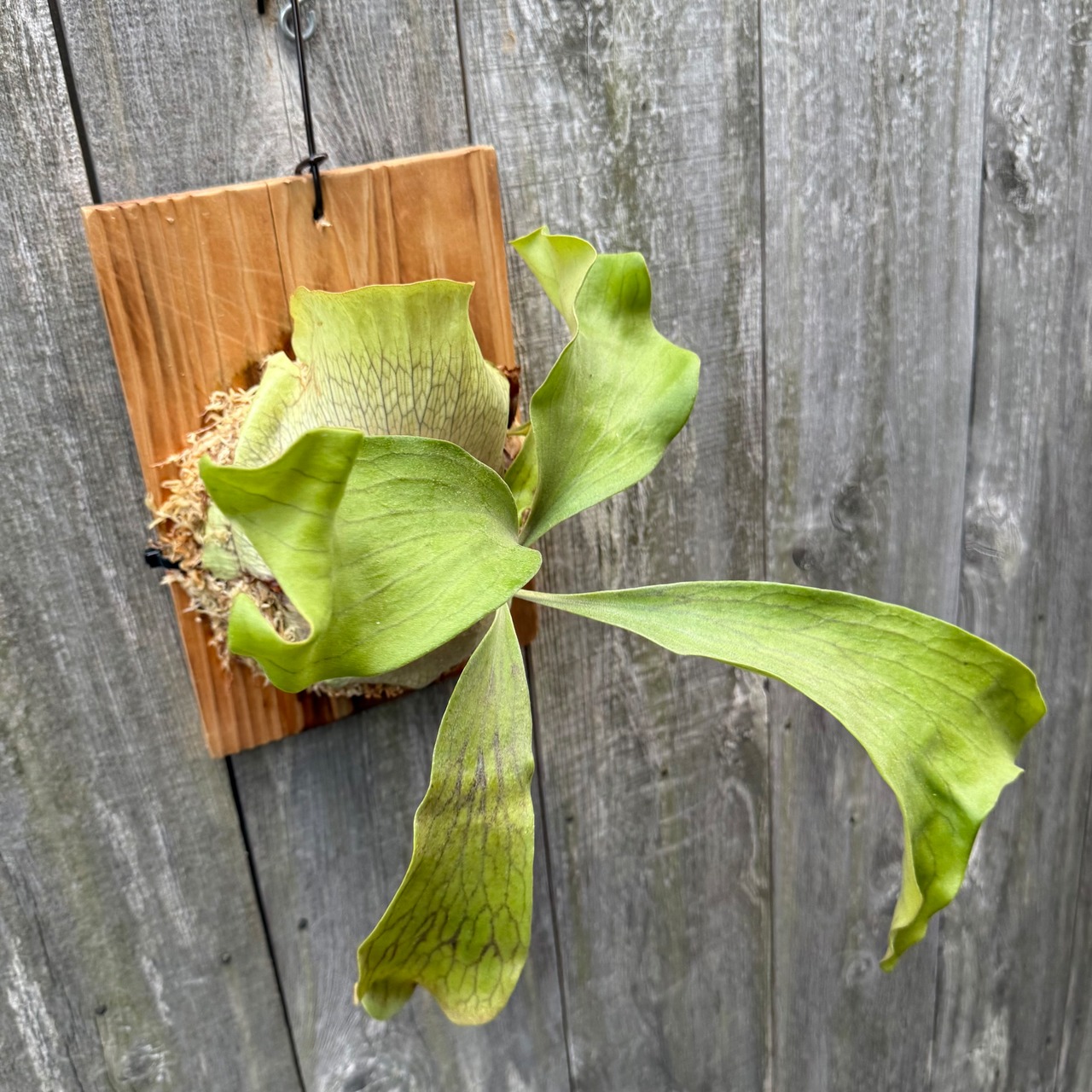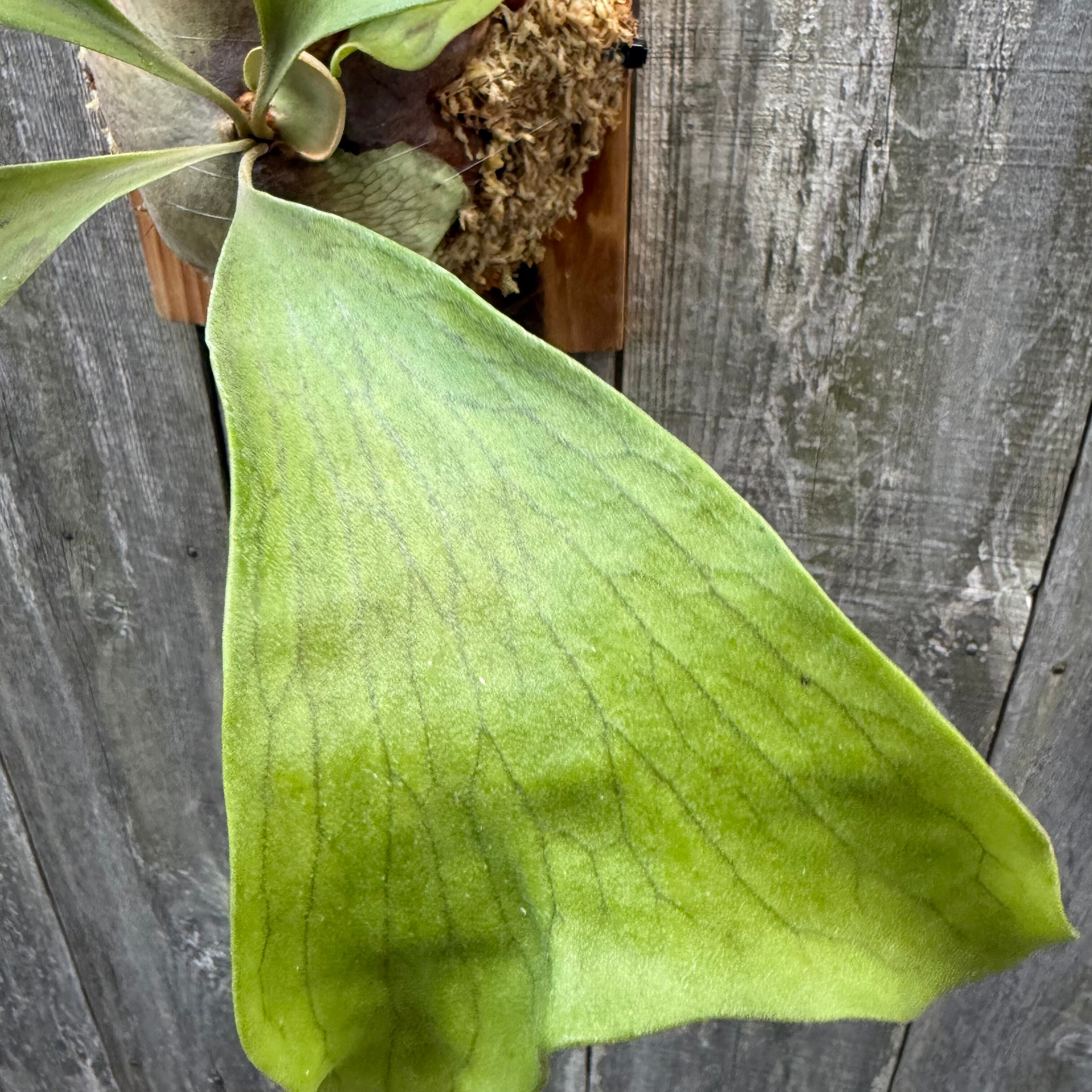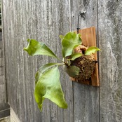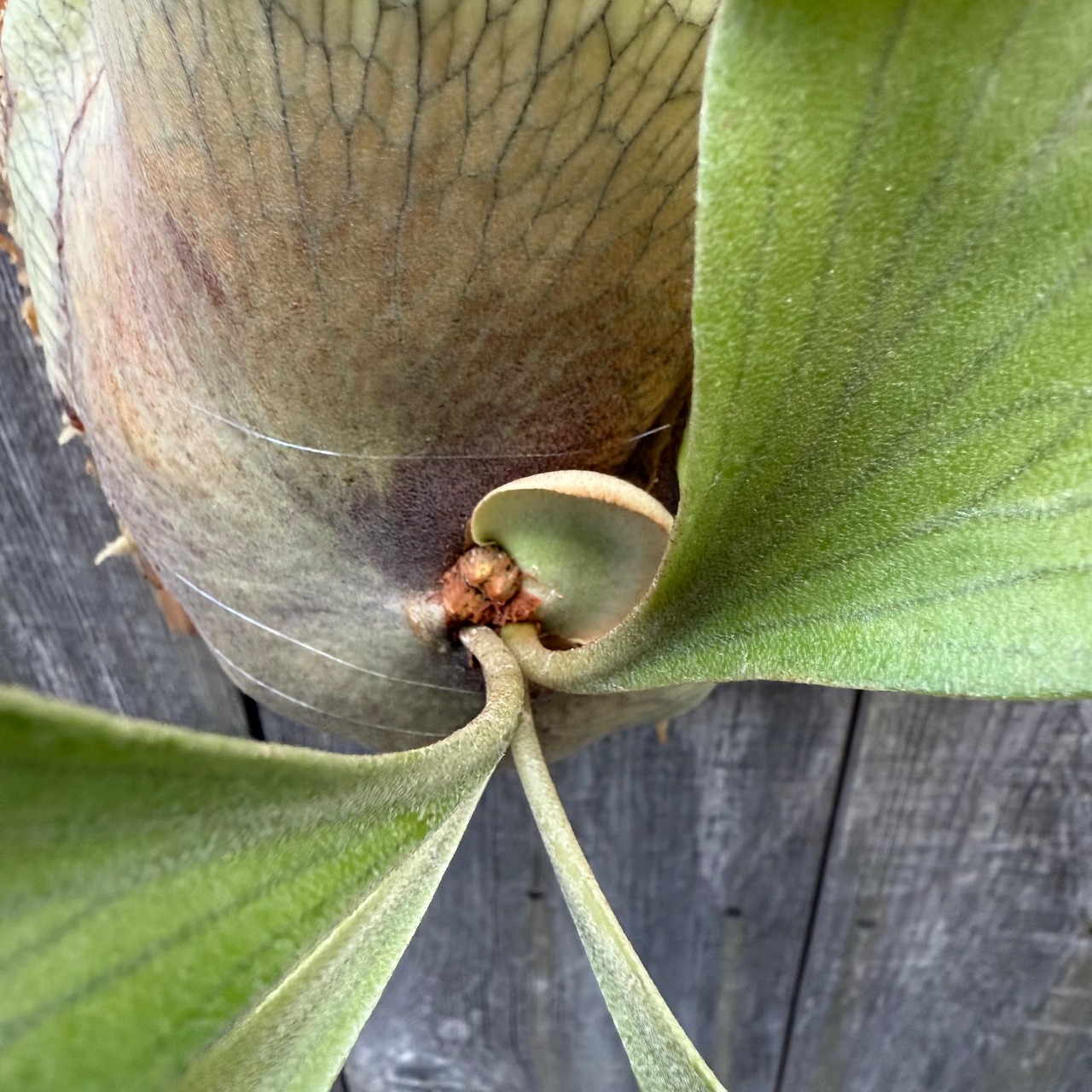 ヒリーの交配種になり、葉脈が美しく、勢いよく展開する胞子葉は見事です。また、成熟すると子株をつけます。