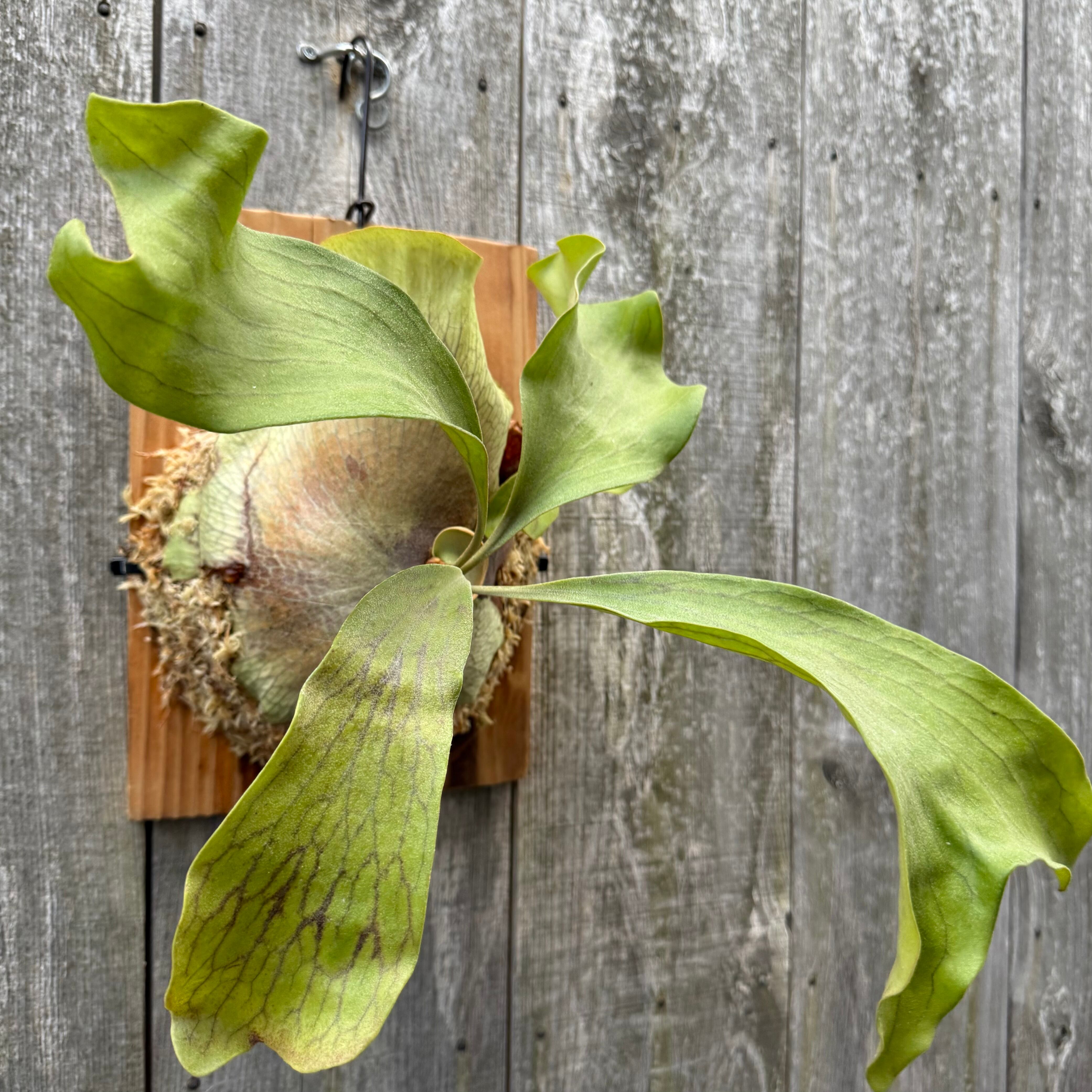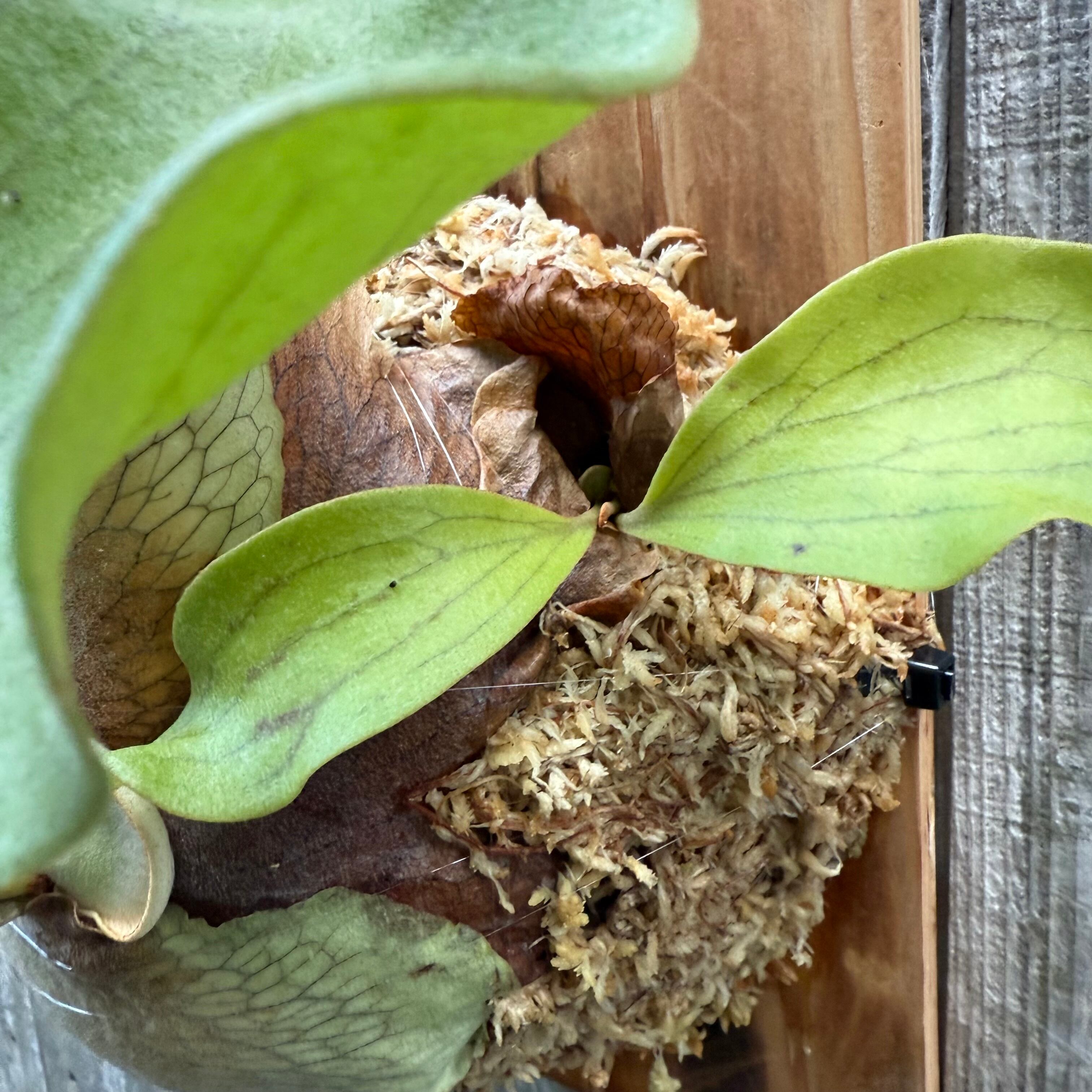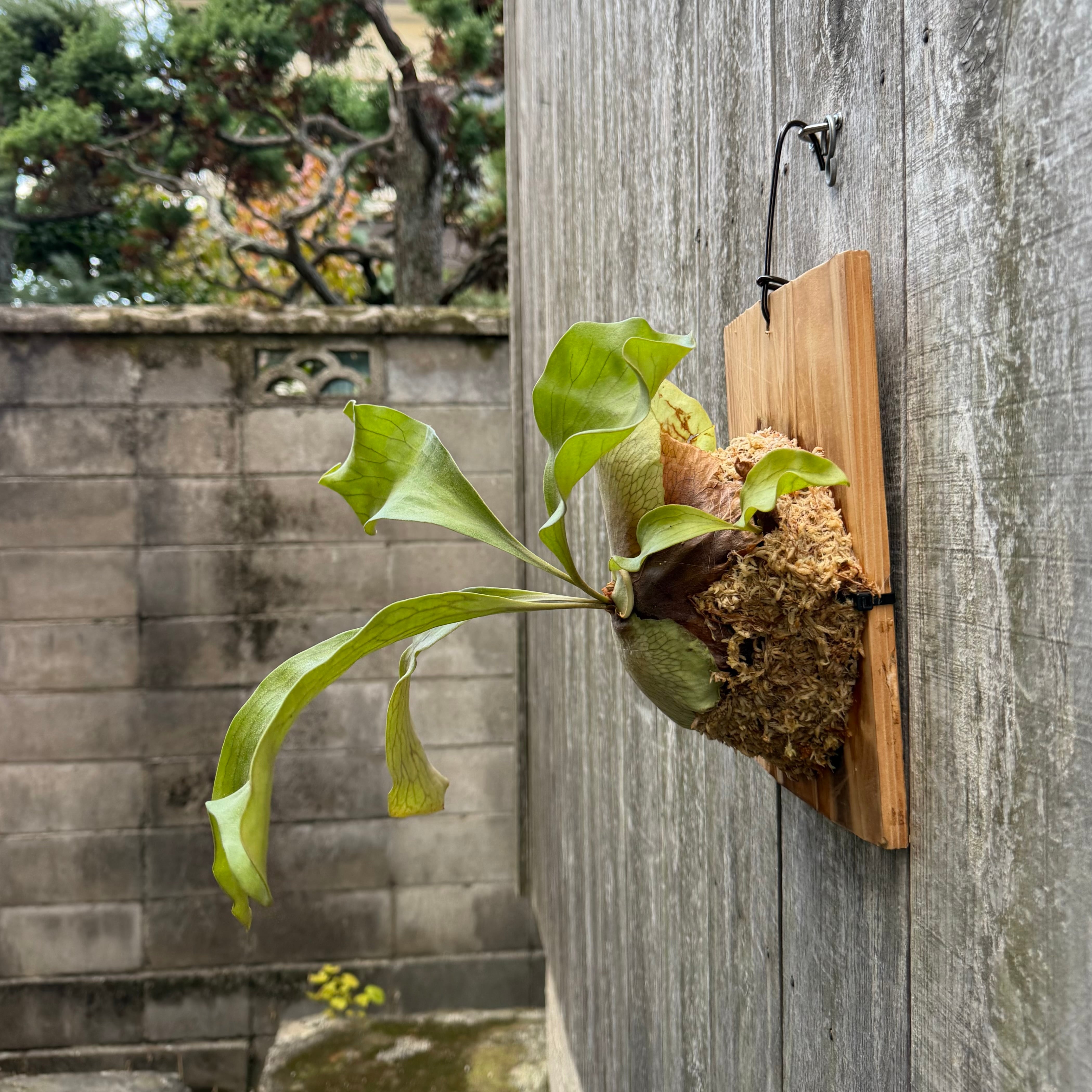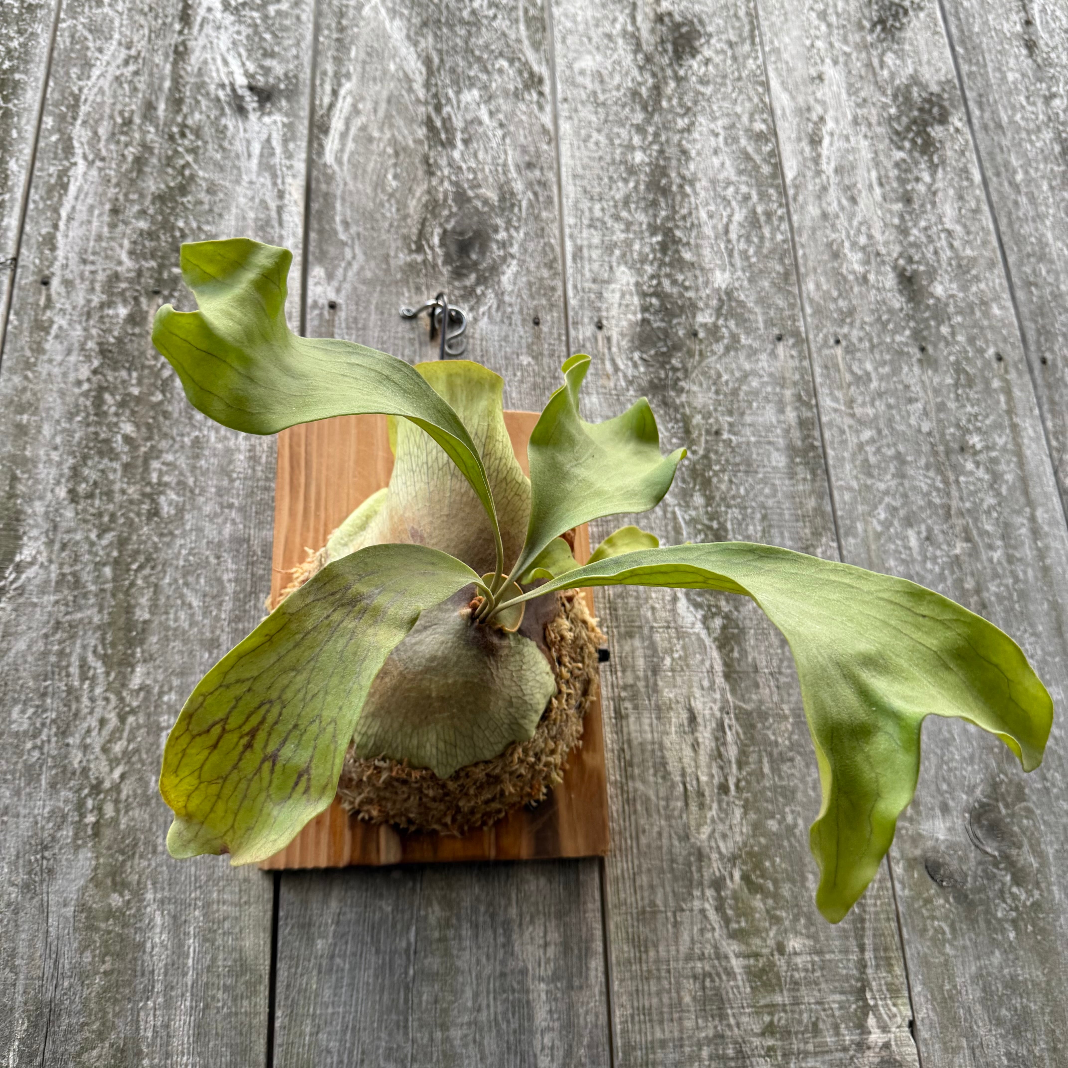 ヒリーの交配種になり、葉脈が美しく、勢いよく展開する胞子葉は見事です。また、成熟すると子株をつけます。