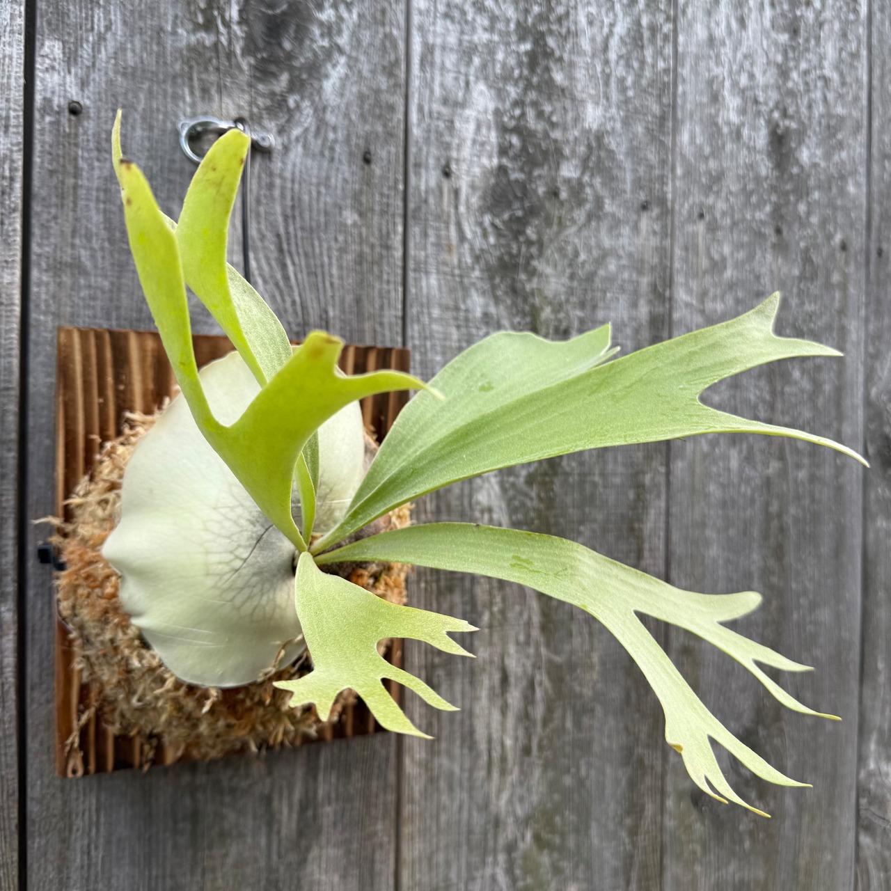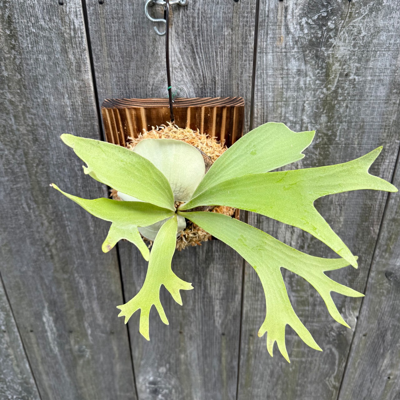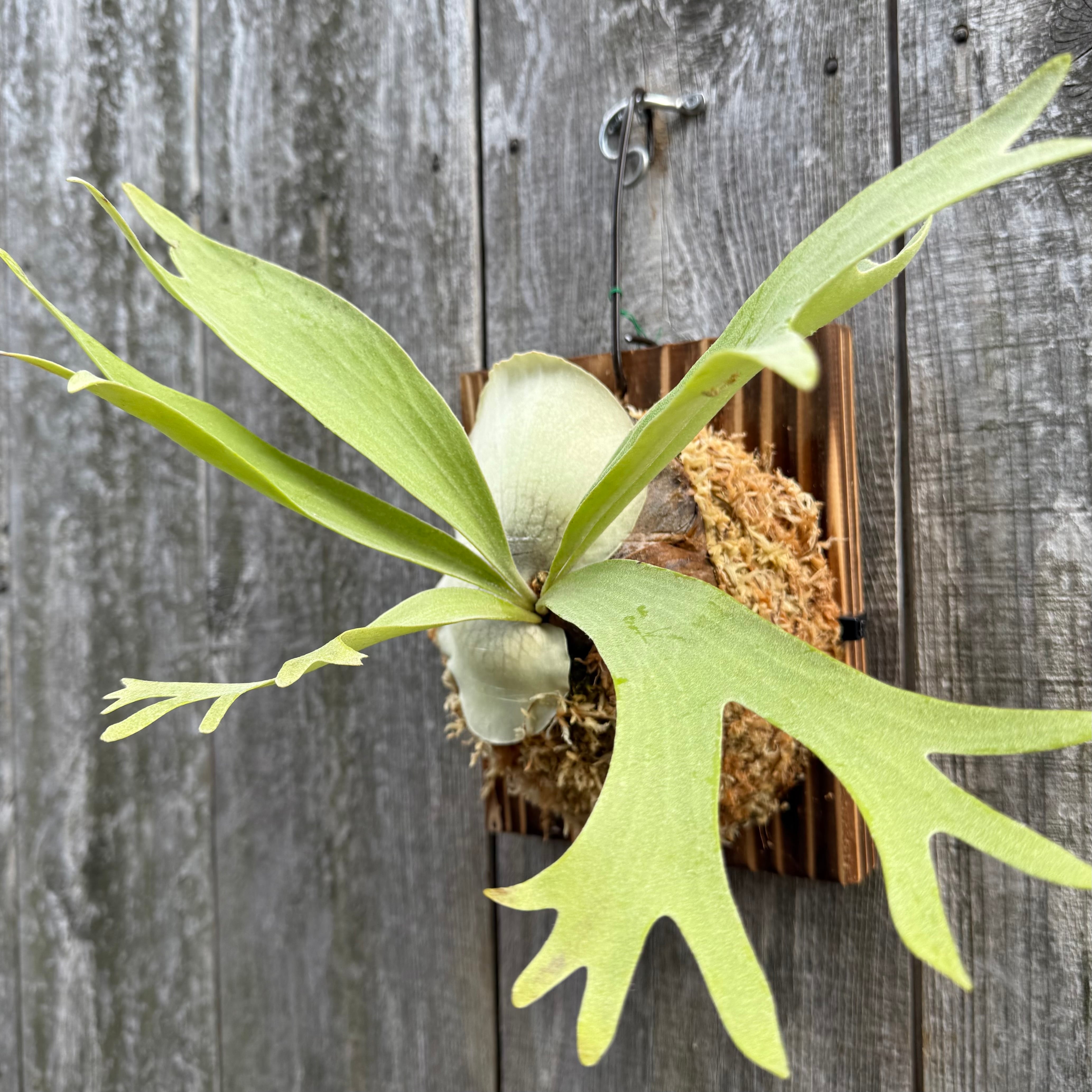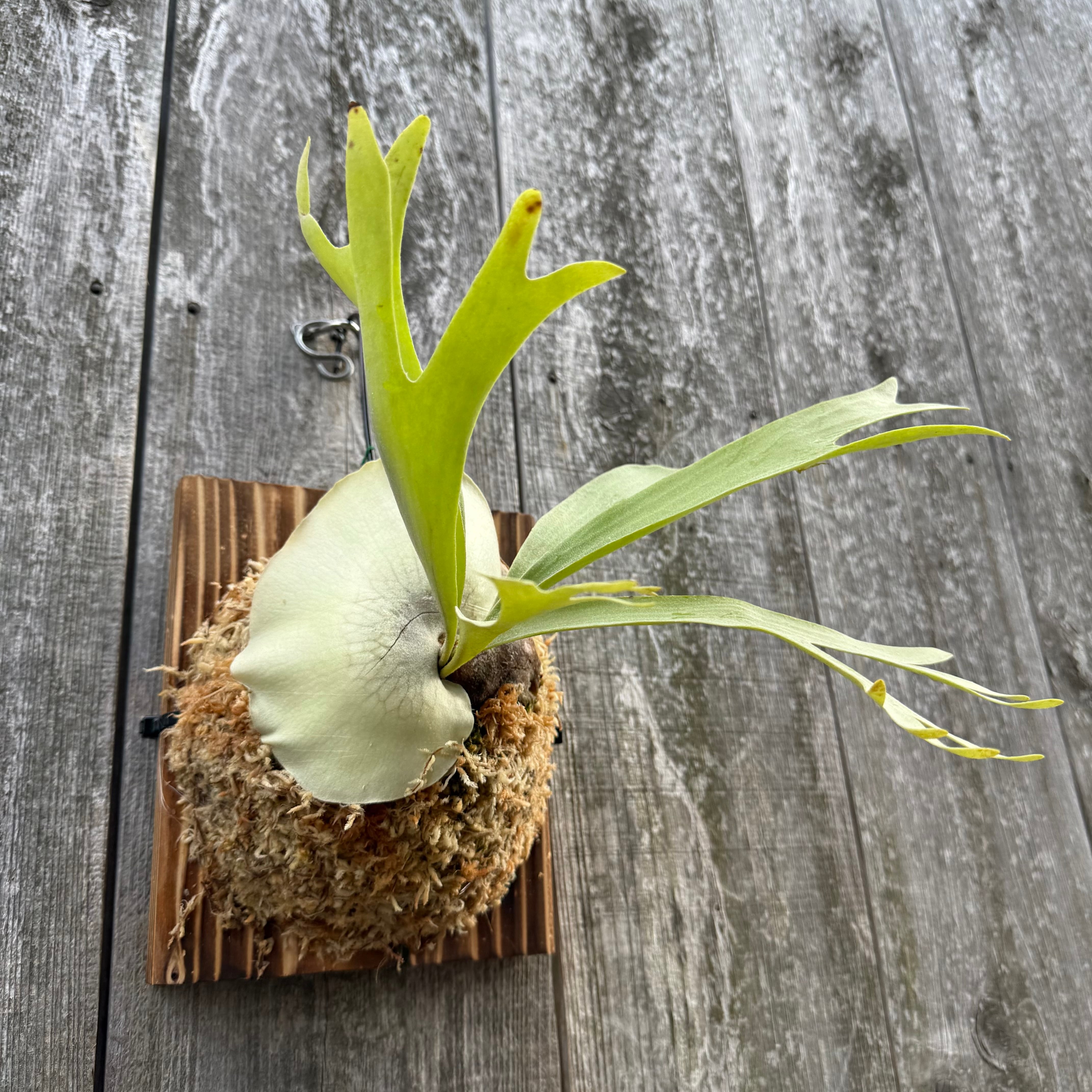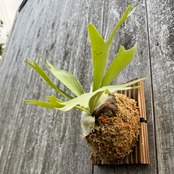 Bannaさんから譲っていただいた株からの子株となります。胞子葉は上向に伸び、葉先で分岐する草姿が特徴的で、非常に力強く美しい株に育ちます。