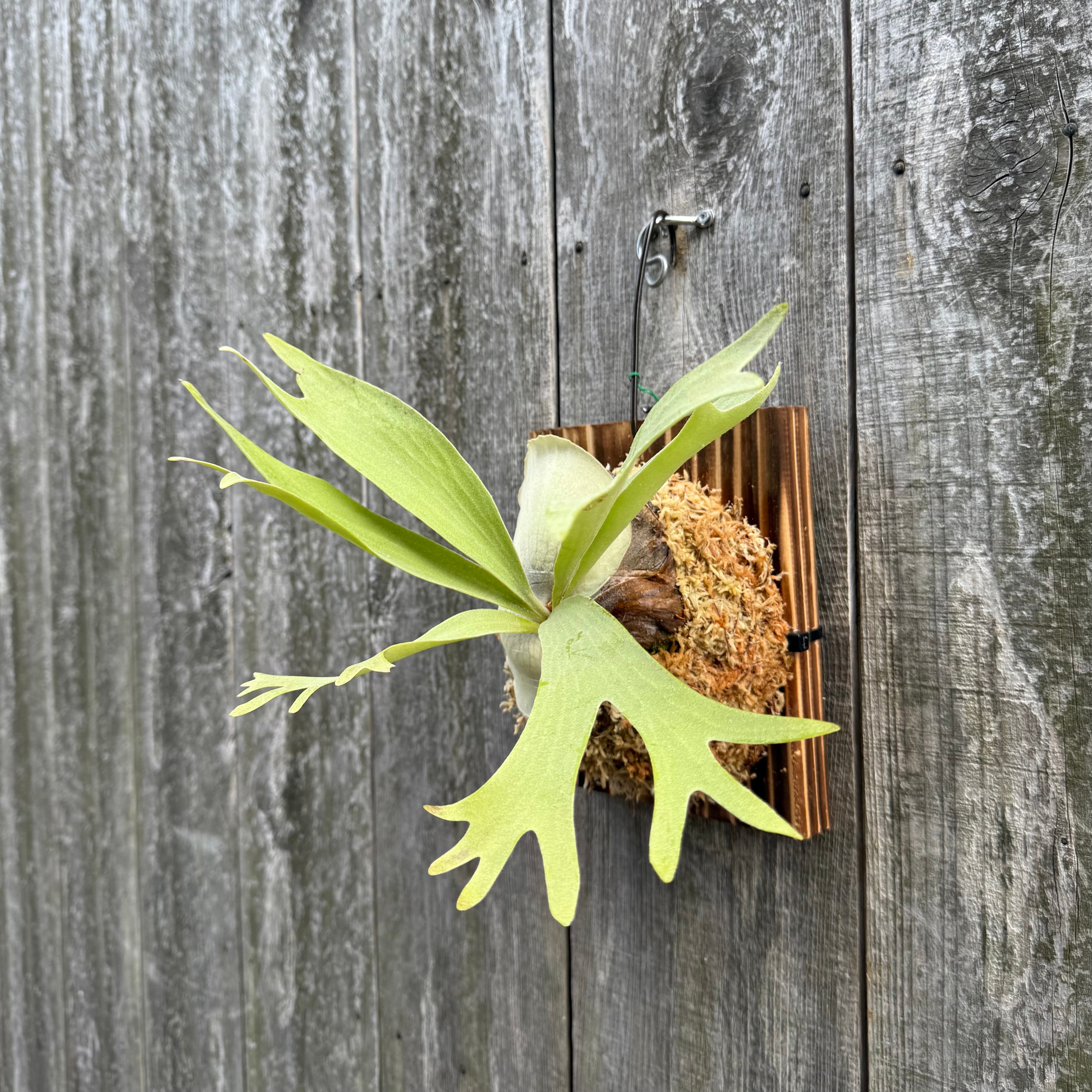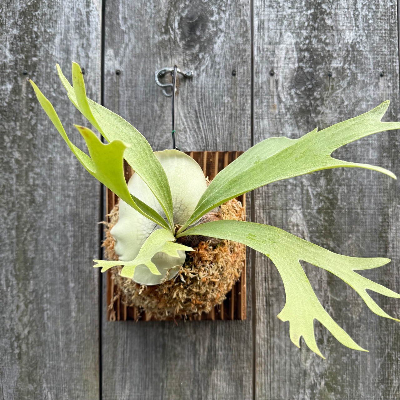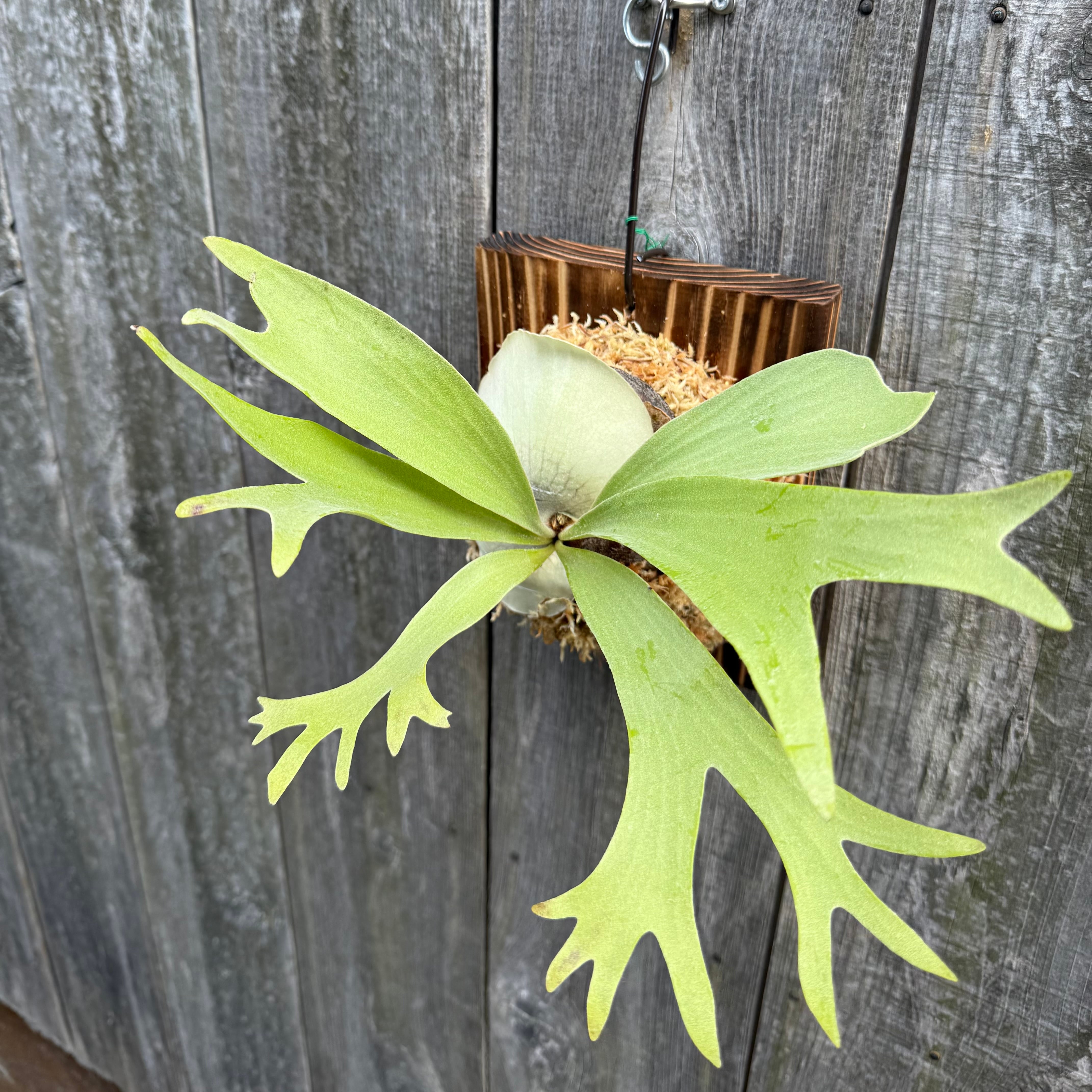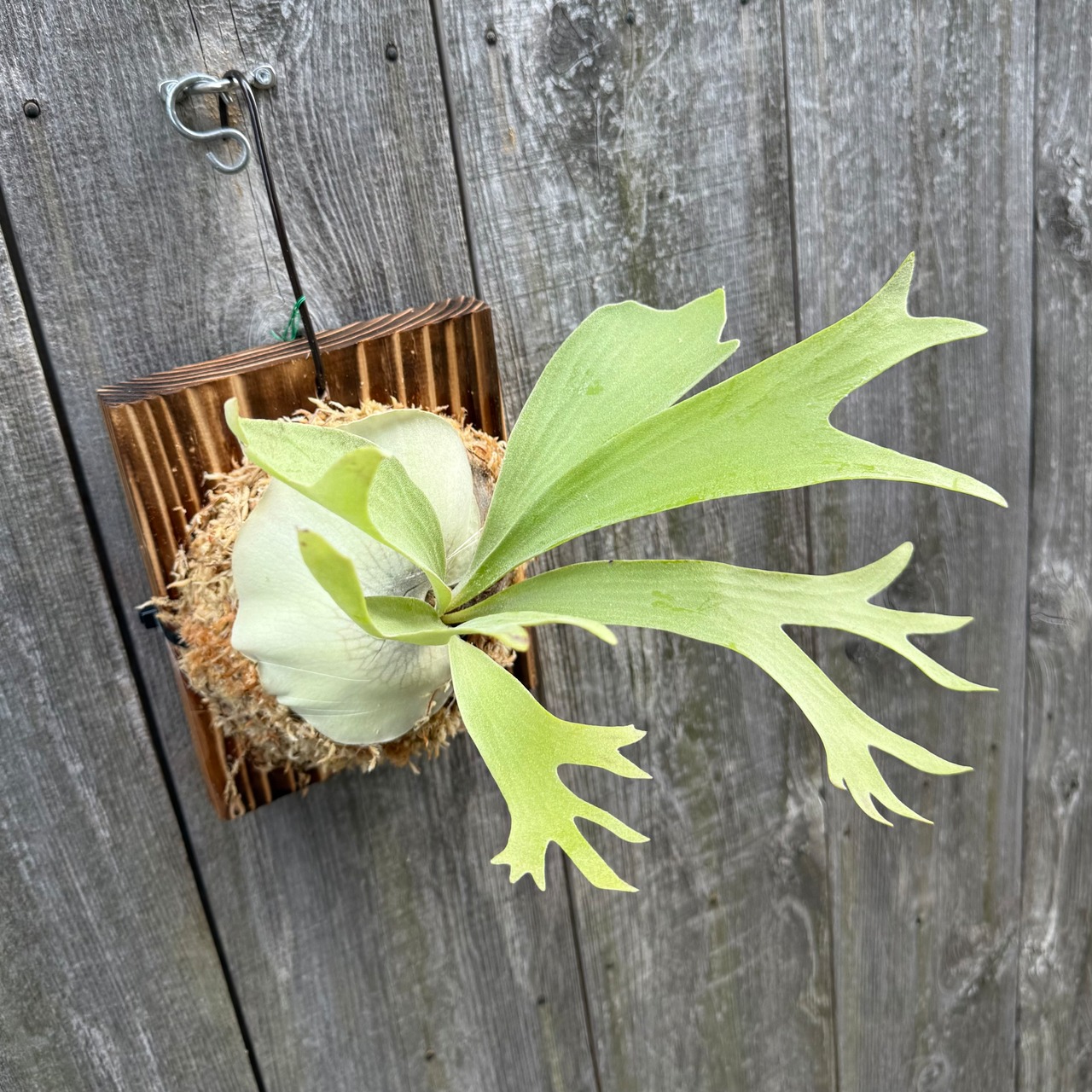 Bannaさんから譲っていただいた株からの子株となります。胞子葉は上向に伸び、葉先で分岐する草姿が特徴的で、非常に力強く美しい株に育ちます。