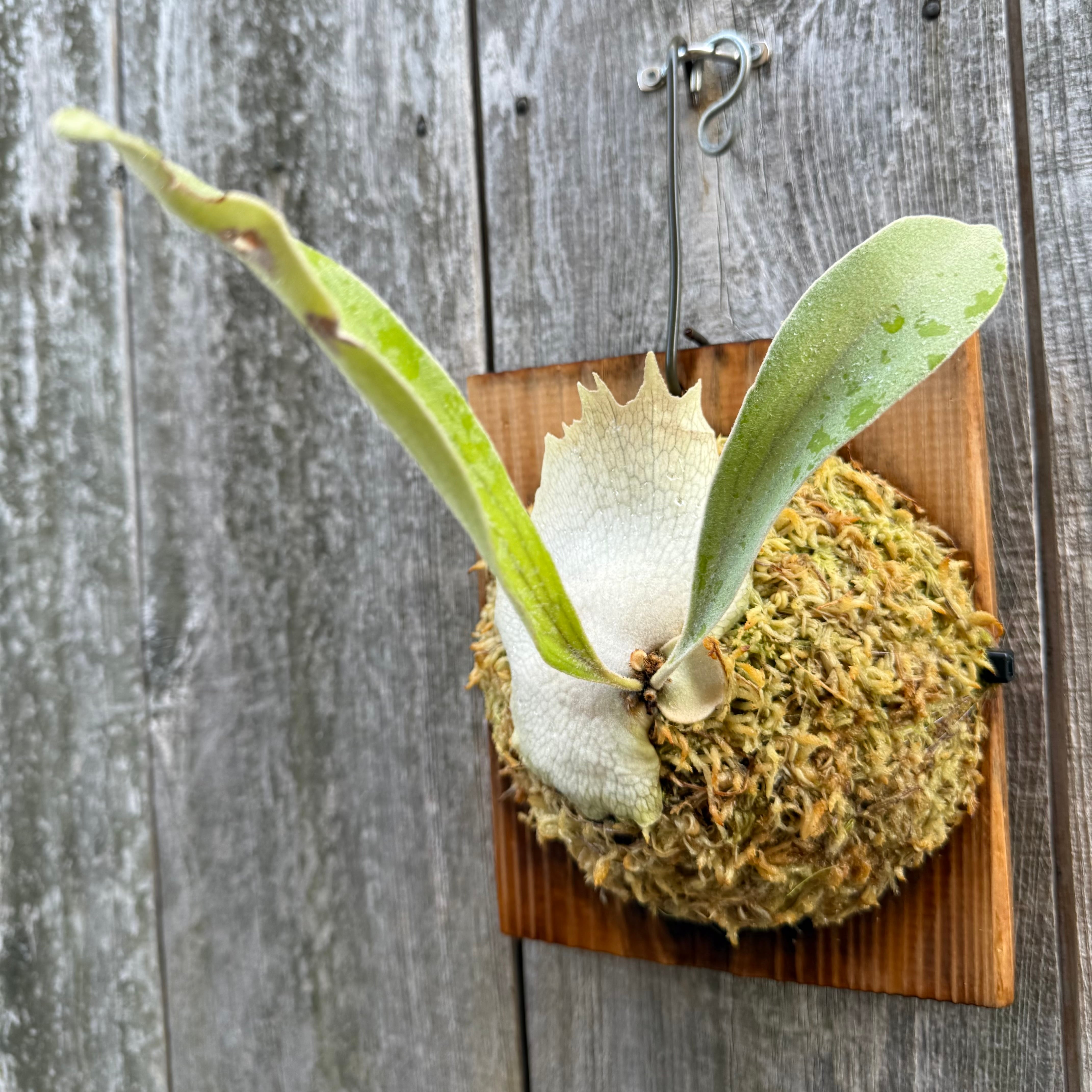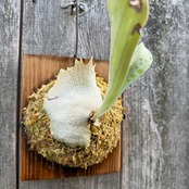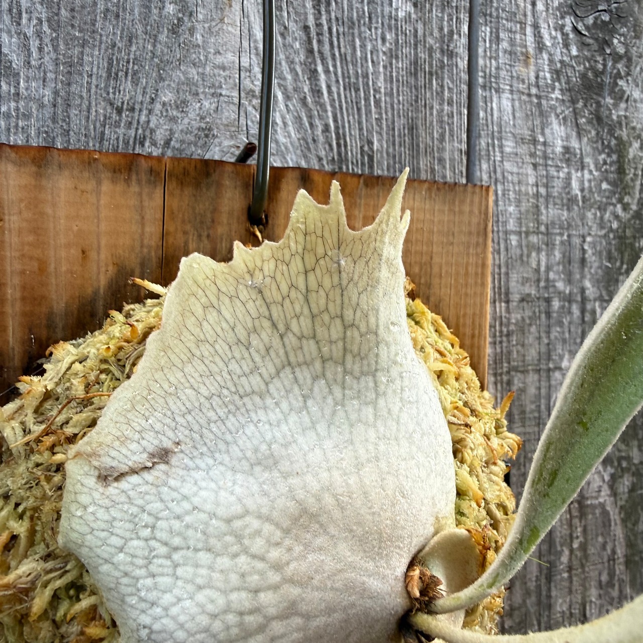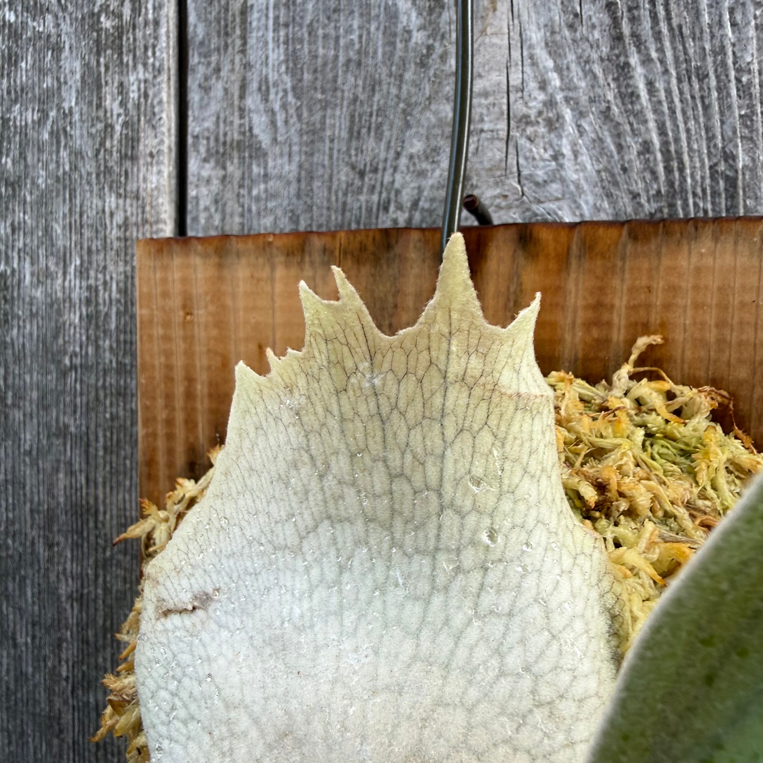 ベイチーワイルドのスポア株になります。特徴的な貯水葉、星状毛の濃い胞子葉がでてきており、今後どのような姿になるか楽しみな一株です。