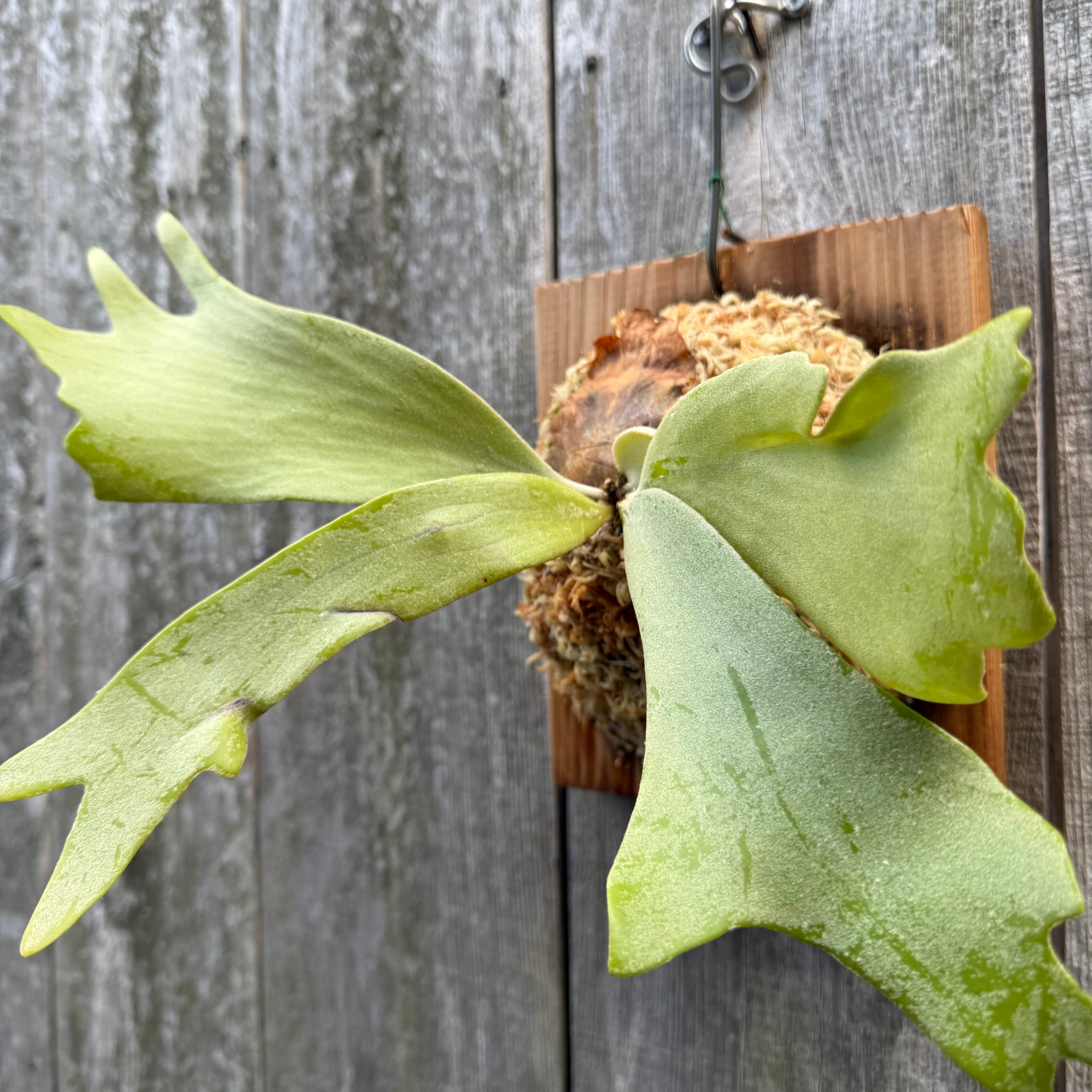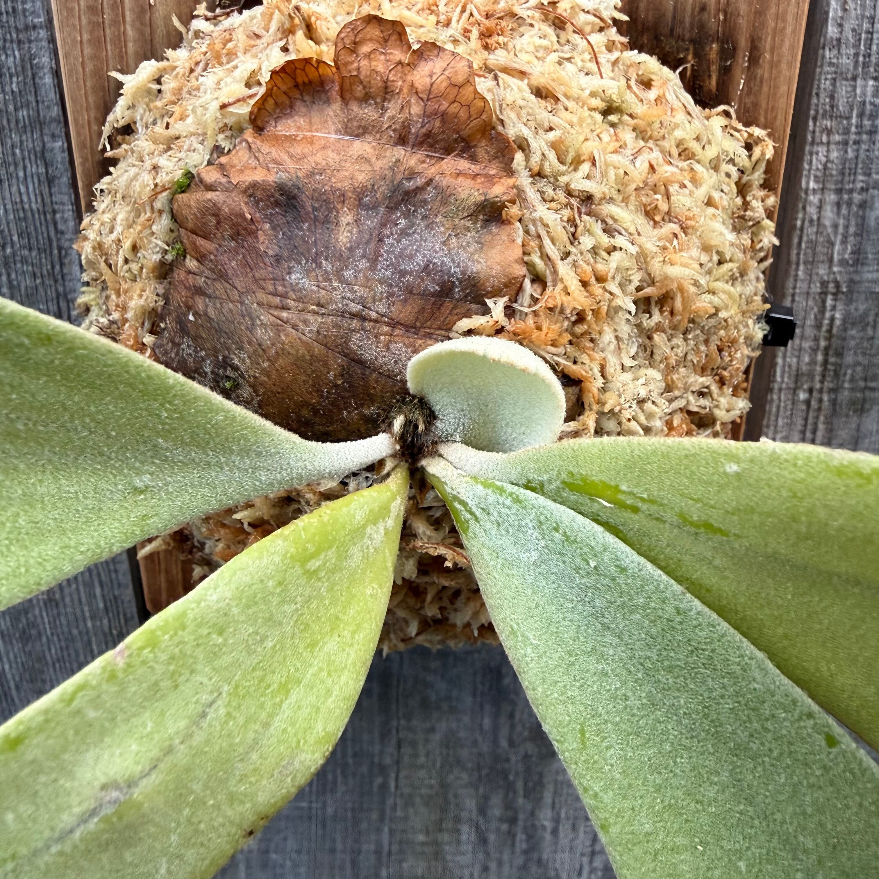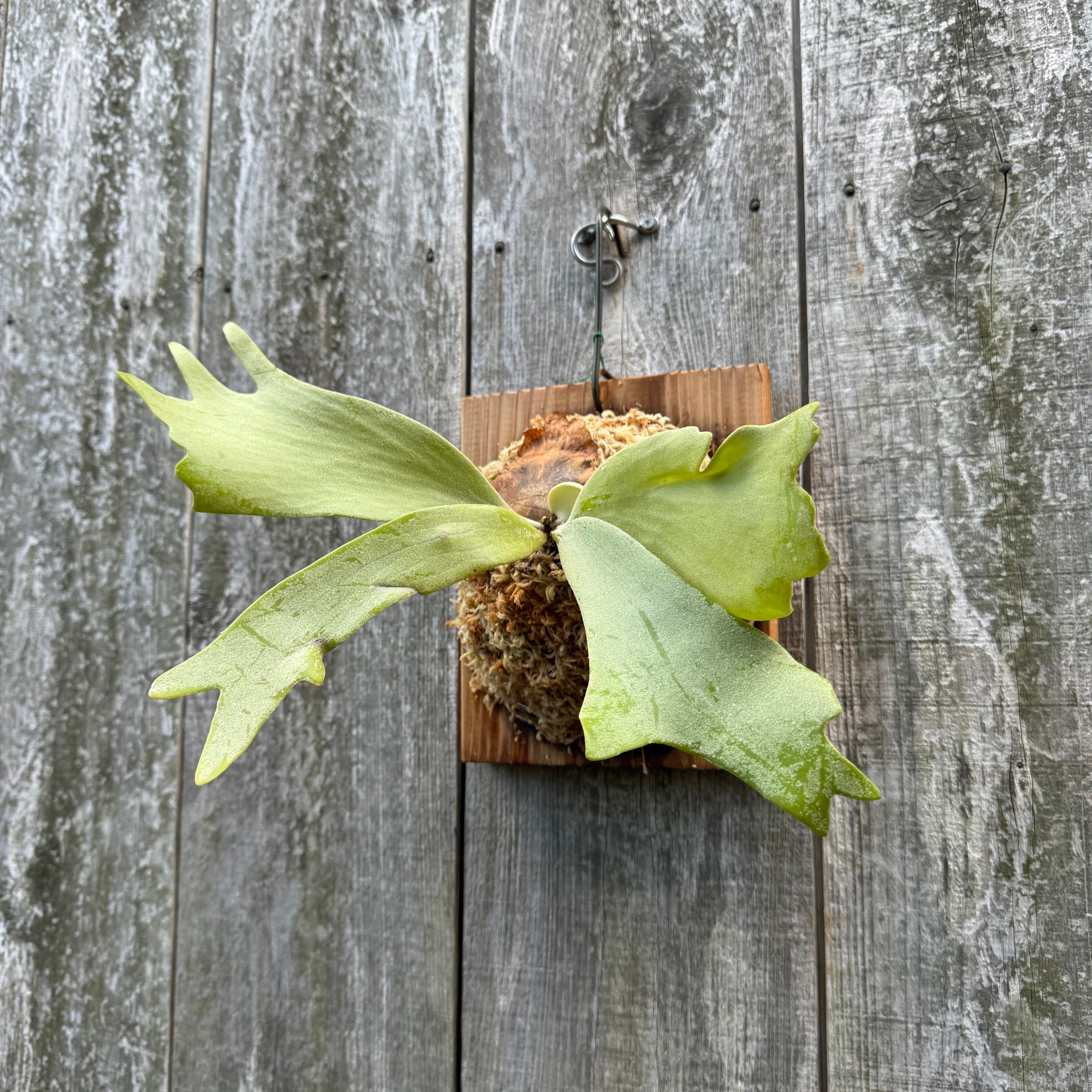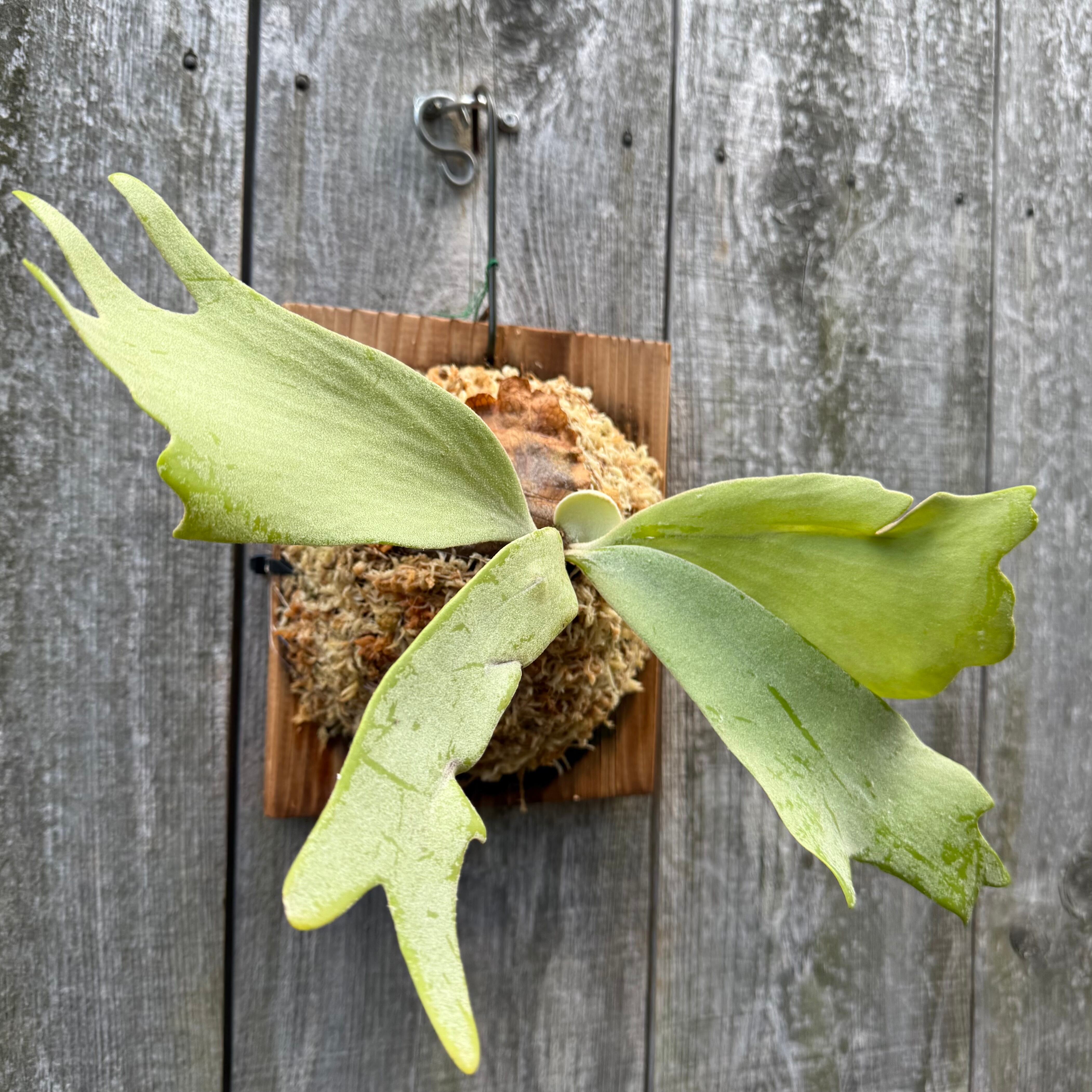 葉先が綺麗に分岐するウィリンキーで、胞子嚢を付けるとさらにカールし、ウィリンキーらしい長く垂れる草姿は見事です。日本では流通量の少ない品種となっており、今後の成長が楽しみな一株です。CKパビリオンさんから仕入れた株の子株となります。