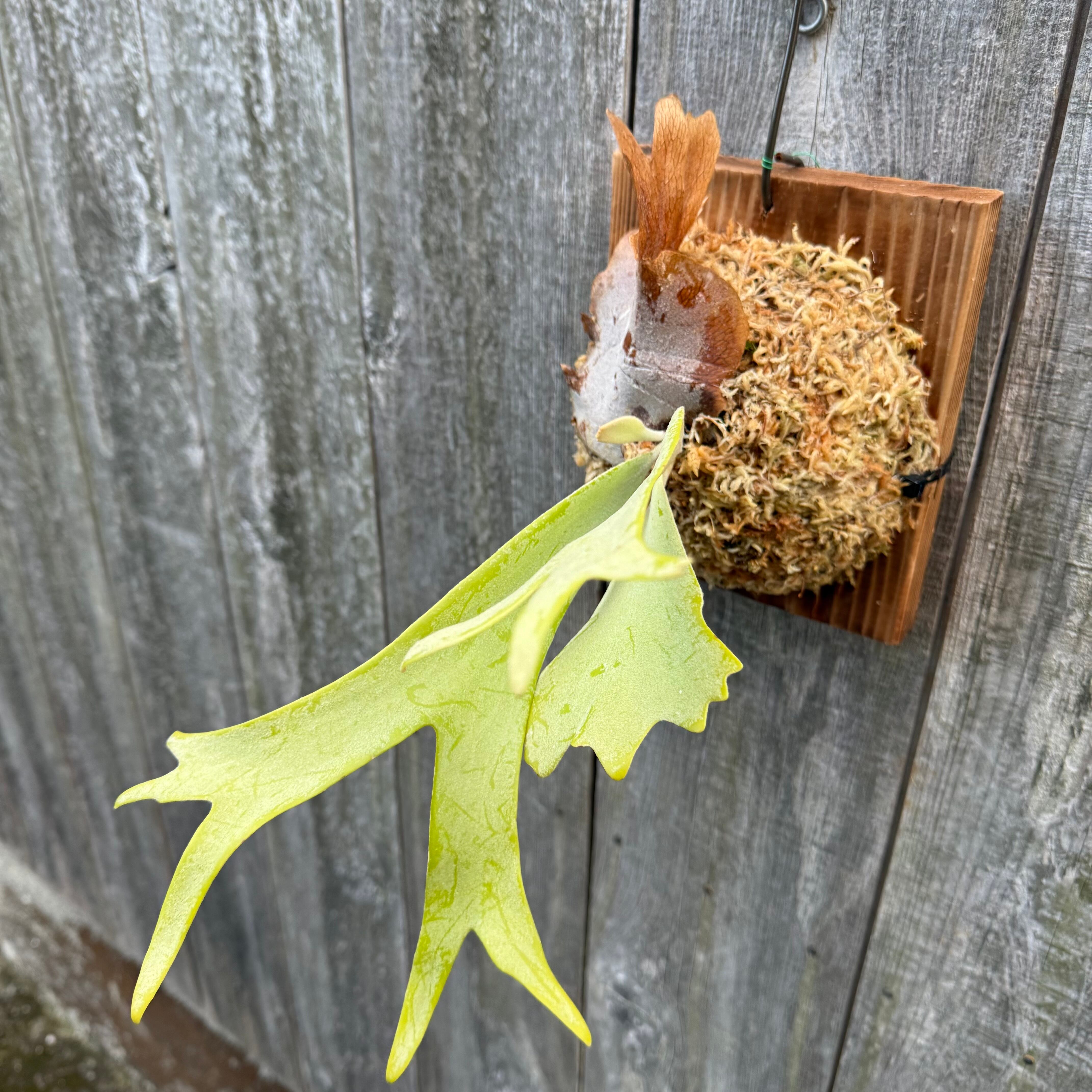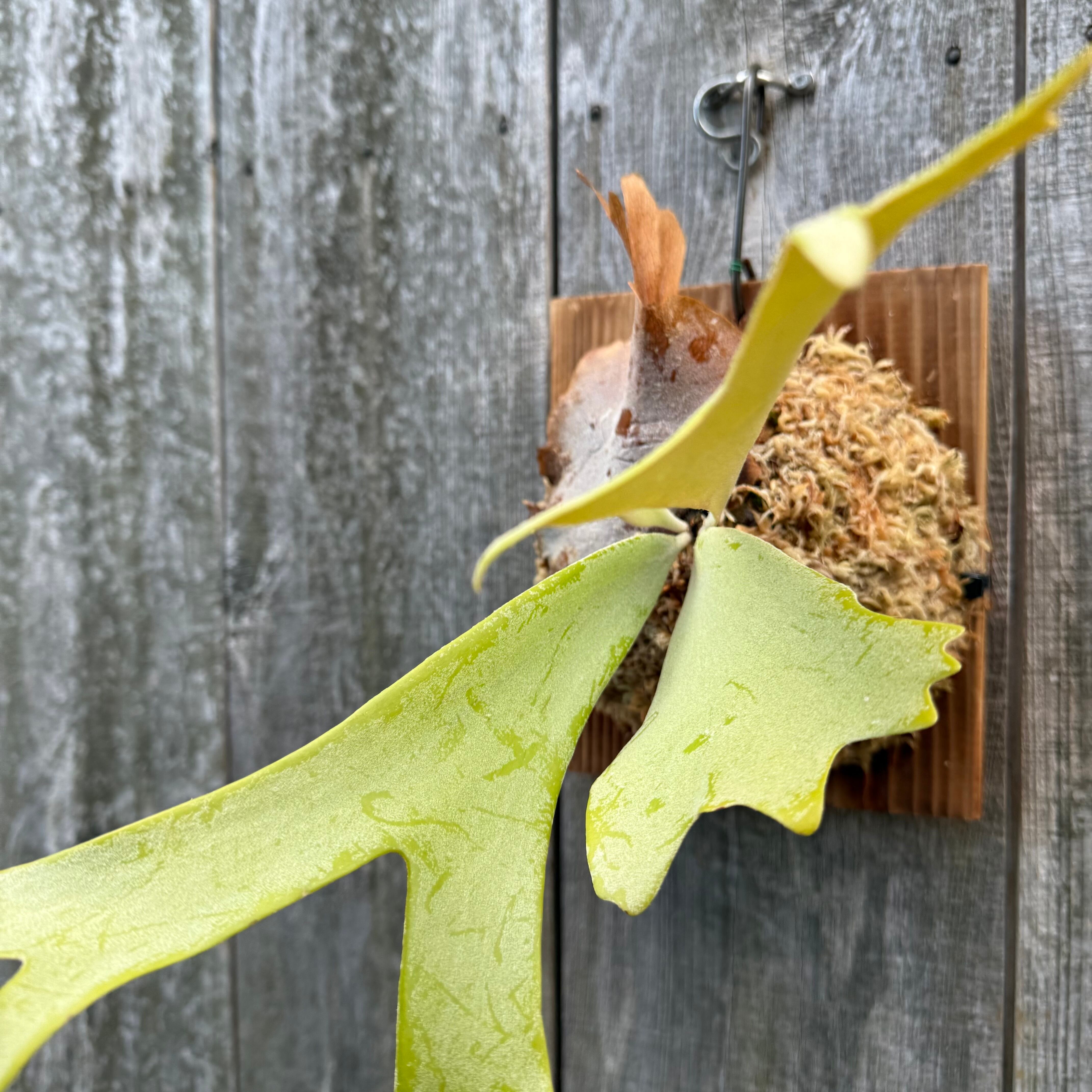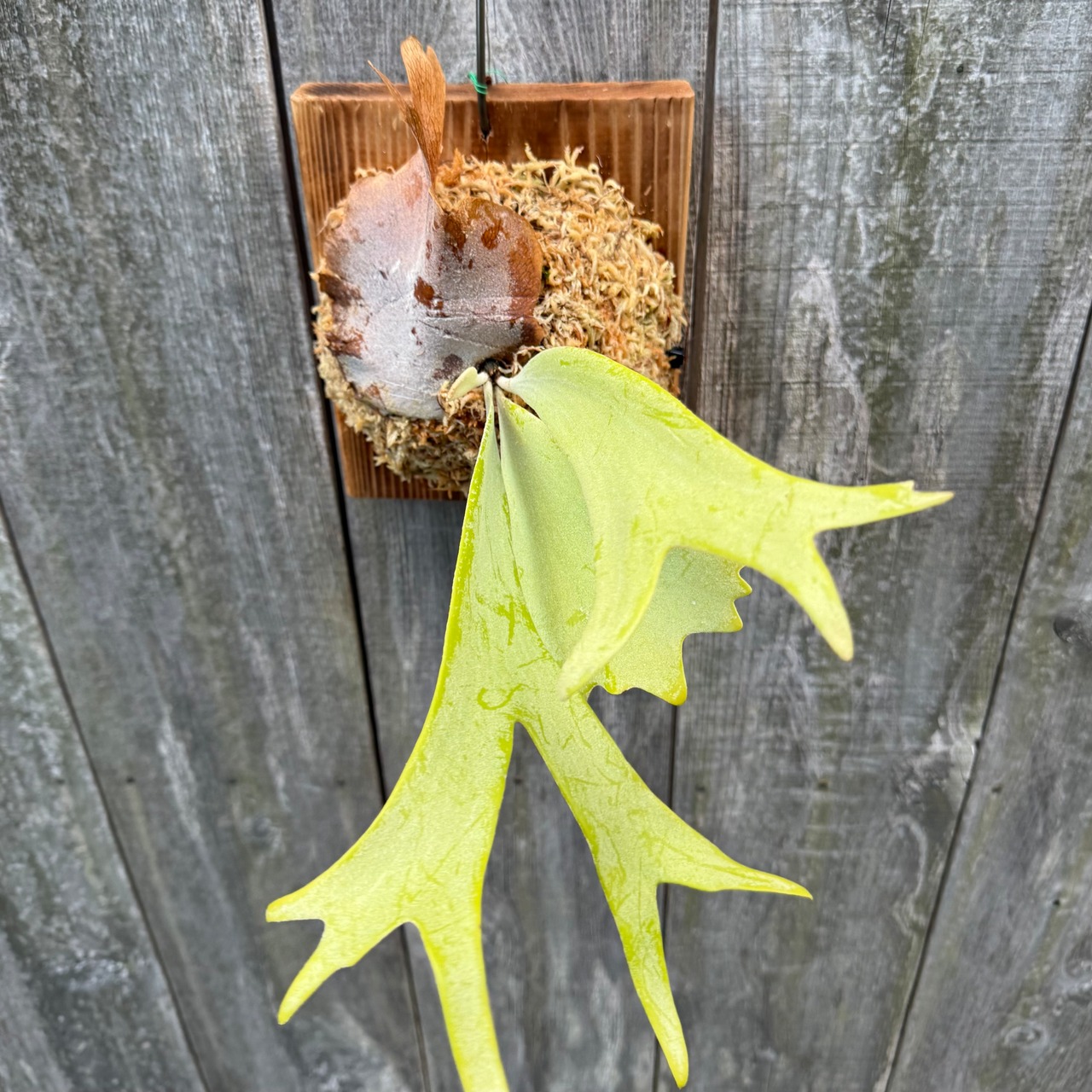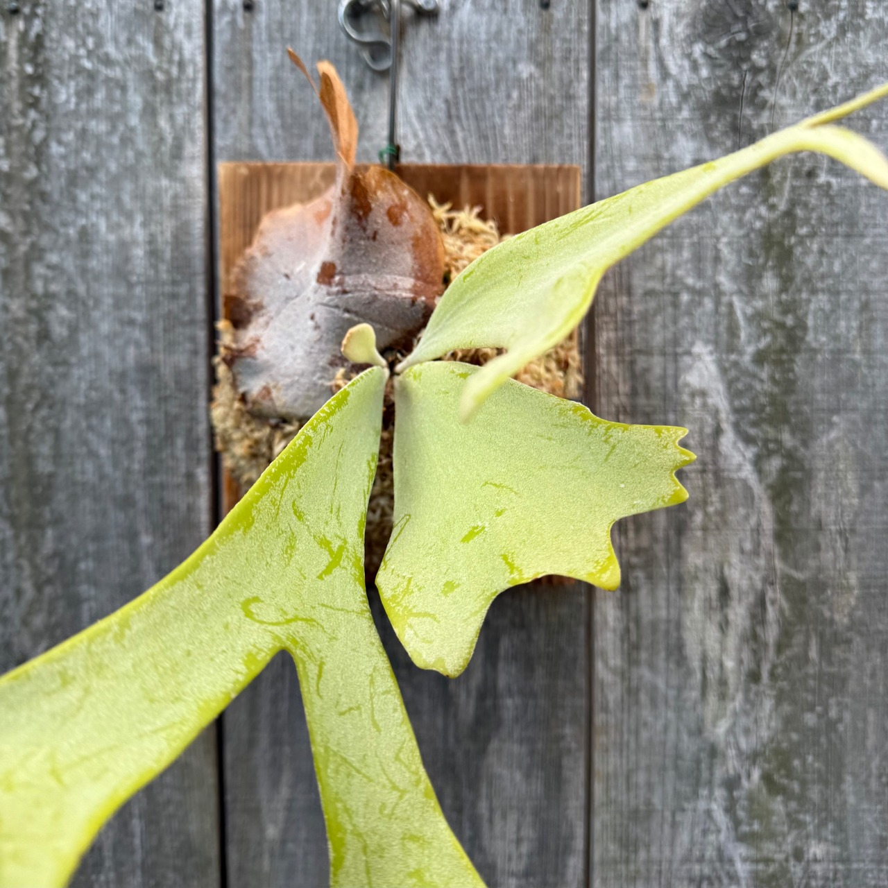 葉先が綺麗に分岐するウィリンキーで、胞子嚢を付けるとさらにカールし、ウィリンキーらしい長く垂れる草姿は見事です。日本では流通量の少ない品種となっており、今後の成長が楽しみな一株です。CKパビリオンさんから仕入れた株の子株となります。