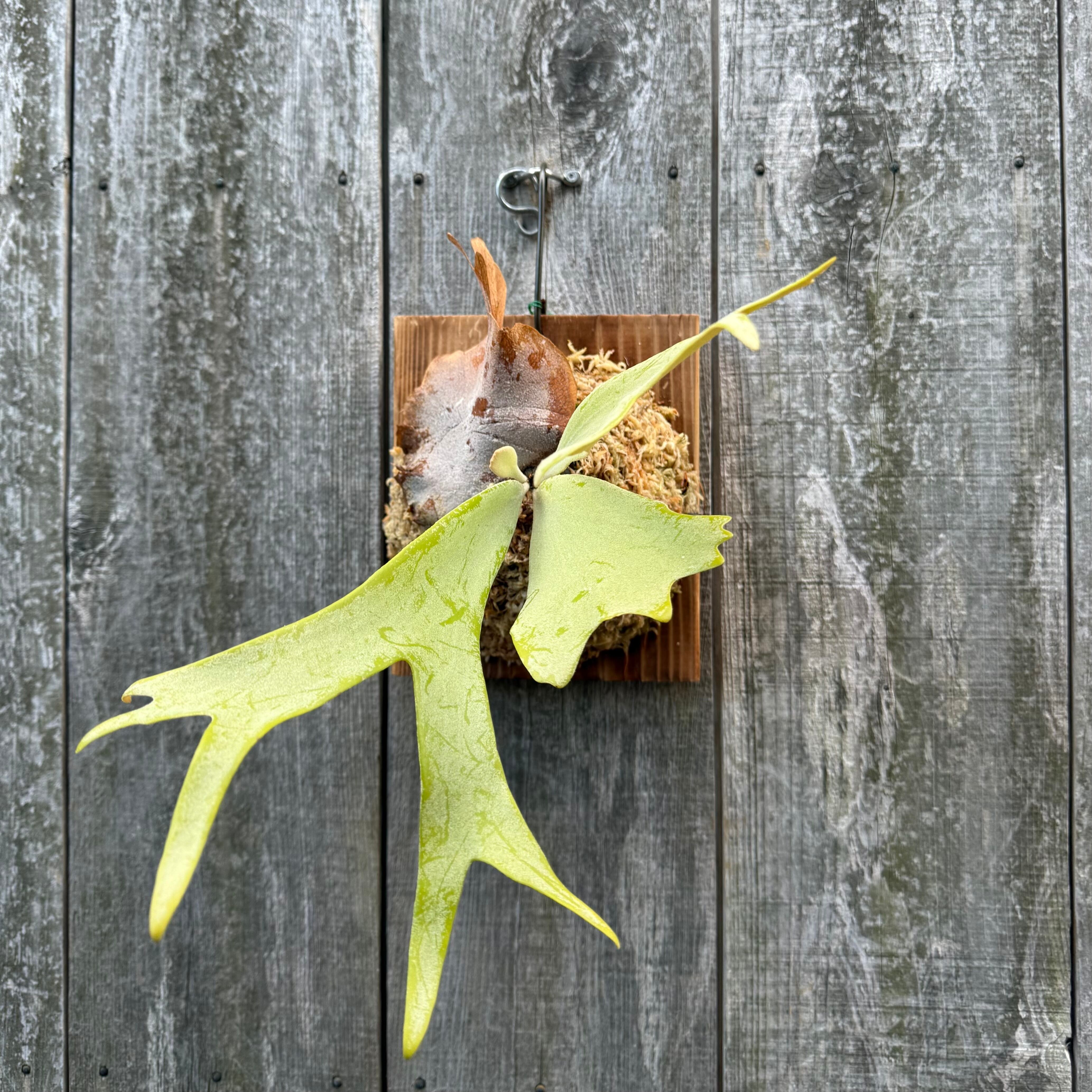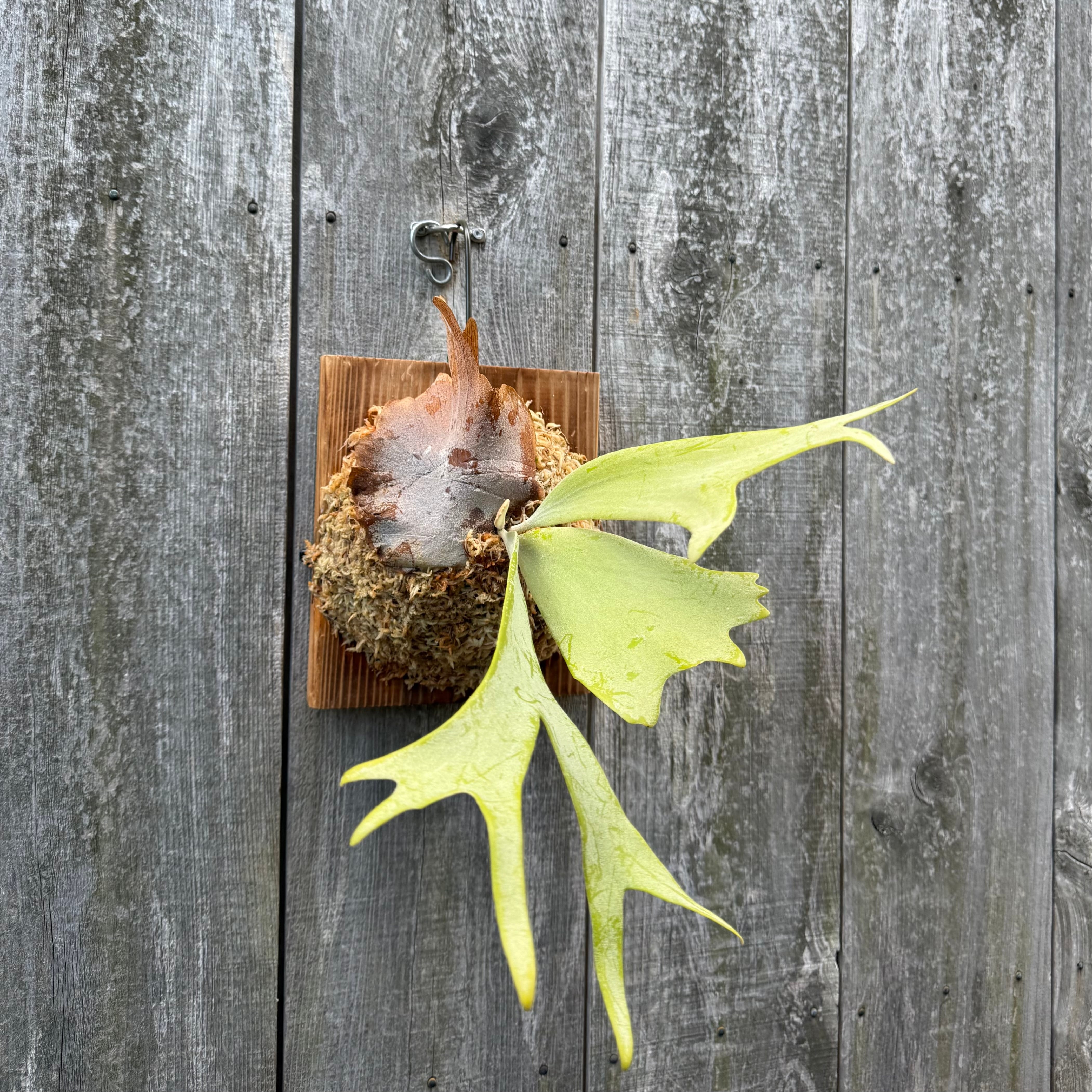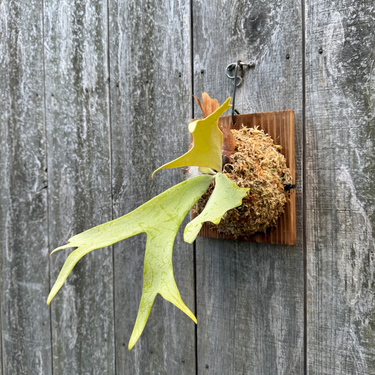 葉先が綺麗に分岐するウィリンキーで、胞子嚢を付けるとさらにカールし、ウィリンキーらしい長く垂れる草姿は見事です。日本では流通量の少ない品種となっており、今後の成長が楽しみな一株です。CKパビリオンさんから仕入れた株の子株となります。