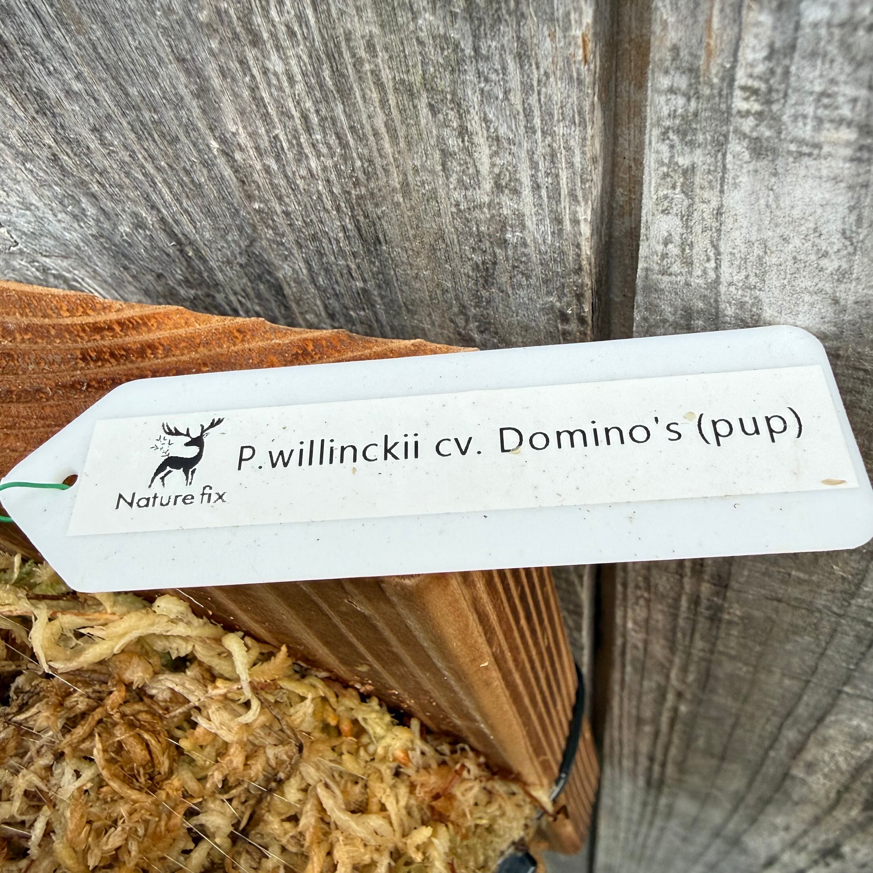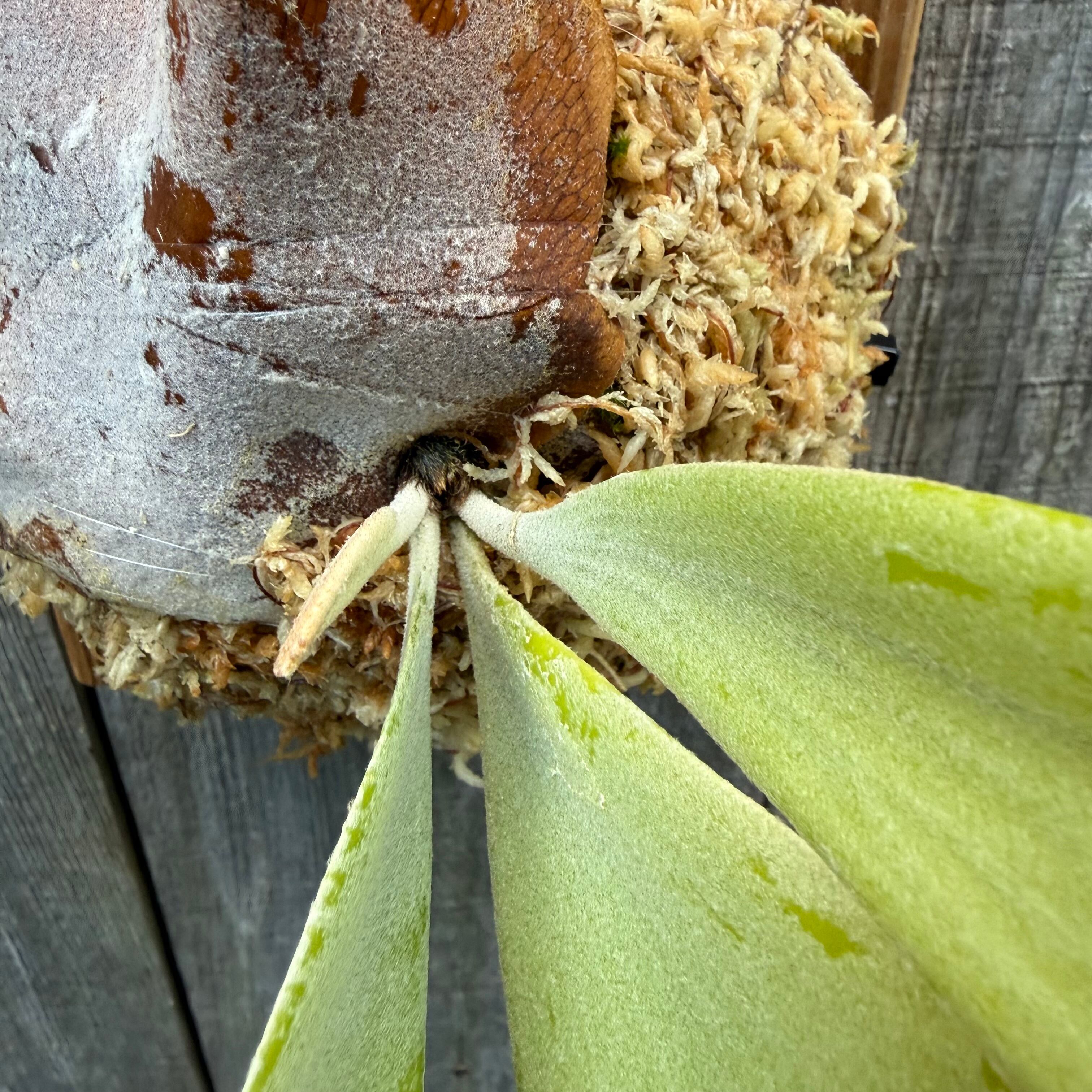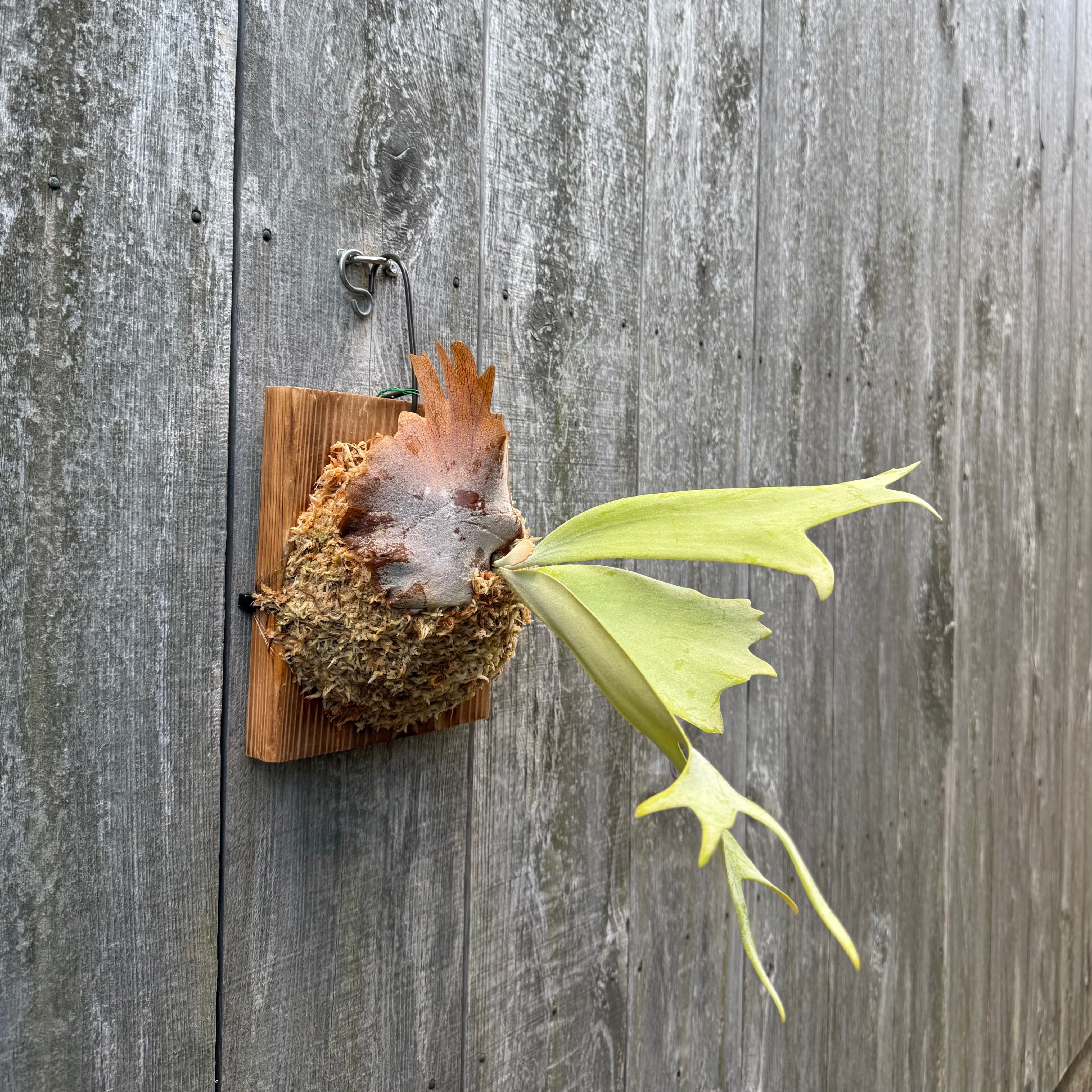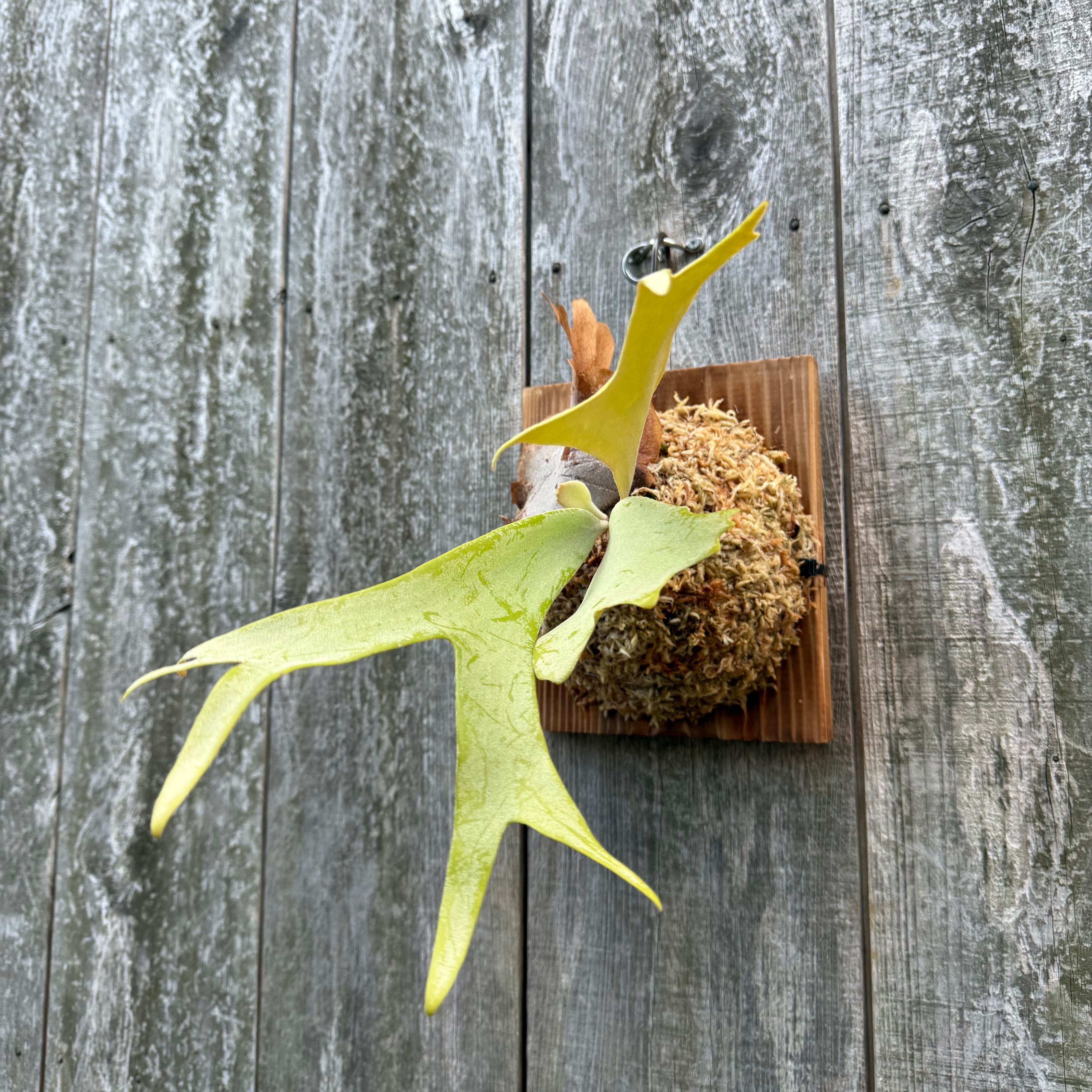 葉先が綺麗に分岐するウィリンキーで、胞子嚢を付けるとさらにカールし、ウィリンキーらしい長く垂れる草姿は見事です。日本では流通量の少ない品種となっており、今後の成長が楽しみな一株です。CKパビリオンさんから仕入れた株の子株となります。