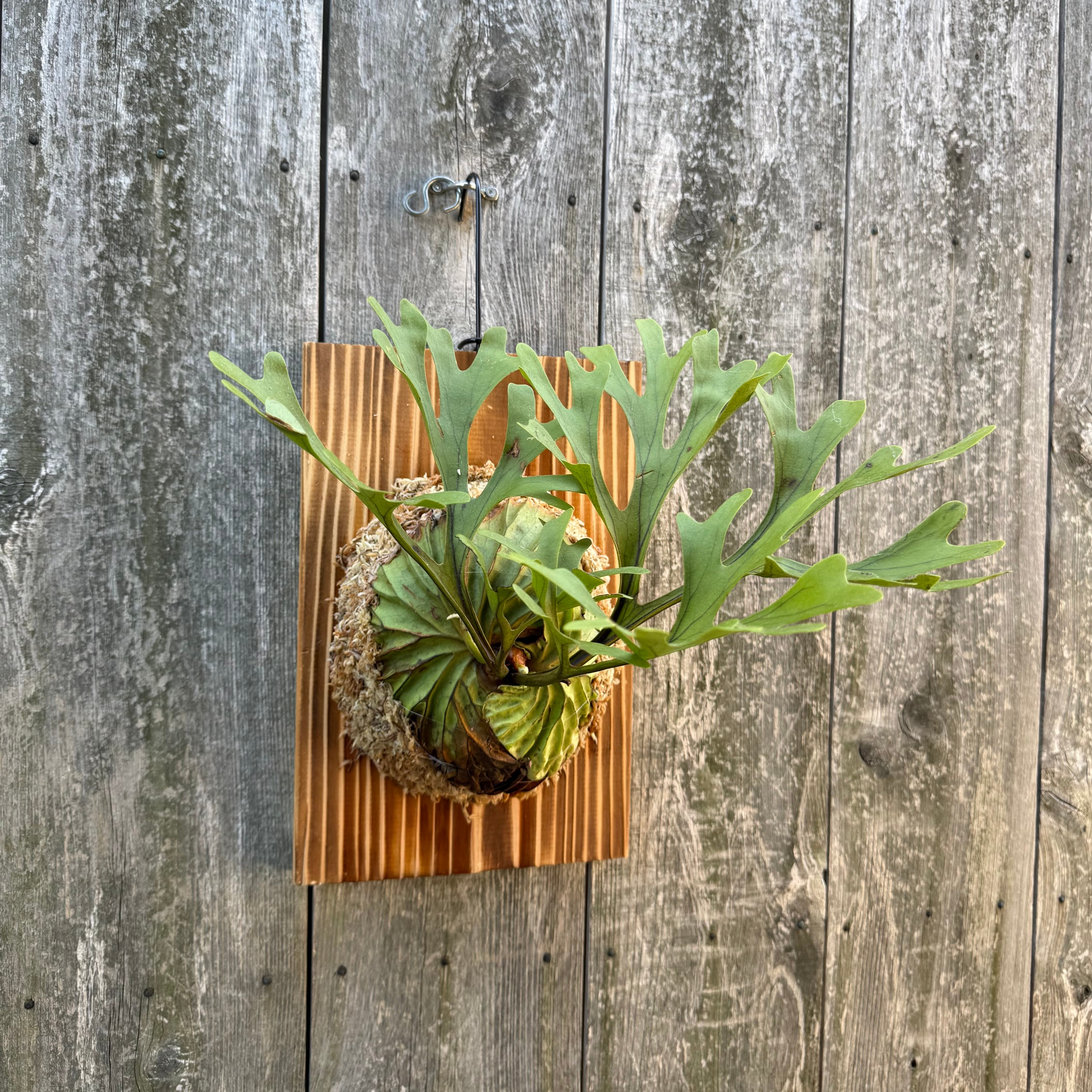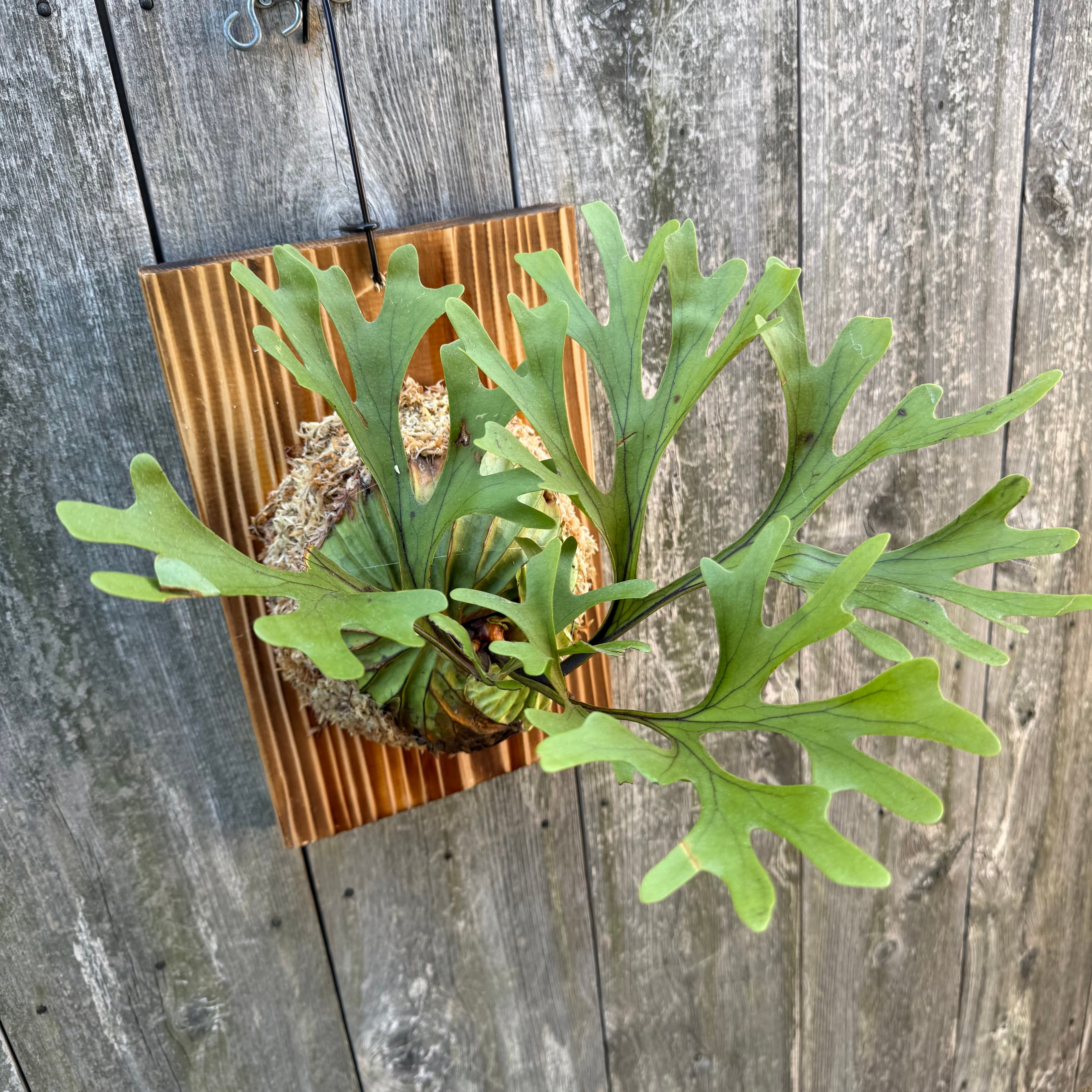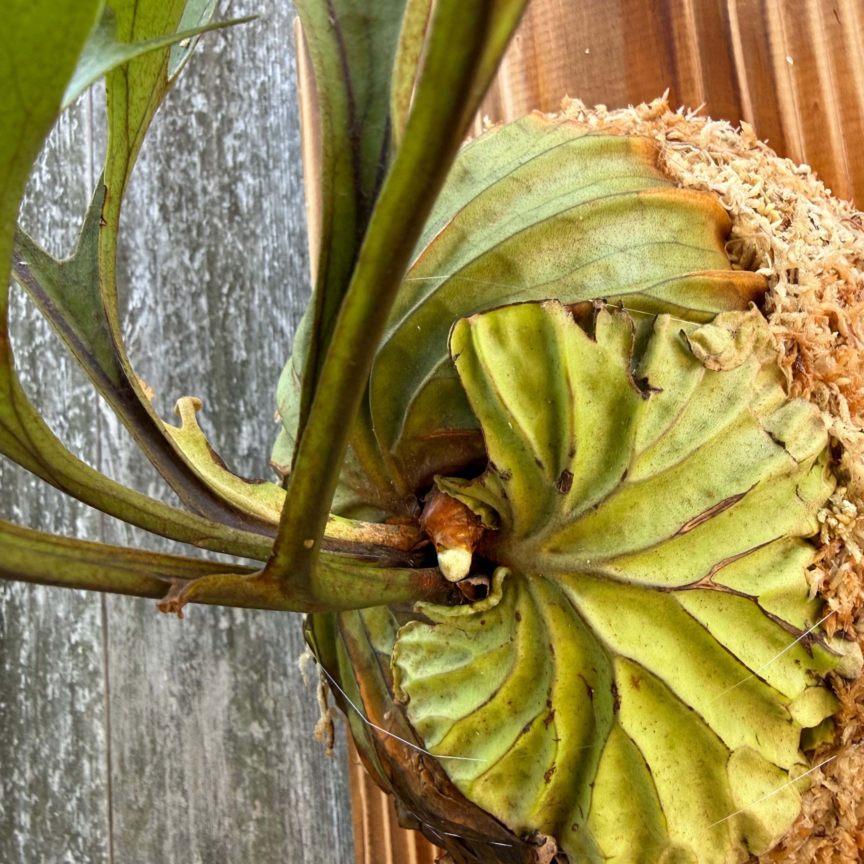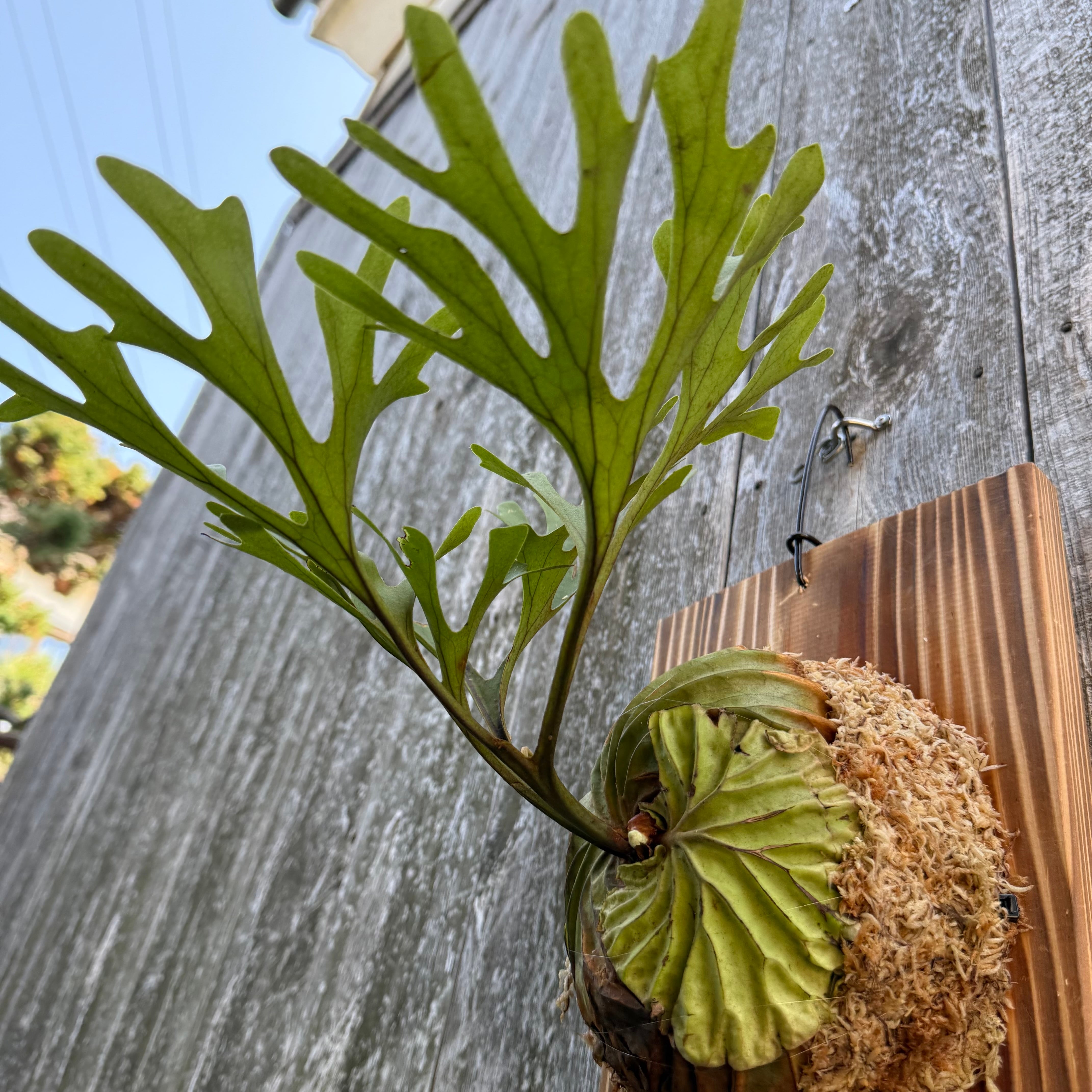 ワイルド株ならではの胞子葉、貯水葉には痛みや傷はありますが、胞子栽培よりも強靭で味があります。成長点からは新しい葉の成長もしっかりとあります。管理しやすい焼板につけております。お部屋のインテリアにいかがでしょうか。