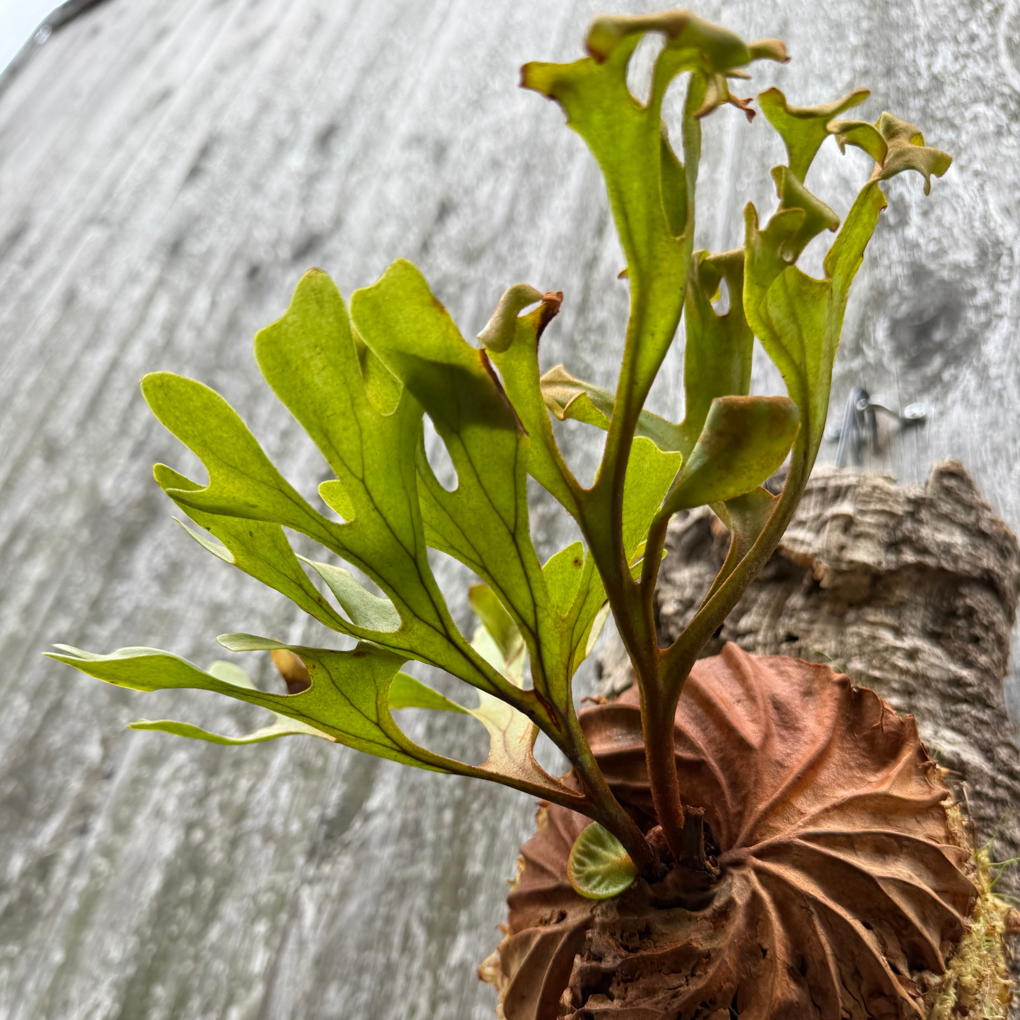 胞子葉、貯水葉には野生種ならではの痛みや傷はありますが、胞子栽培よりも強靭で味があります。成長点からは新しい葉の成長もあります。