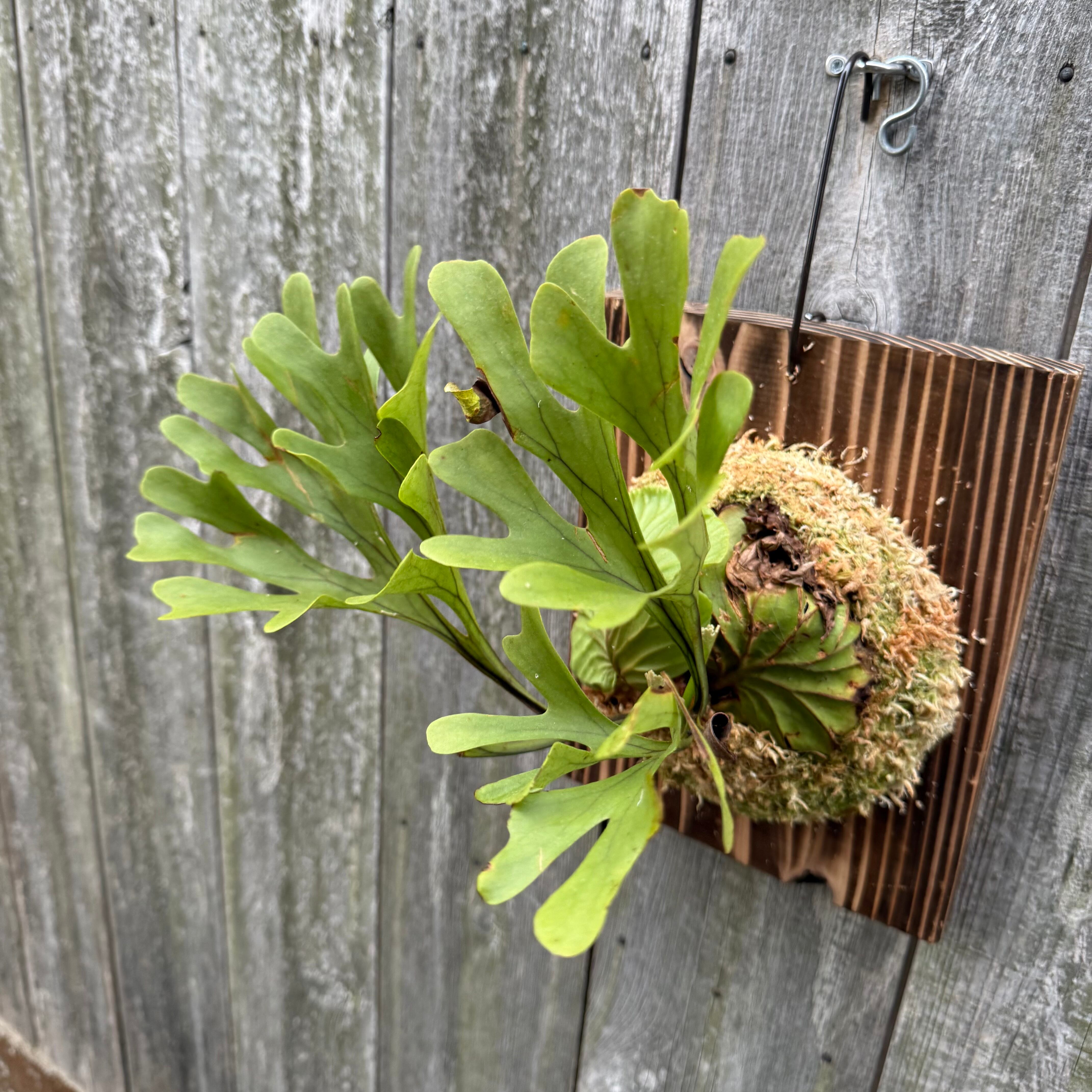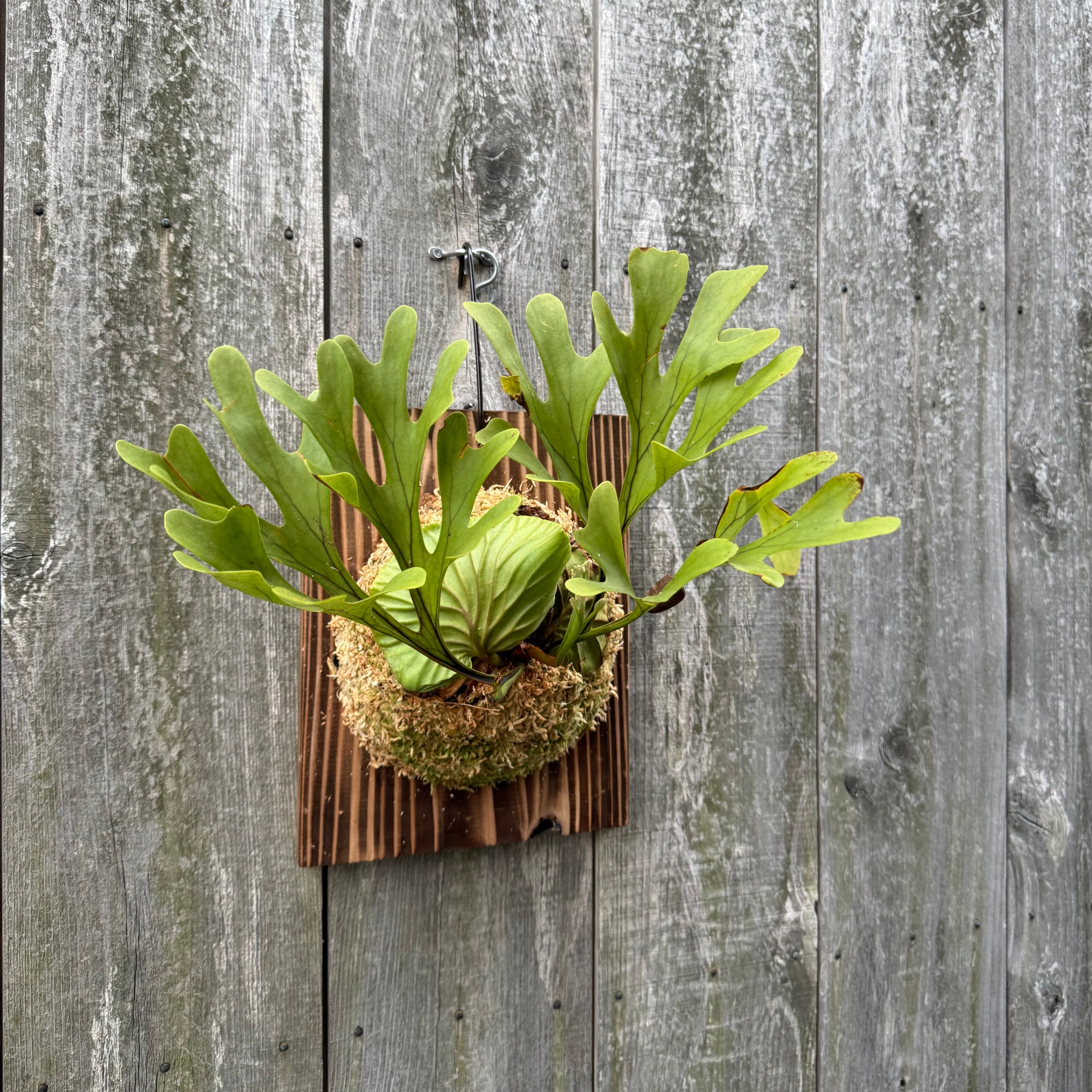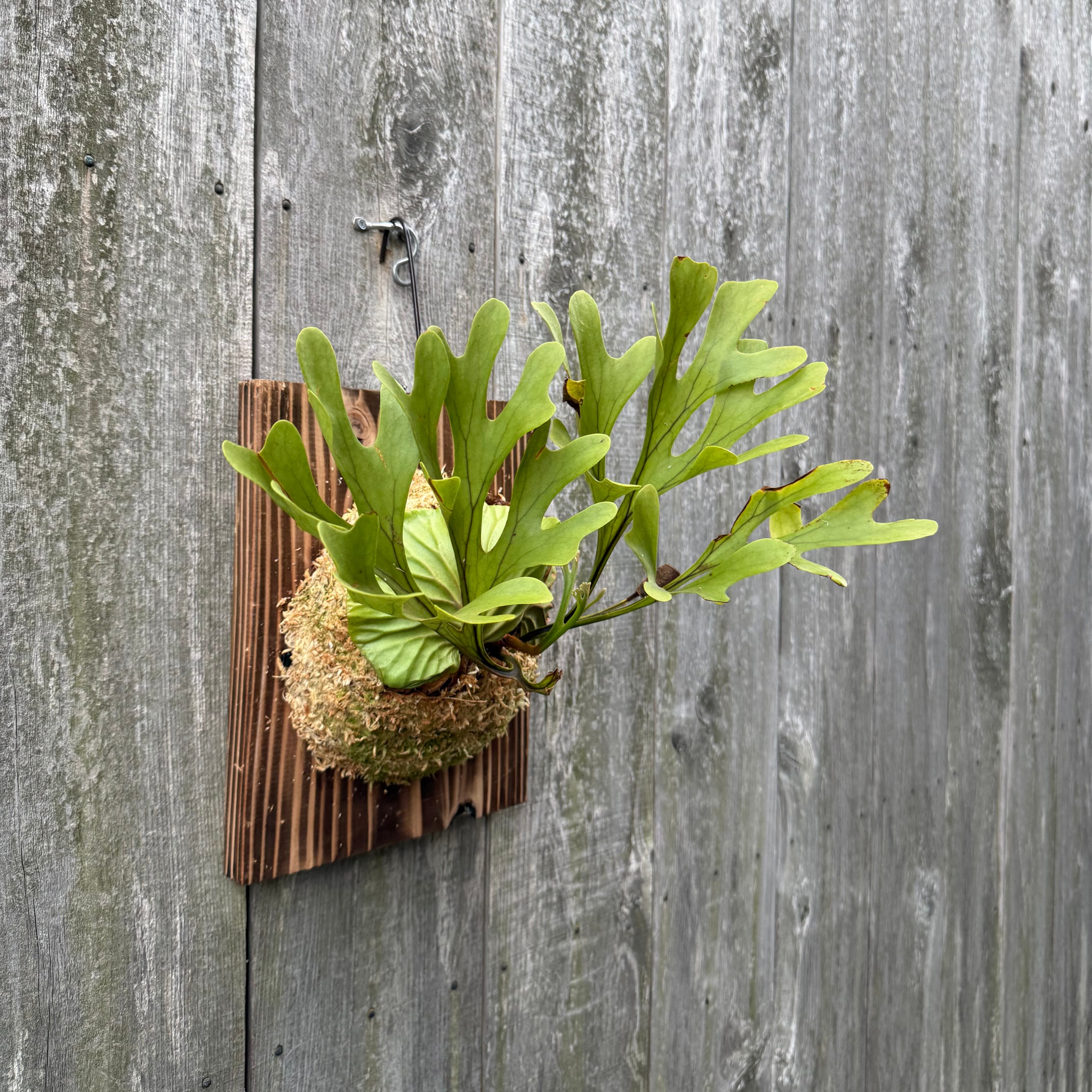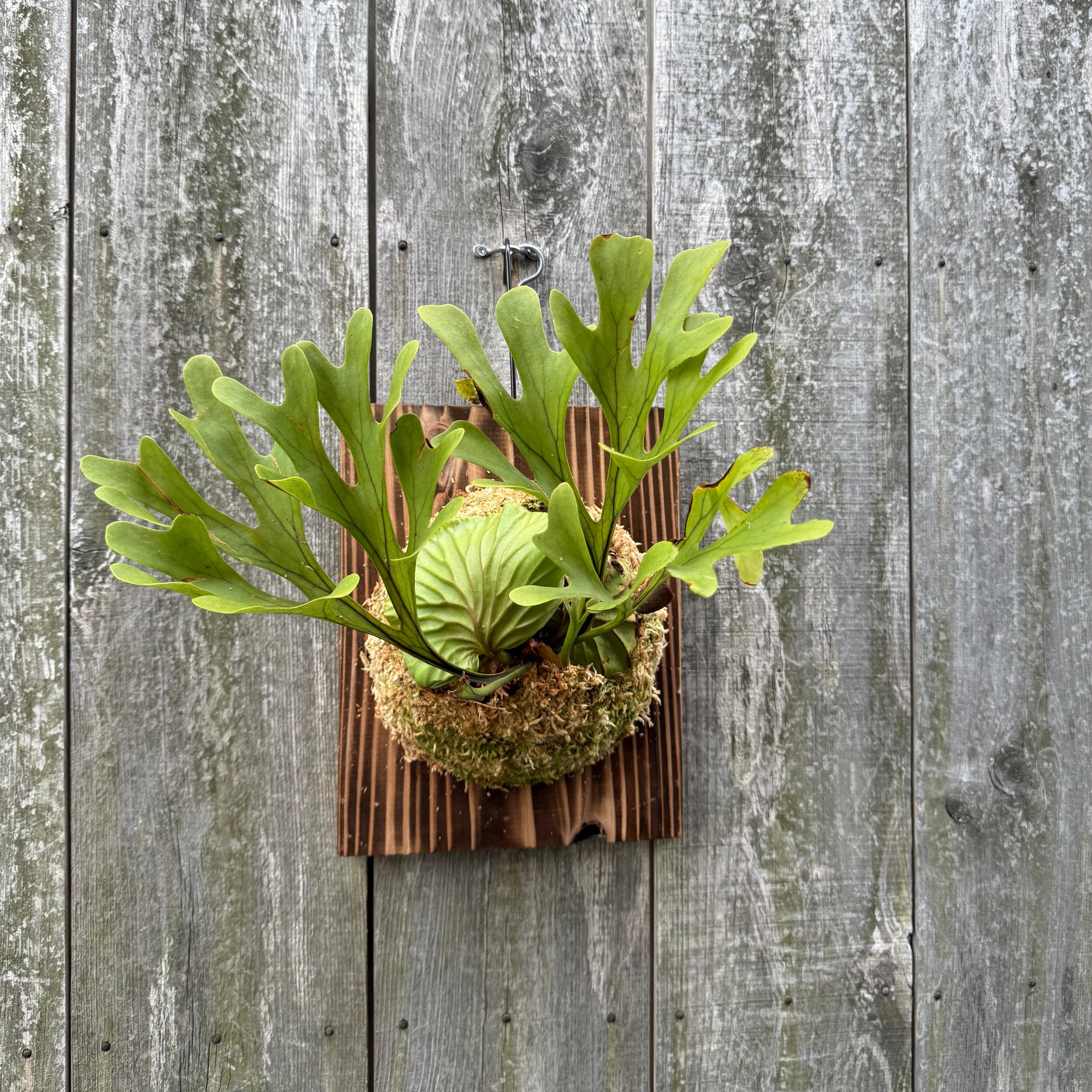 ワイルド株ならではの胞子葉、貯水葉には痛みや傷はありますが、胞子栽培よりも強靭で味があります。成長点からは新しい葉の成長もしっかりとあります。管理しやすい焼板につけております。お部屋のインテリアにいかがでしょうか。