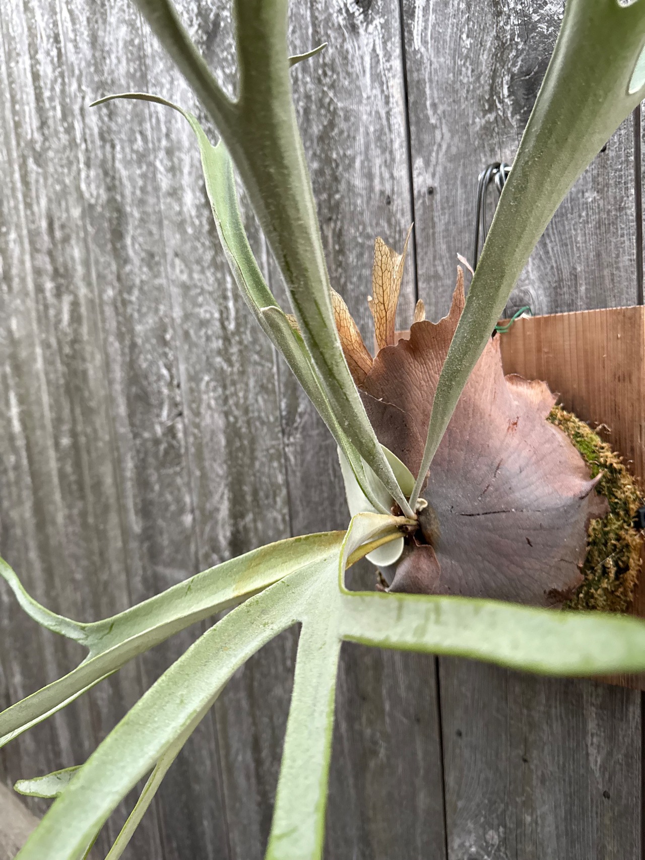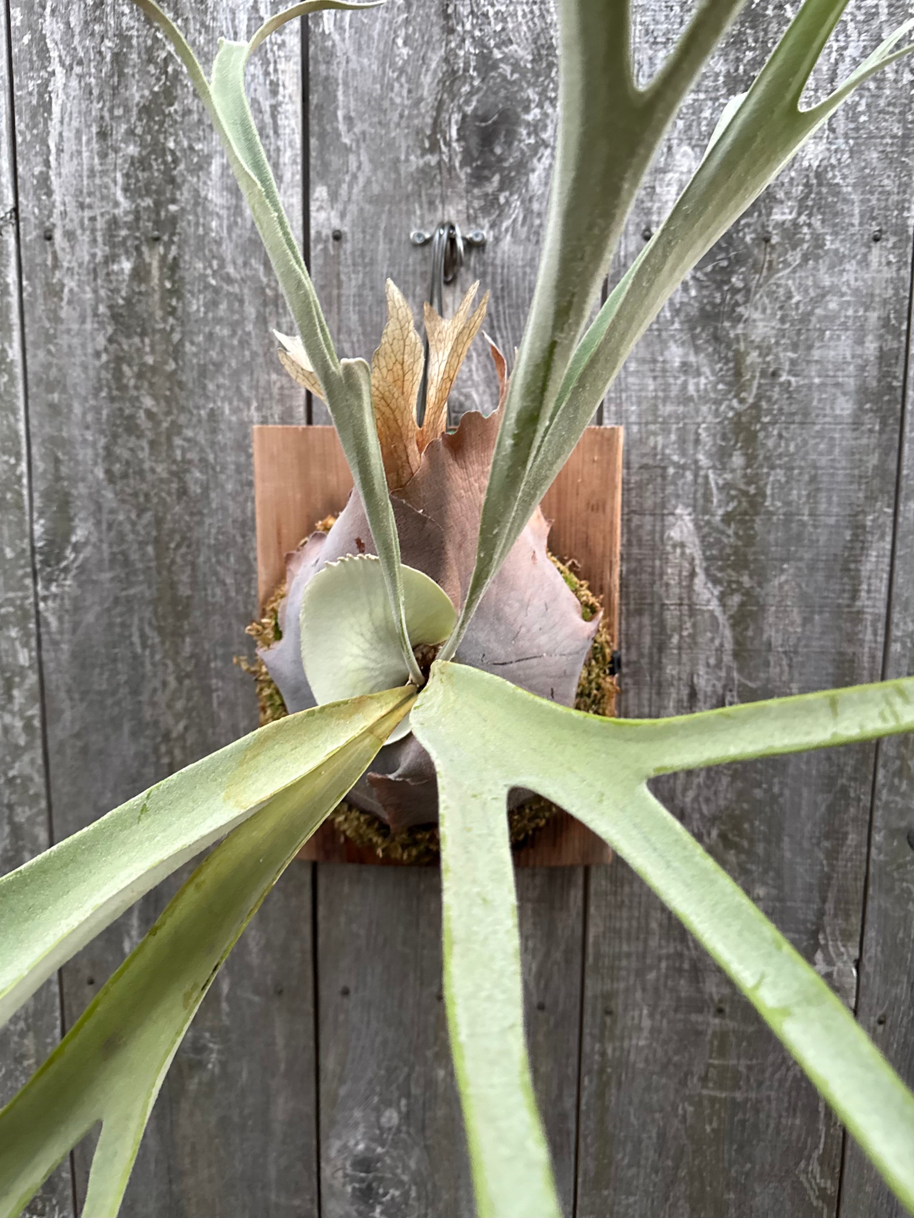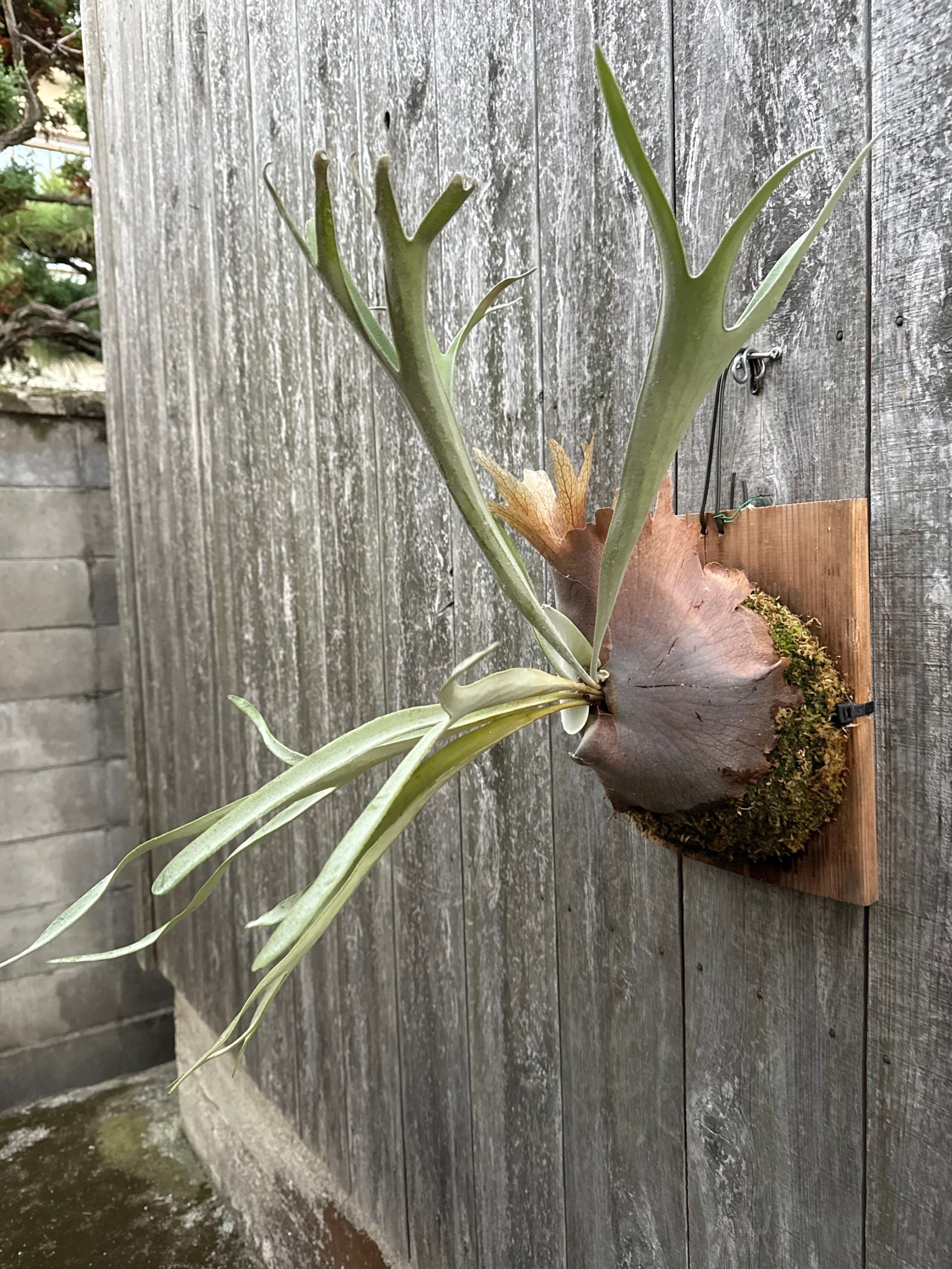 チェンマイの山間部でビカクシダを育てているビカクシダの趣味家からの株です。個性的で美しい胞子葉が特徴的なベイチーになります。
