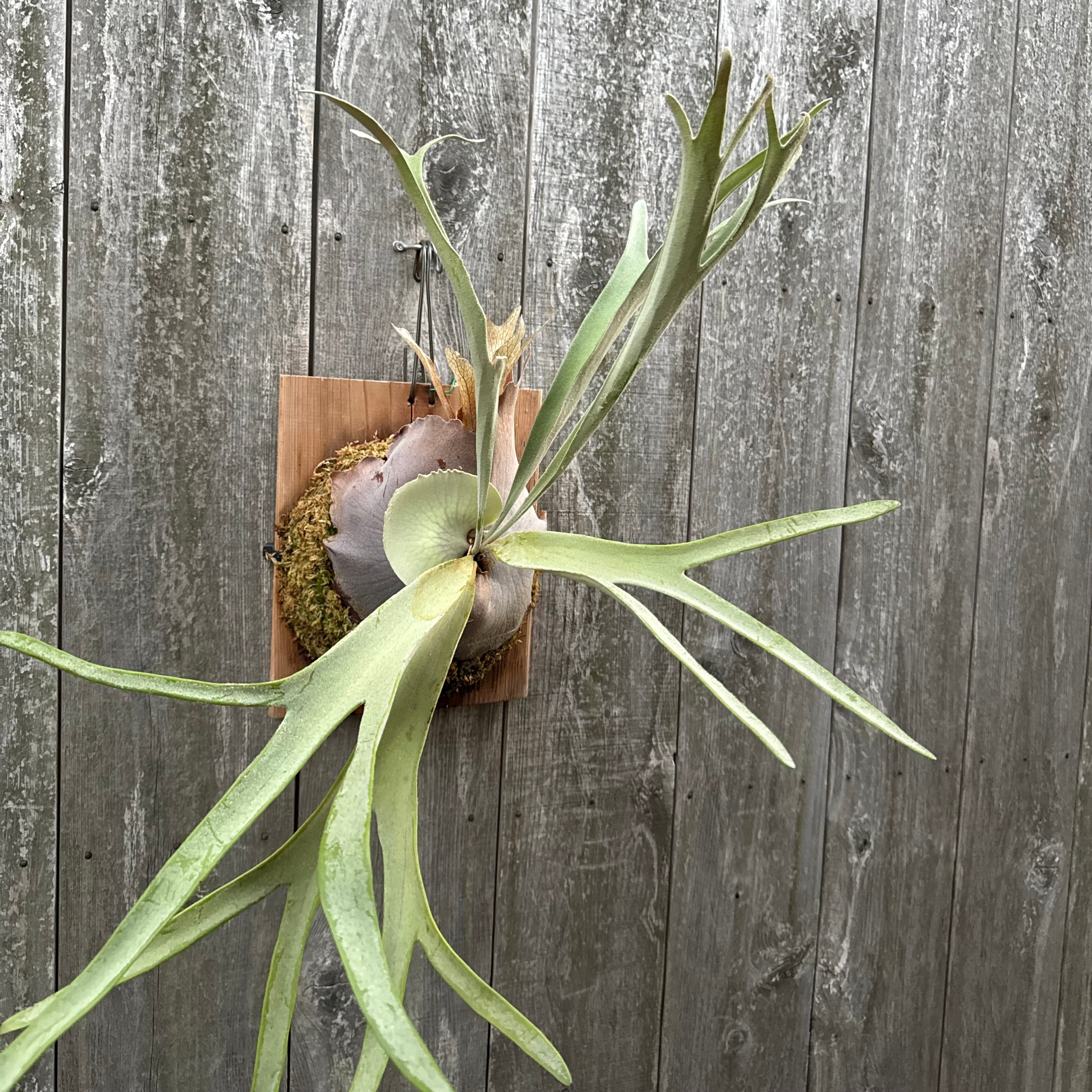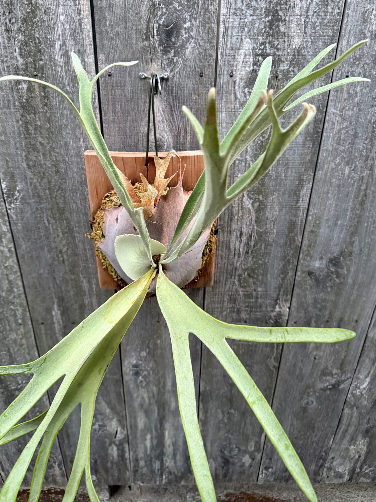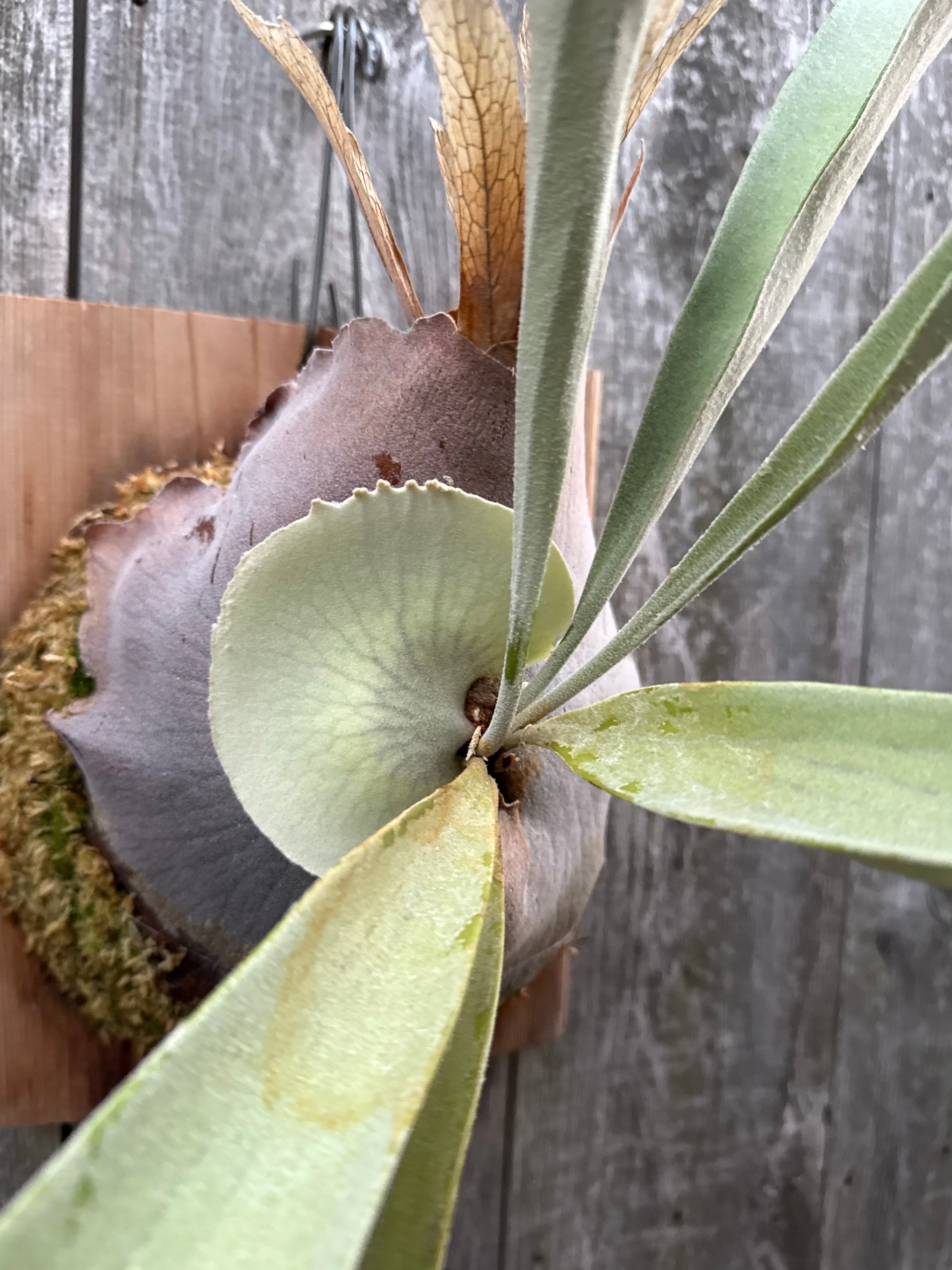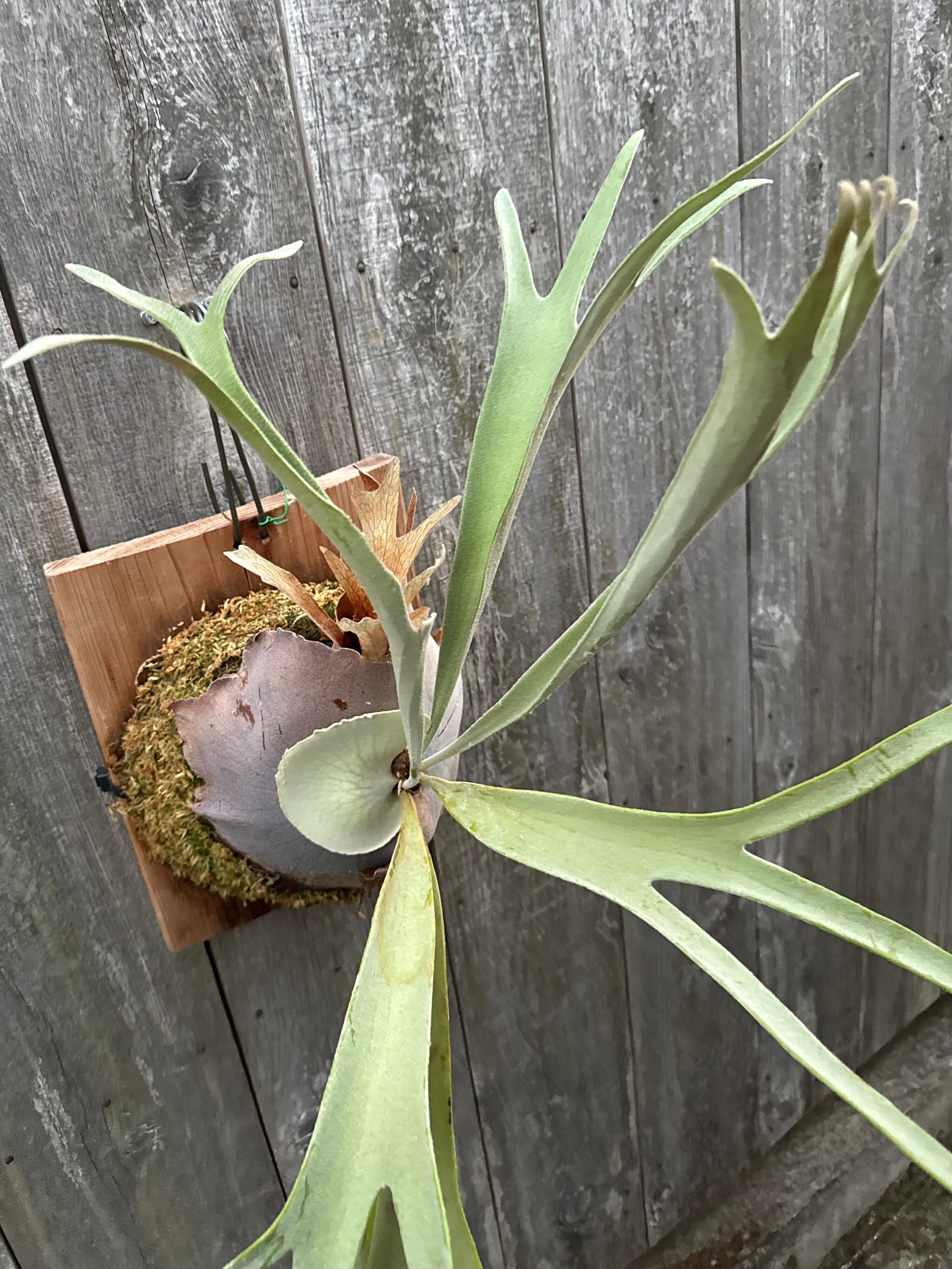 チェンマイの山間部でビカクシダを育てているビカクシダの趣味家からの株です。個性的で美しい胞子葉が特徴的なベイチーになります。