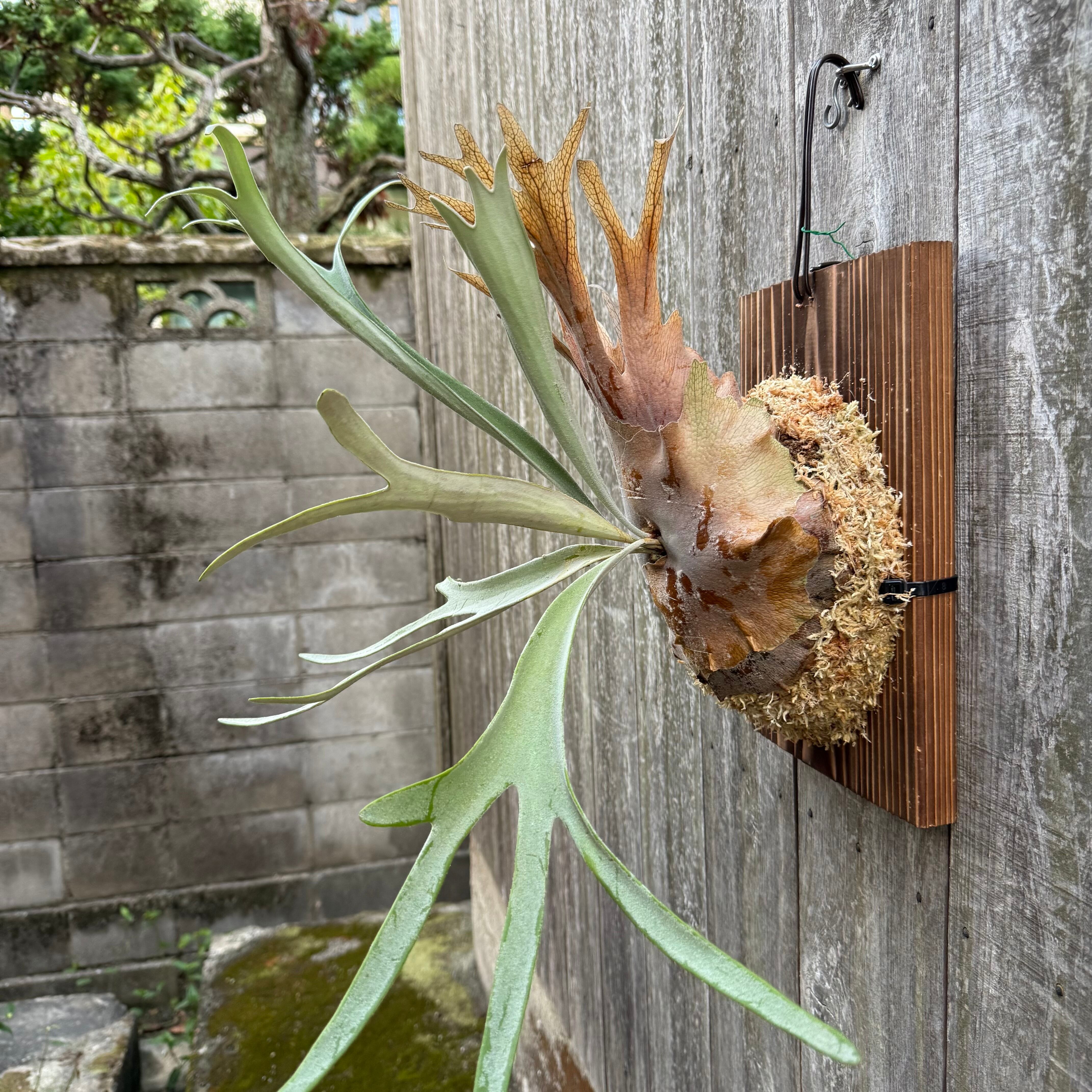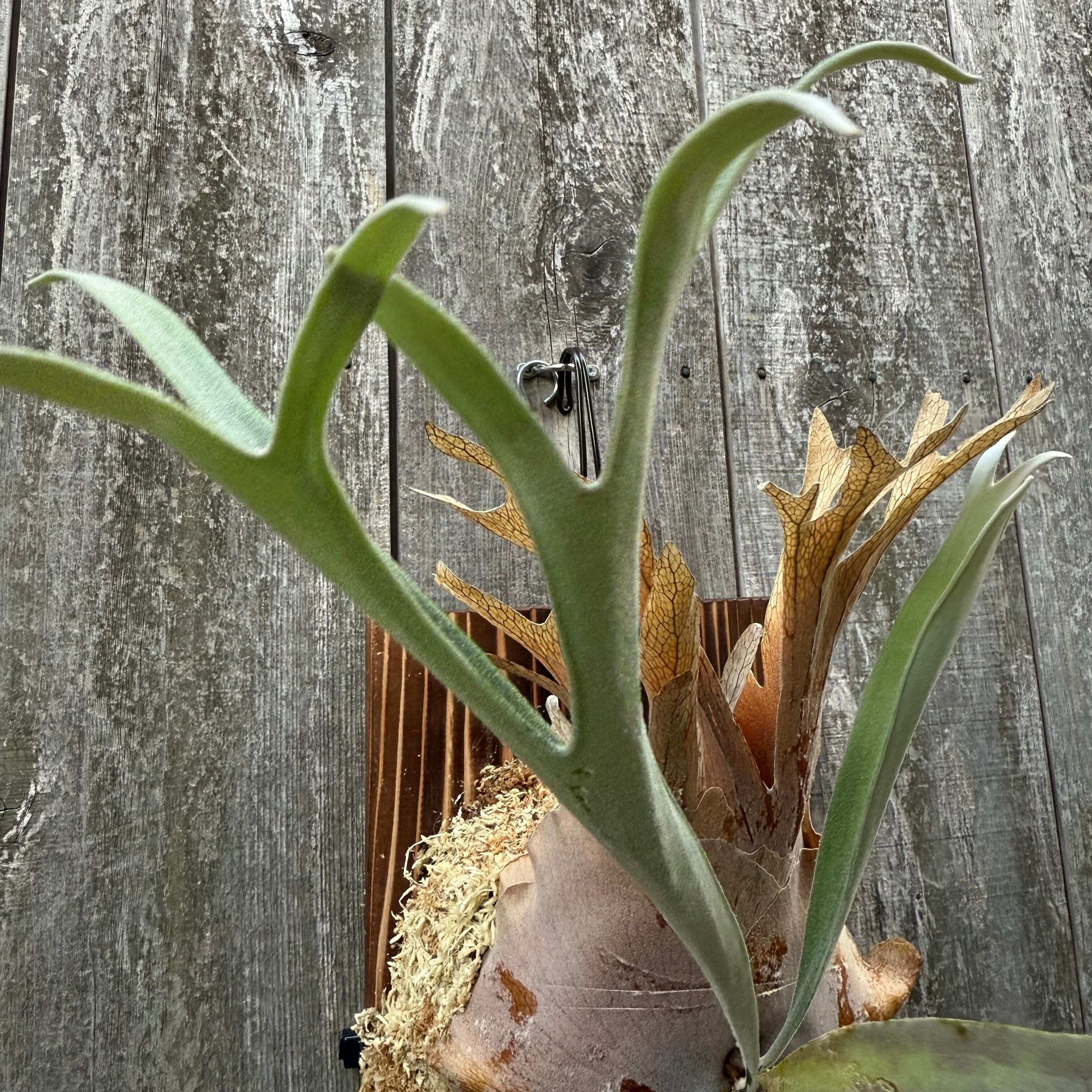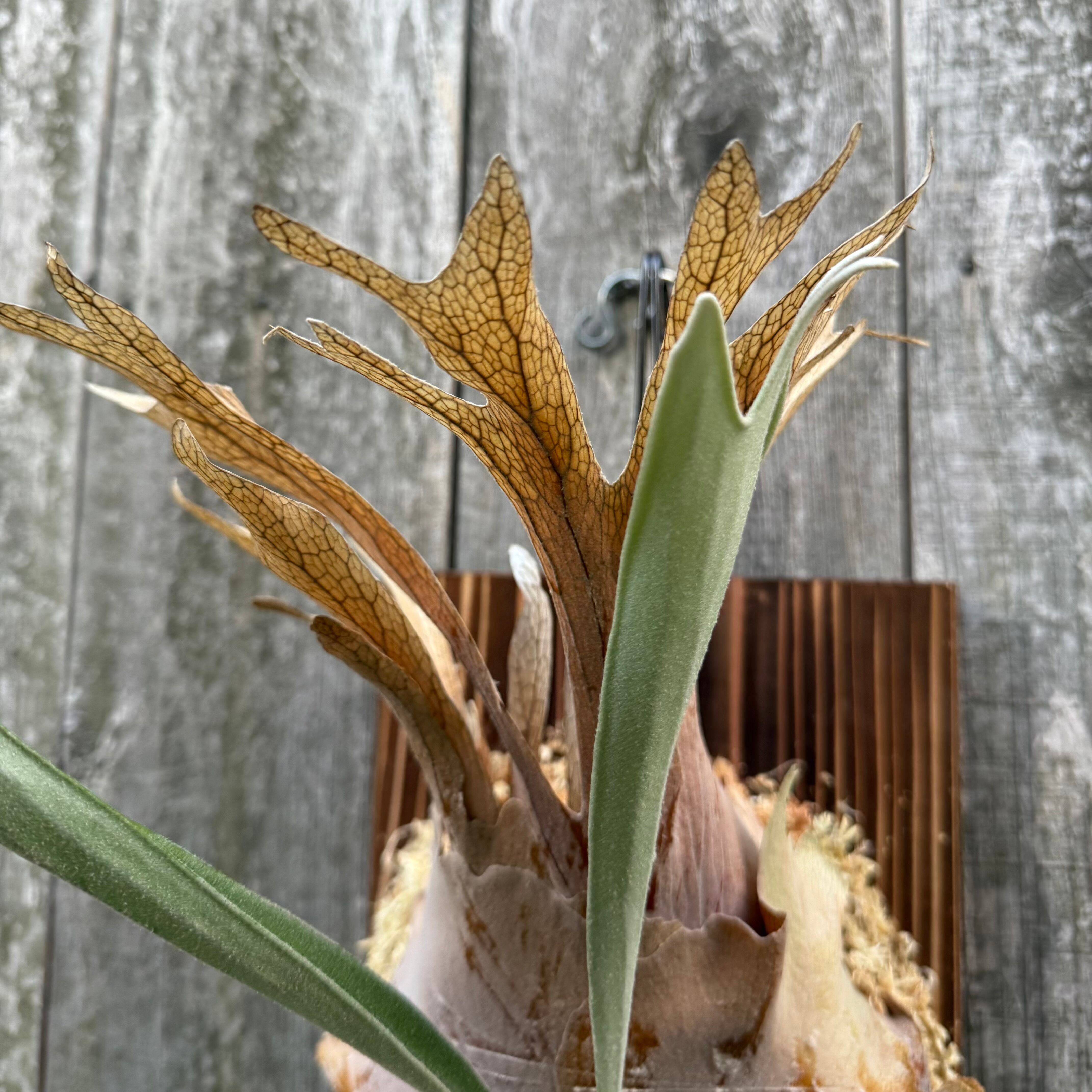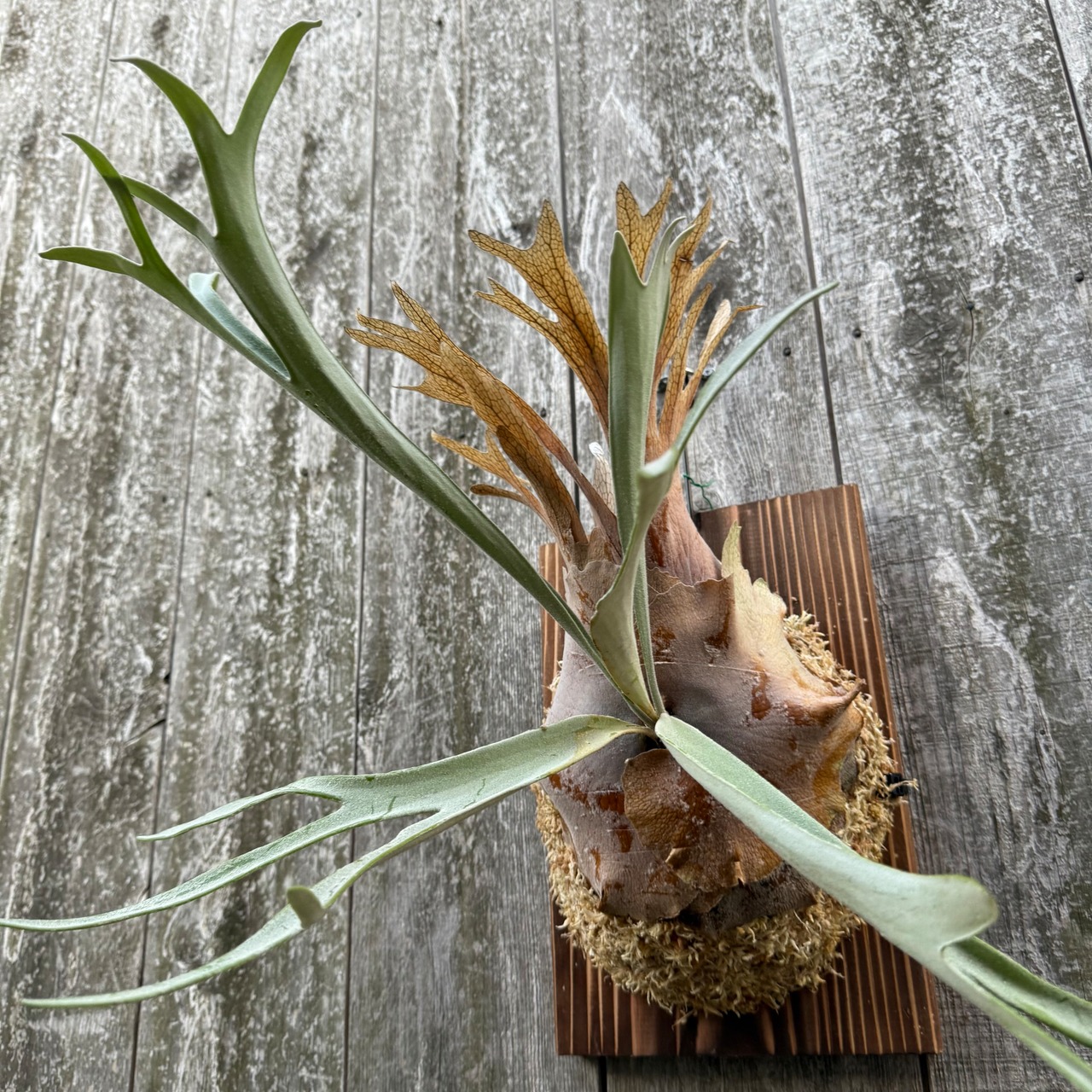 チェンマイの山間部でビカクシダを育てている趣味家さんからの株です。個性的で綺麗な胞子葉のベイチーです。