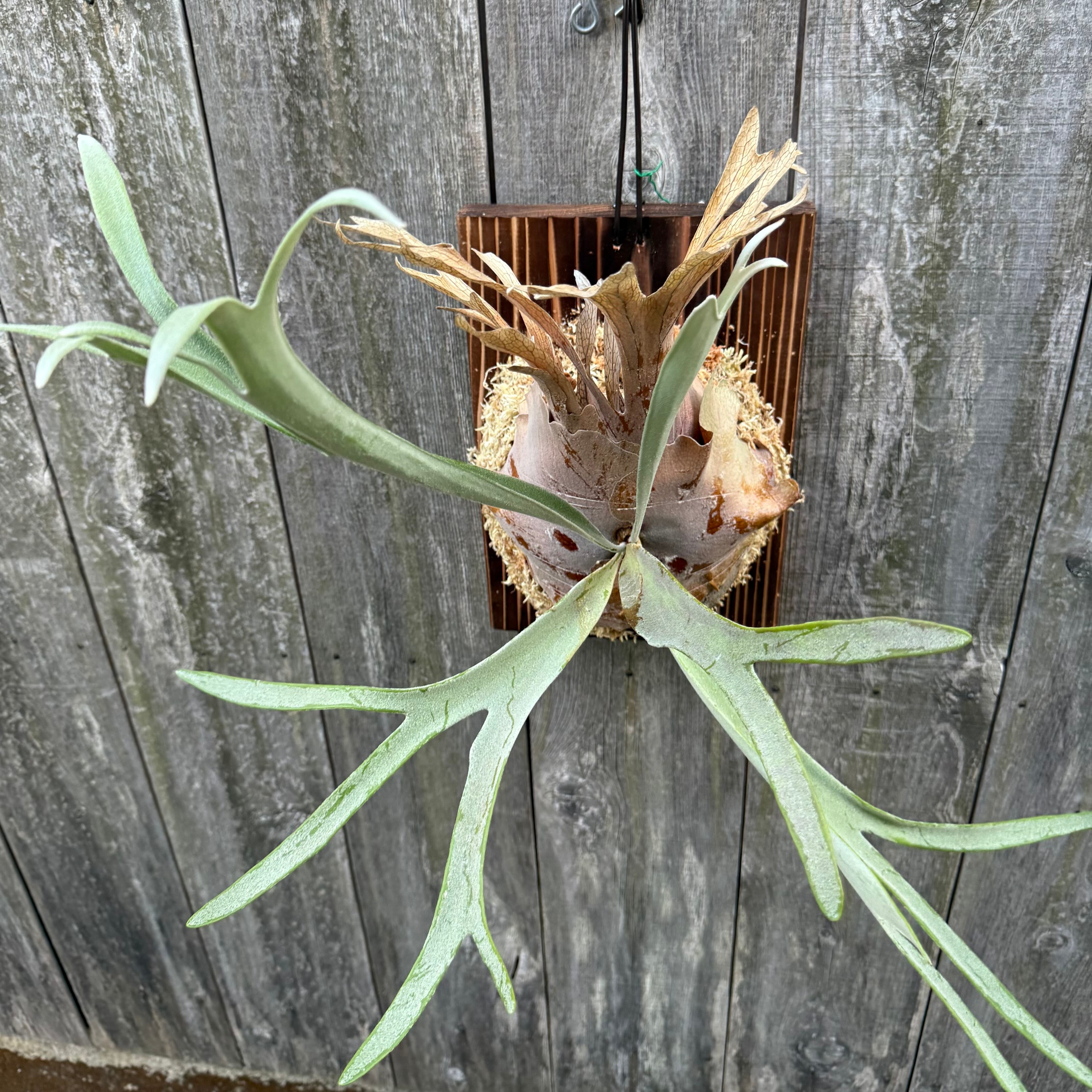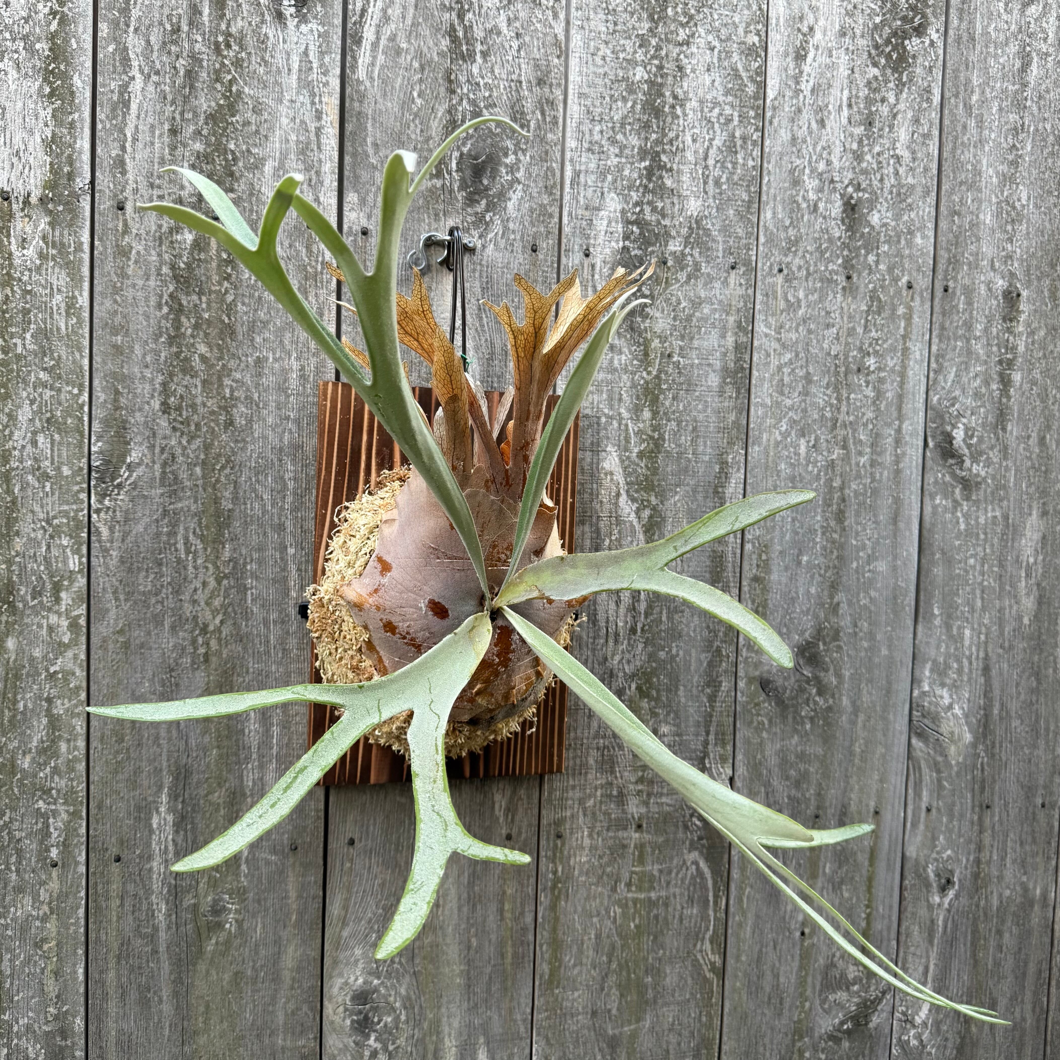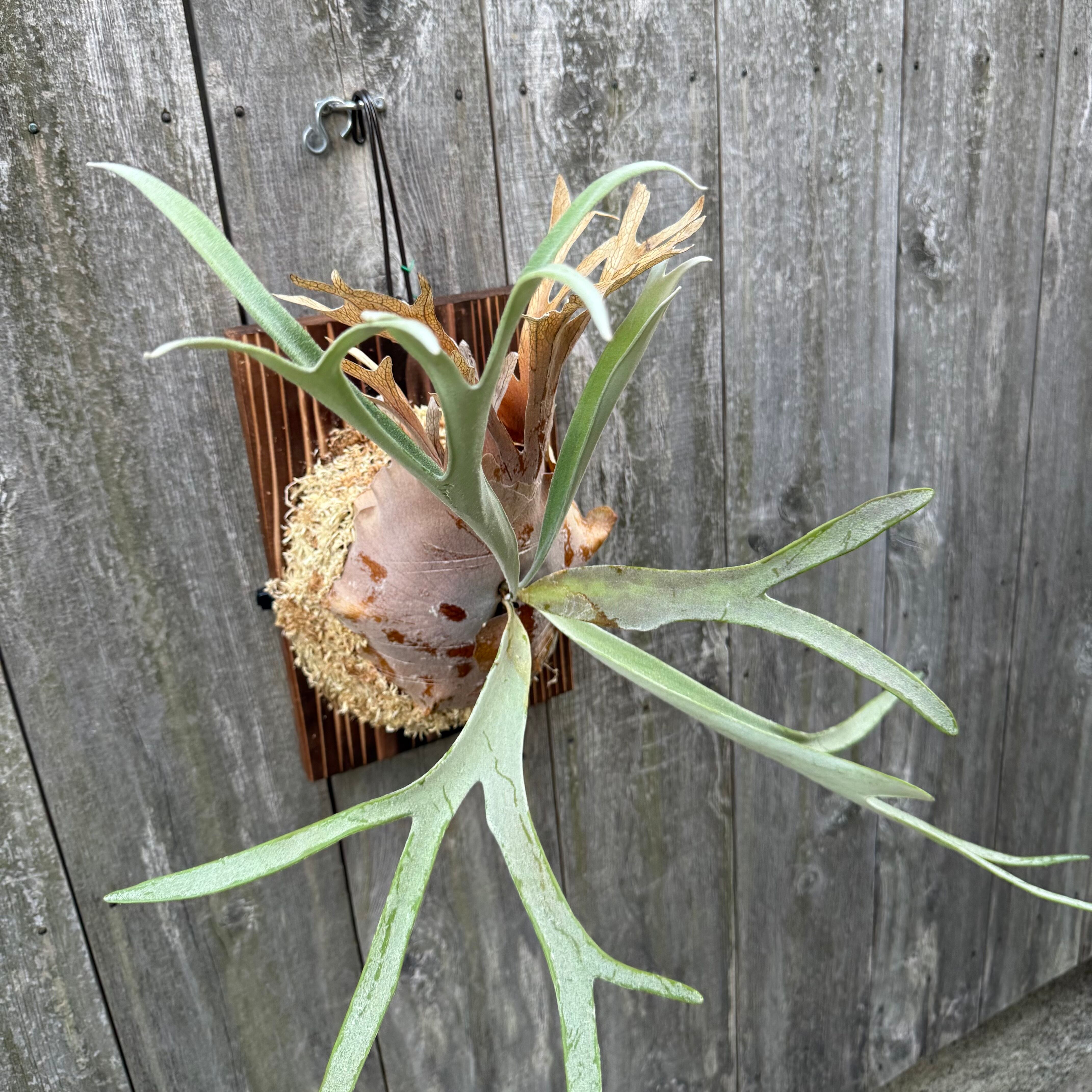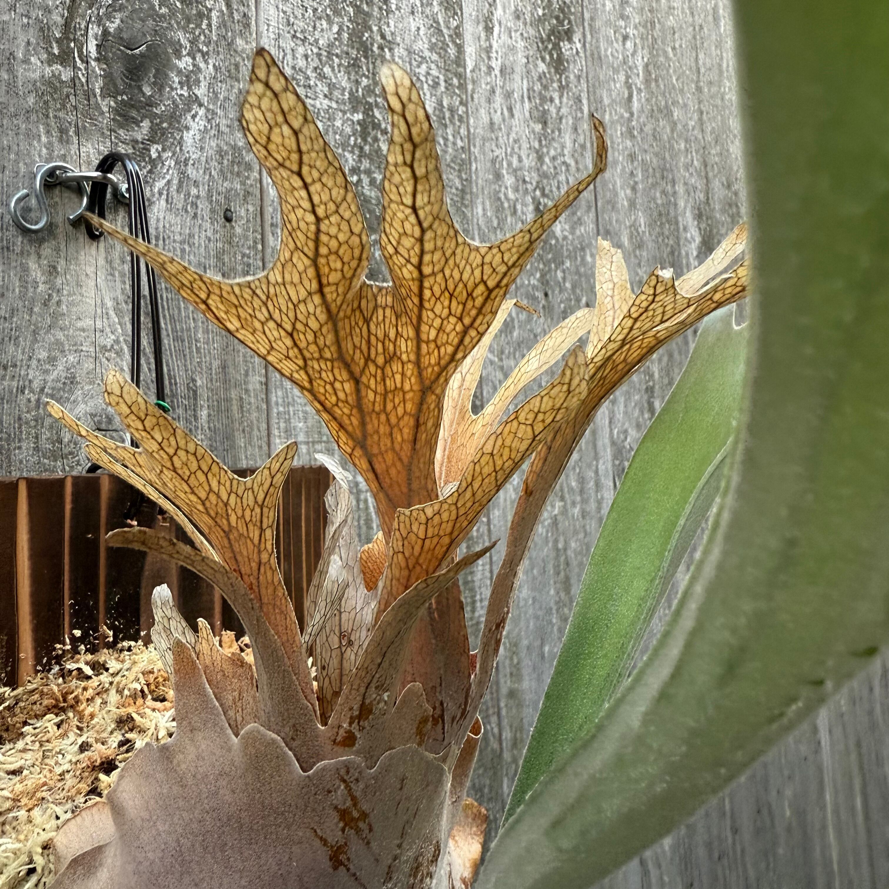 チェンマイの山間部でビカクシダを育てている趣味家さんからの株です。個性的で綺麗な胞子葉のベイチーです。