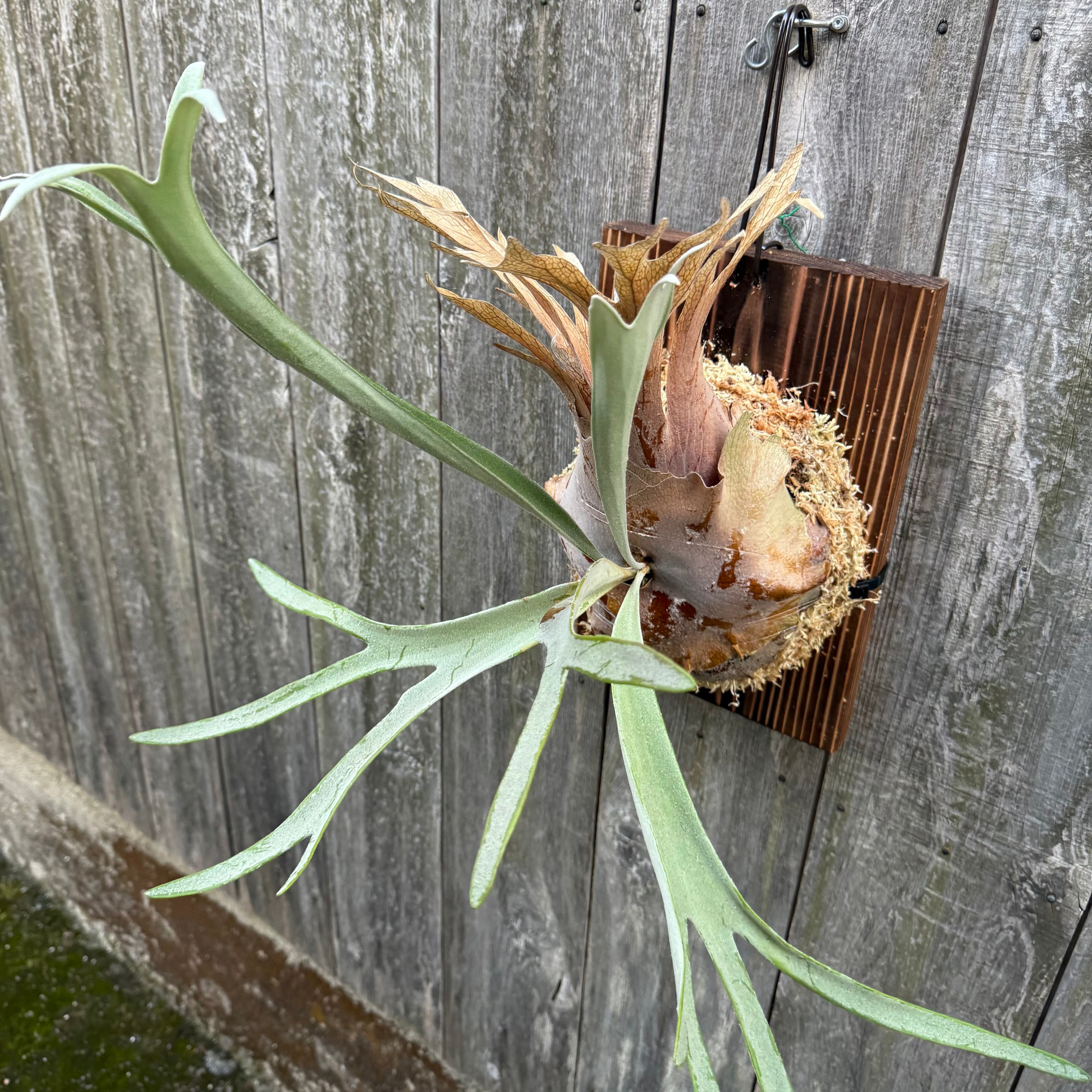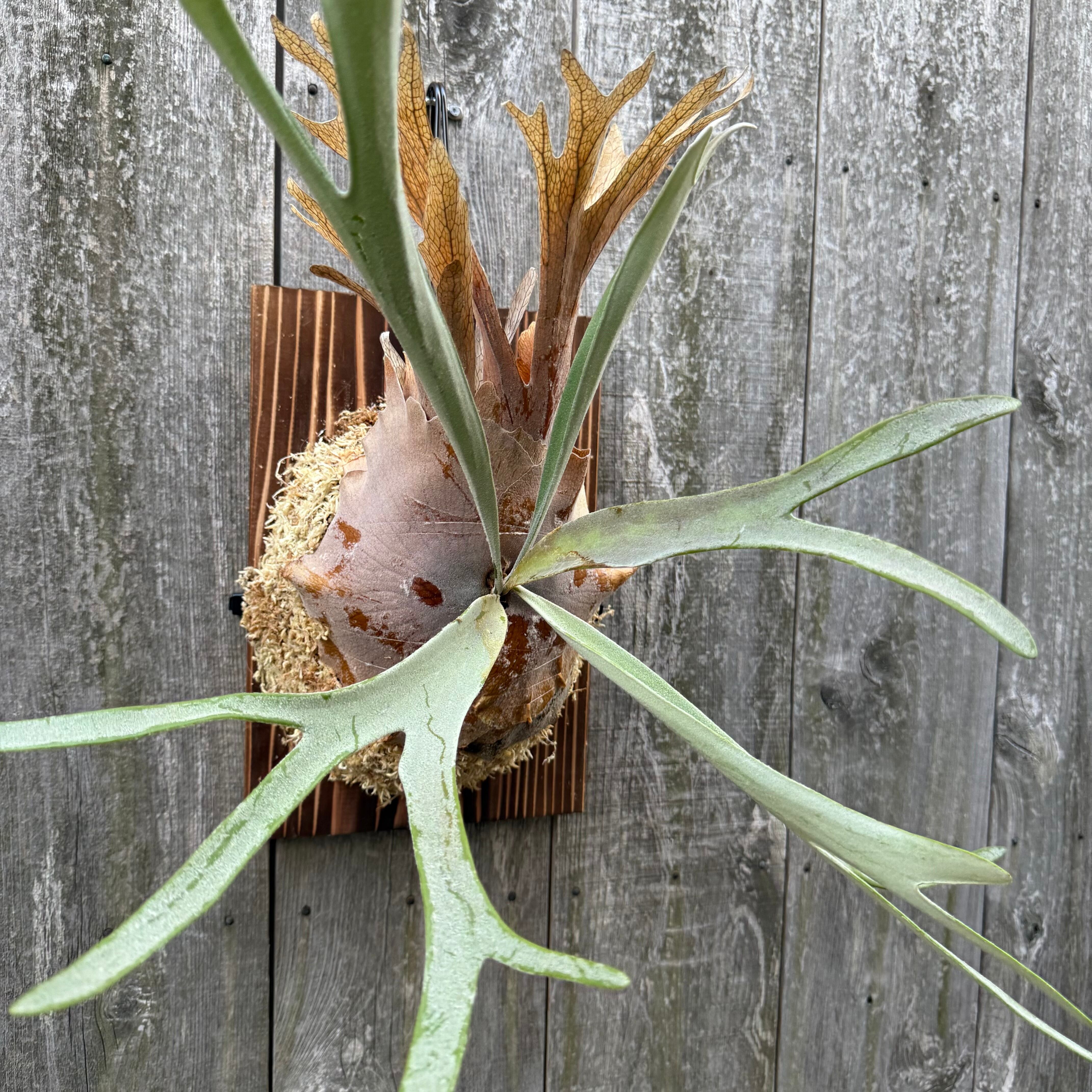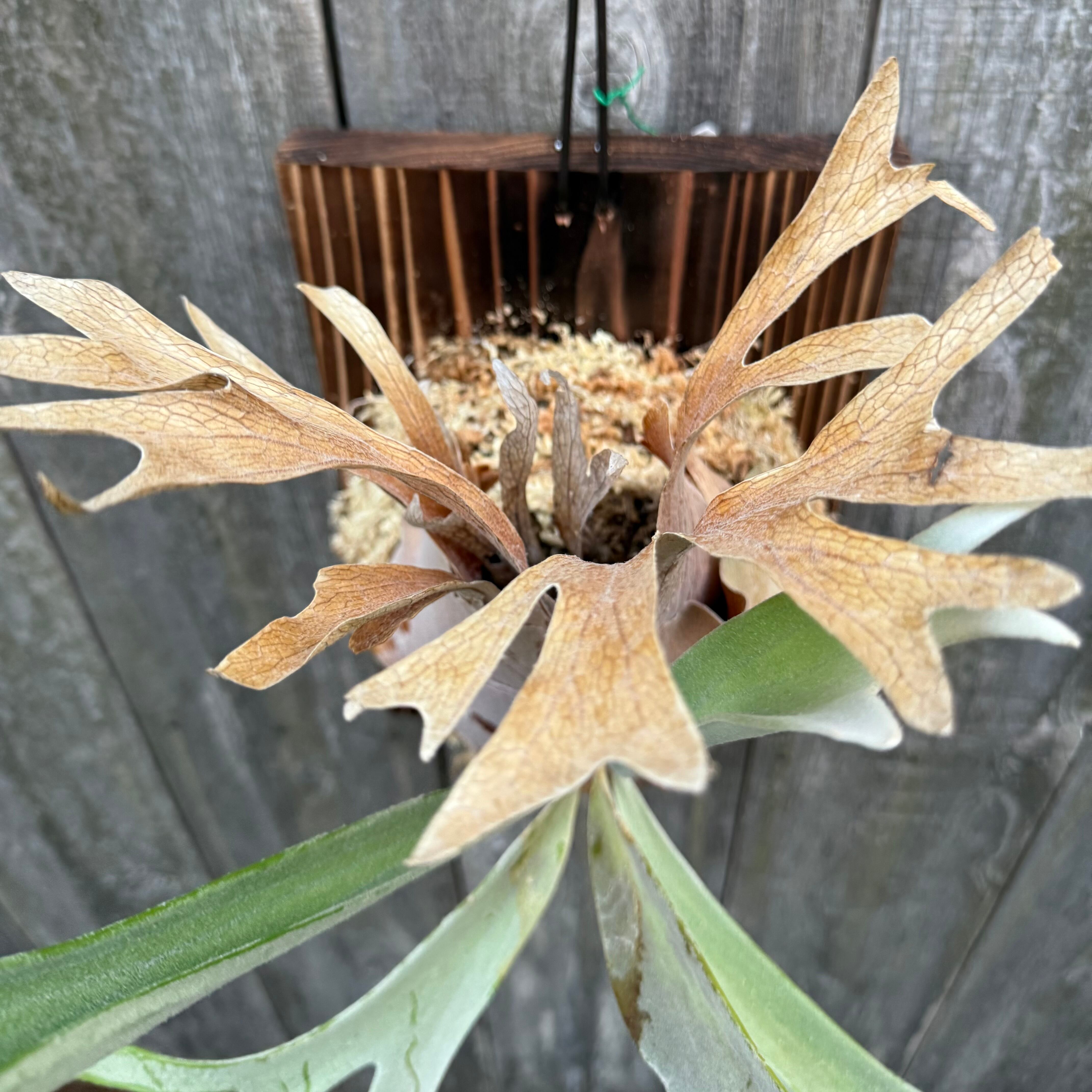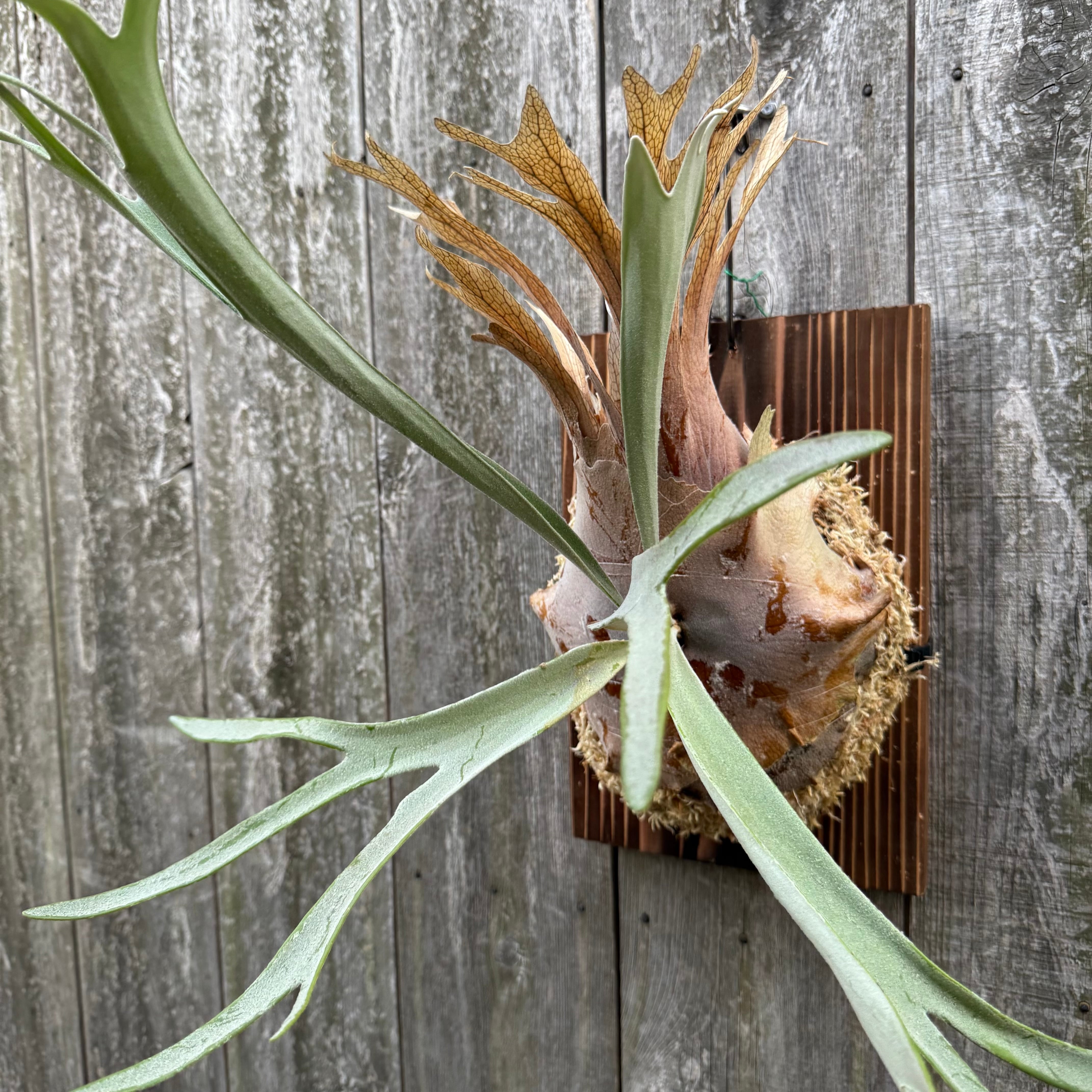 チェンマイの山間部でビカクシダを育てている趣味家さんからの株です。個性的で綺麗な胞子葉のベイチーです。