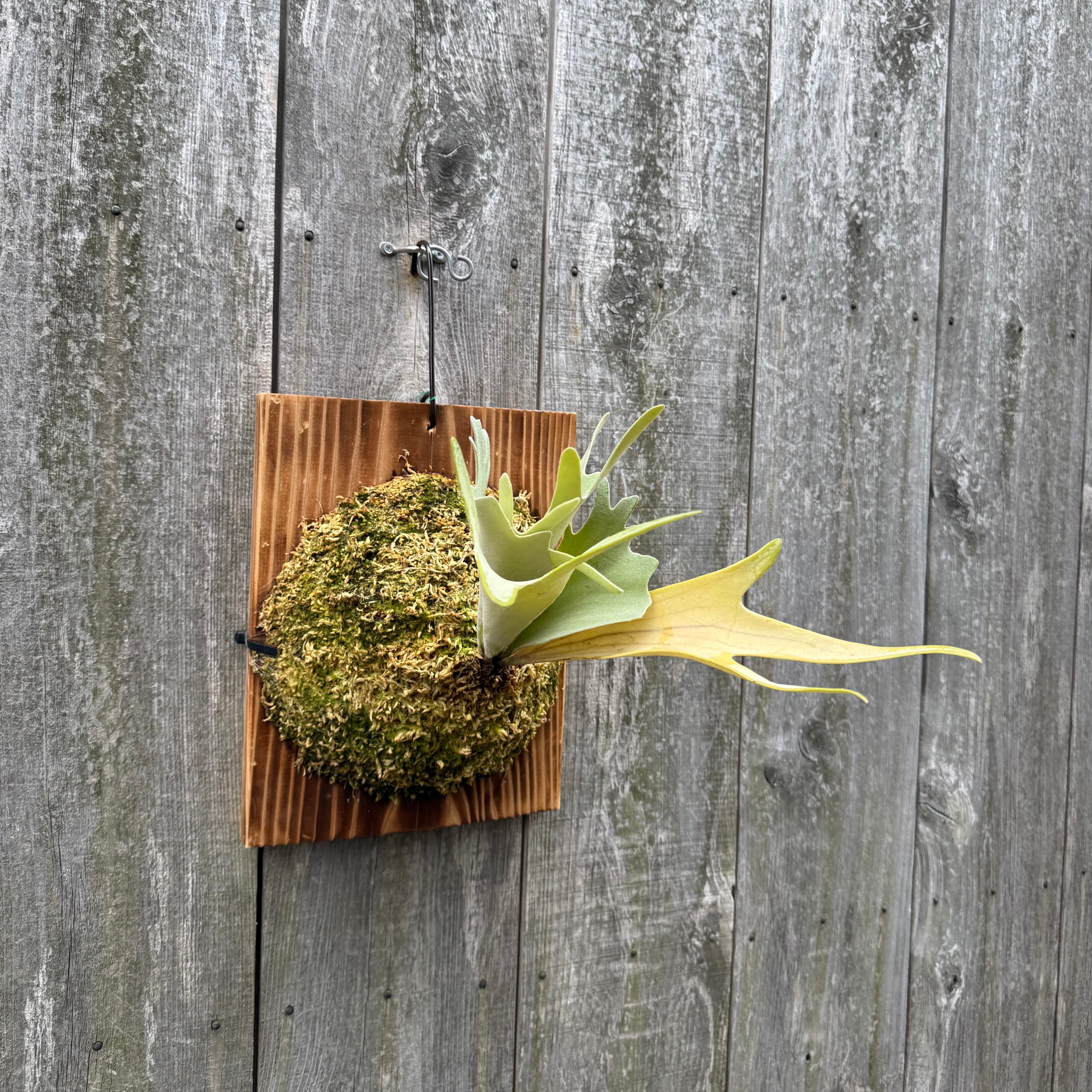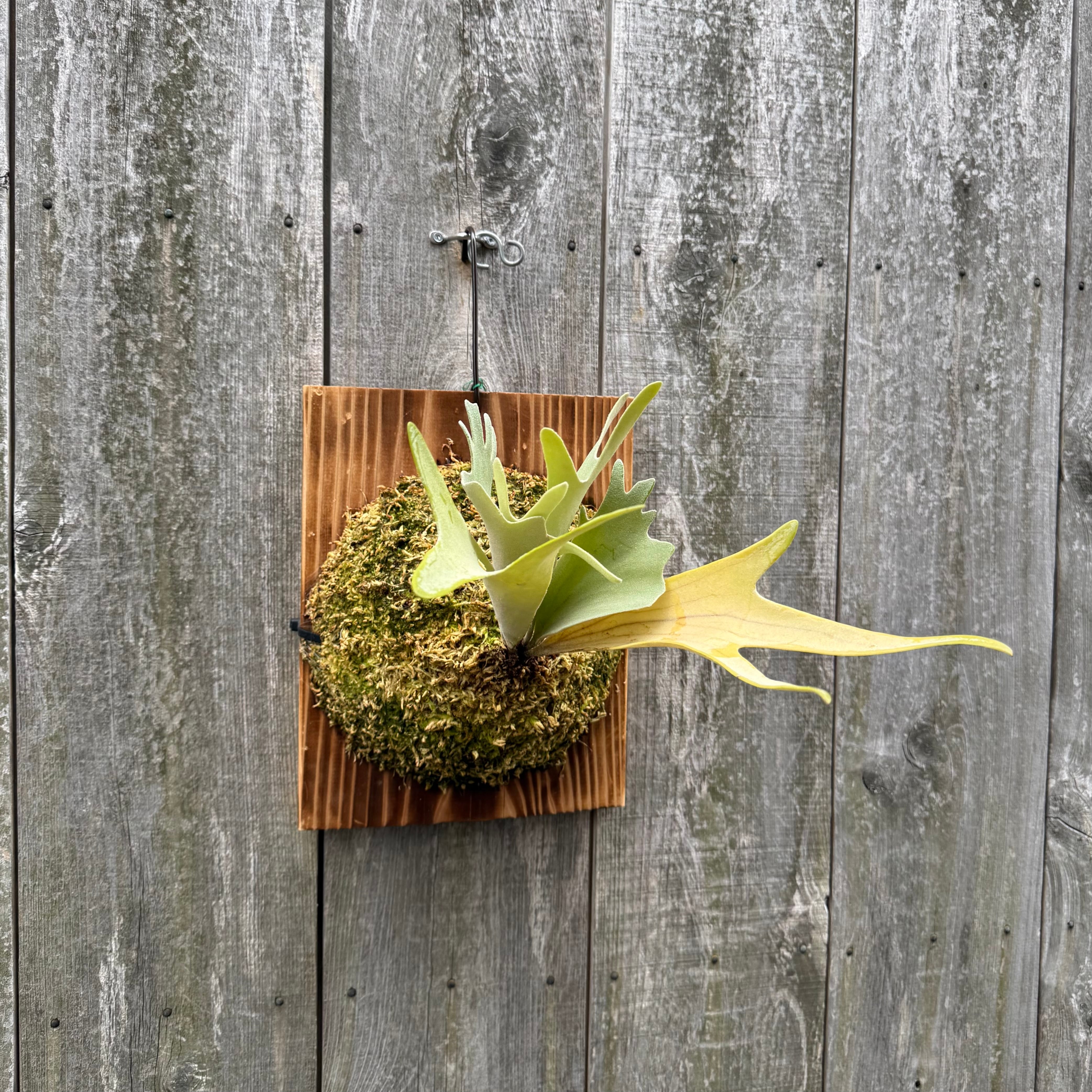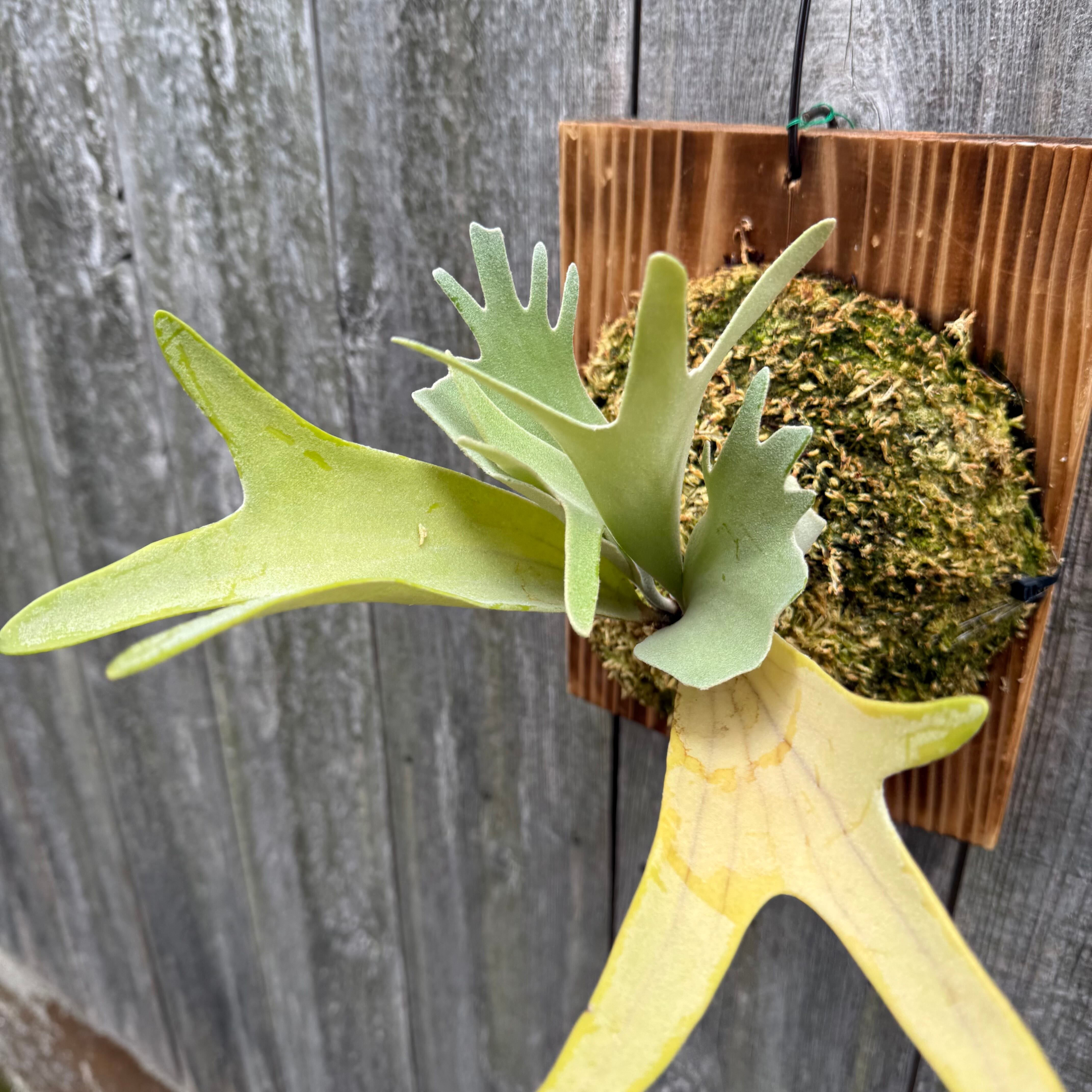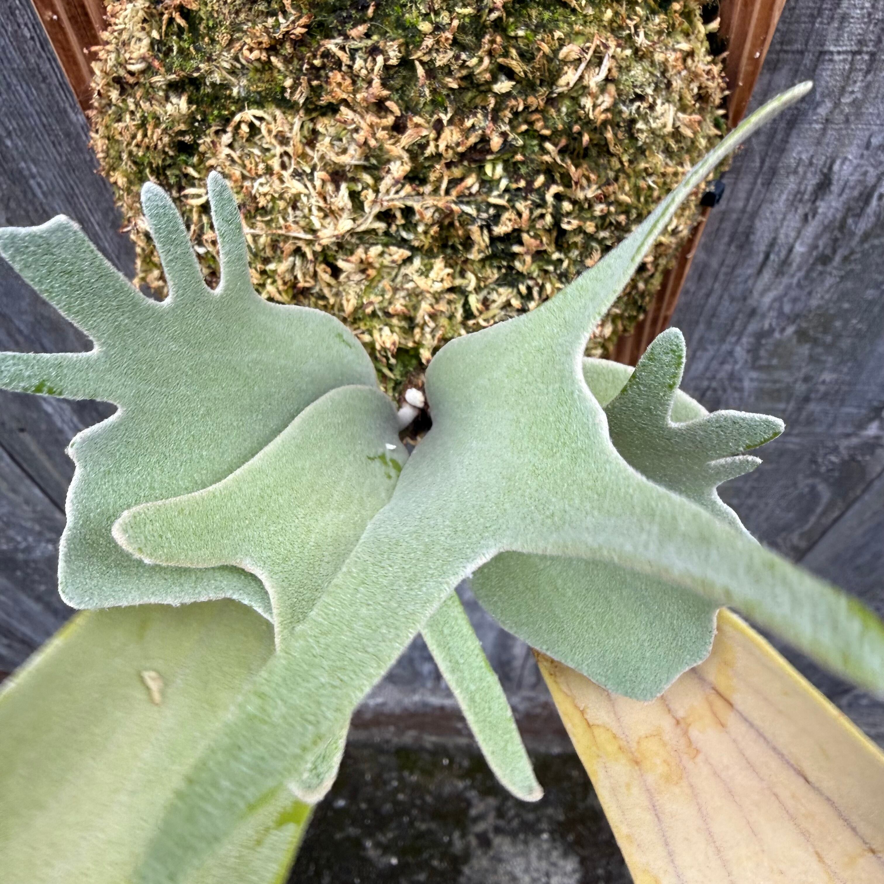 ハクナマタタの子株になります。タイで有名なビカクシダの育成家の方から仕入れました。ナーセリー内では、クーリングシステム、湿度管理、LEDライトを完備しており、親株はとても白い胞子葉が特徴的な一株でした。