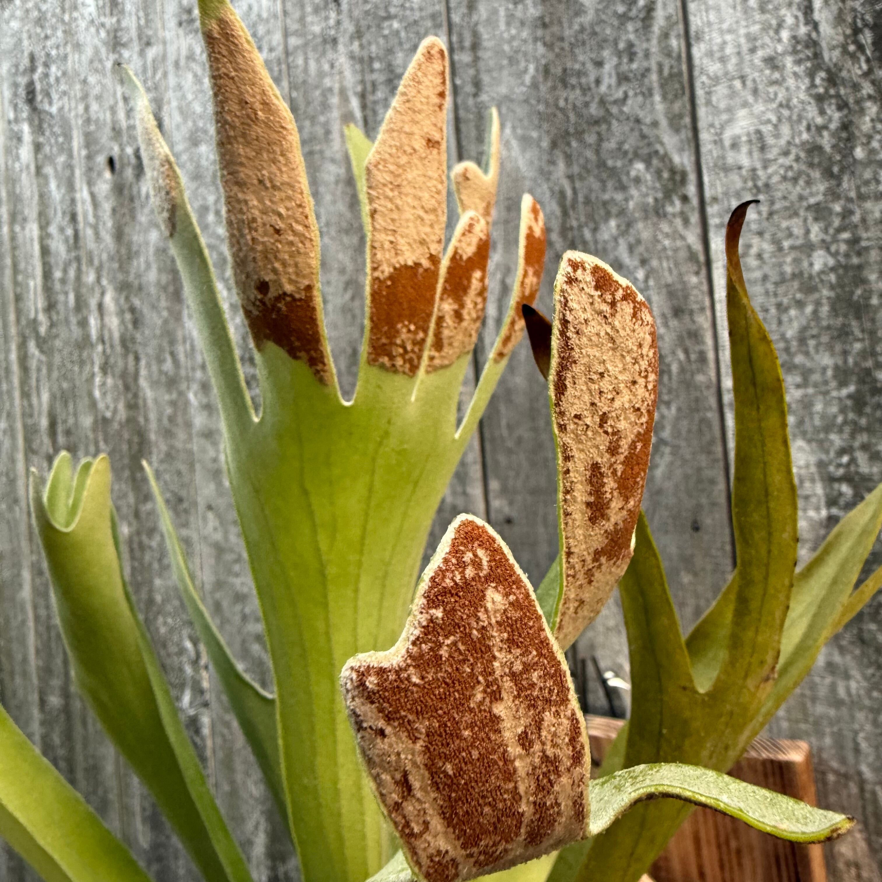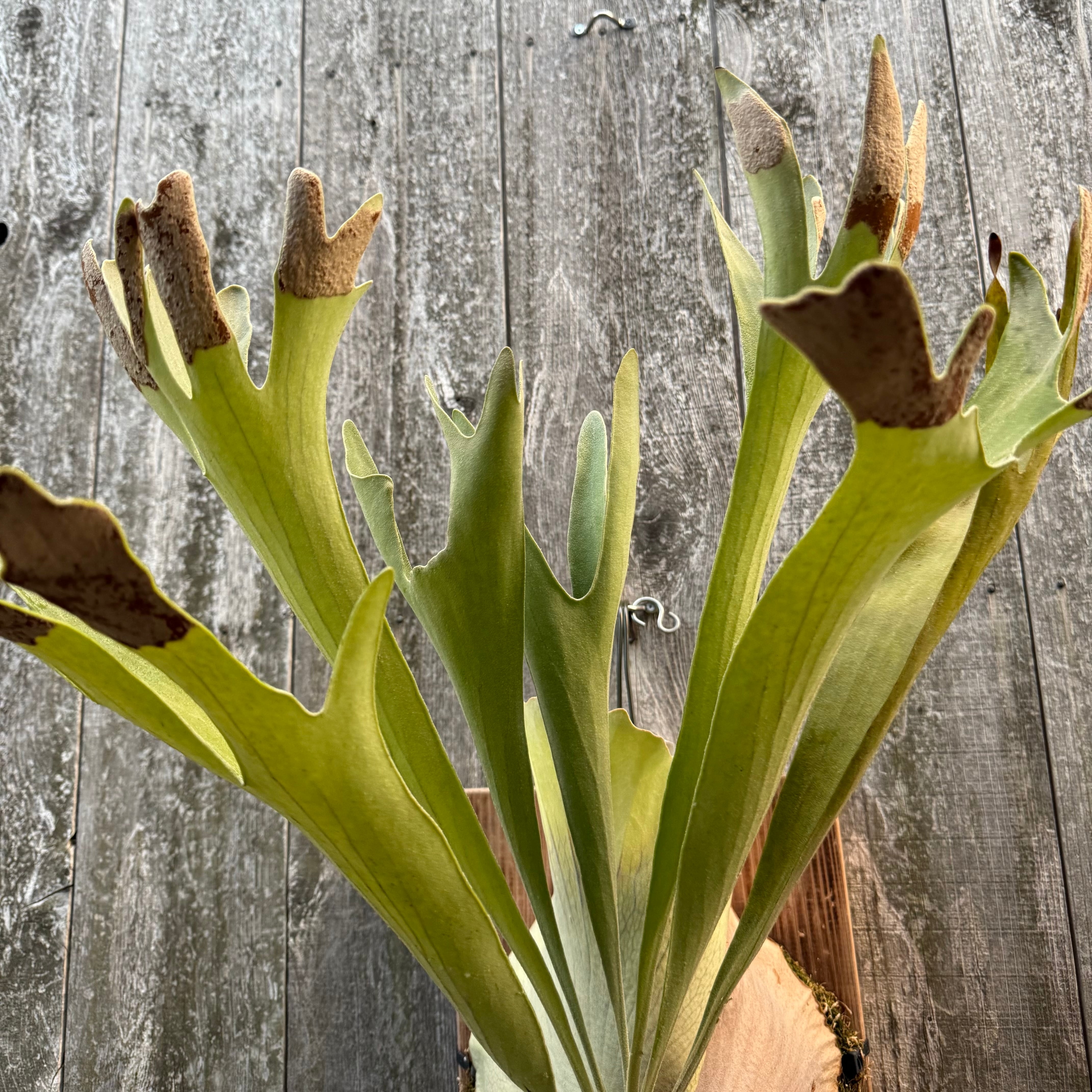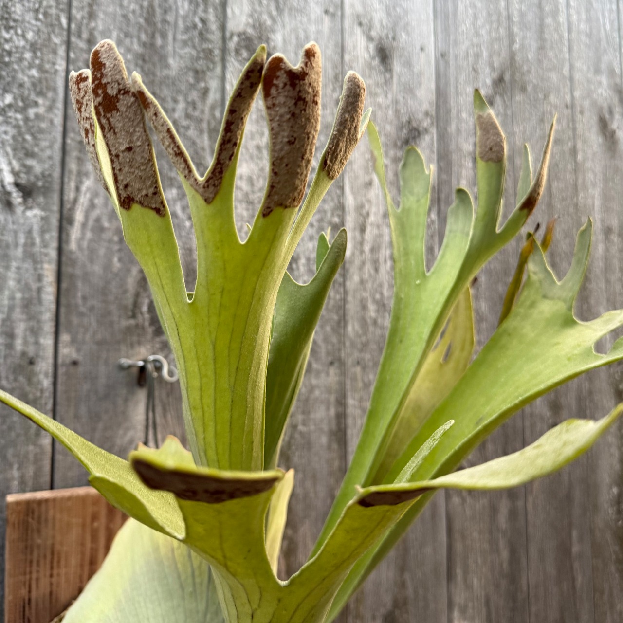 タイのチェンライのCK Pavilion さんから仕入れた、ヤマタノオロチの子株になります。幅広い胞子葉からは、見事に分岐する特徴ある大株に成長します。