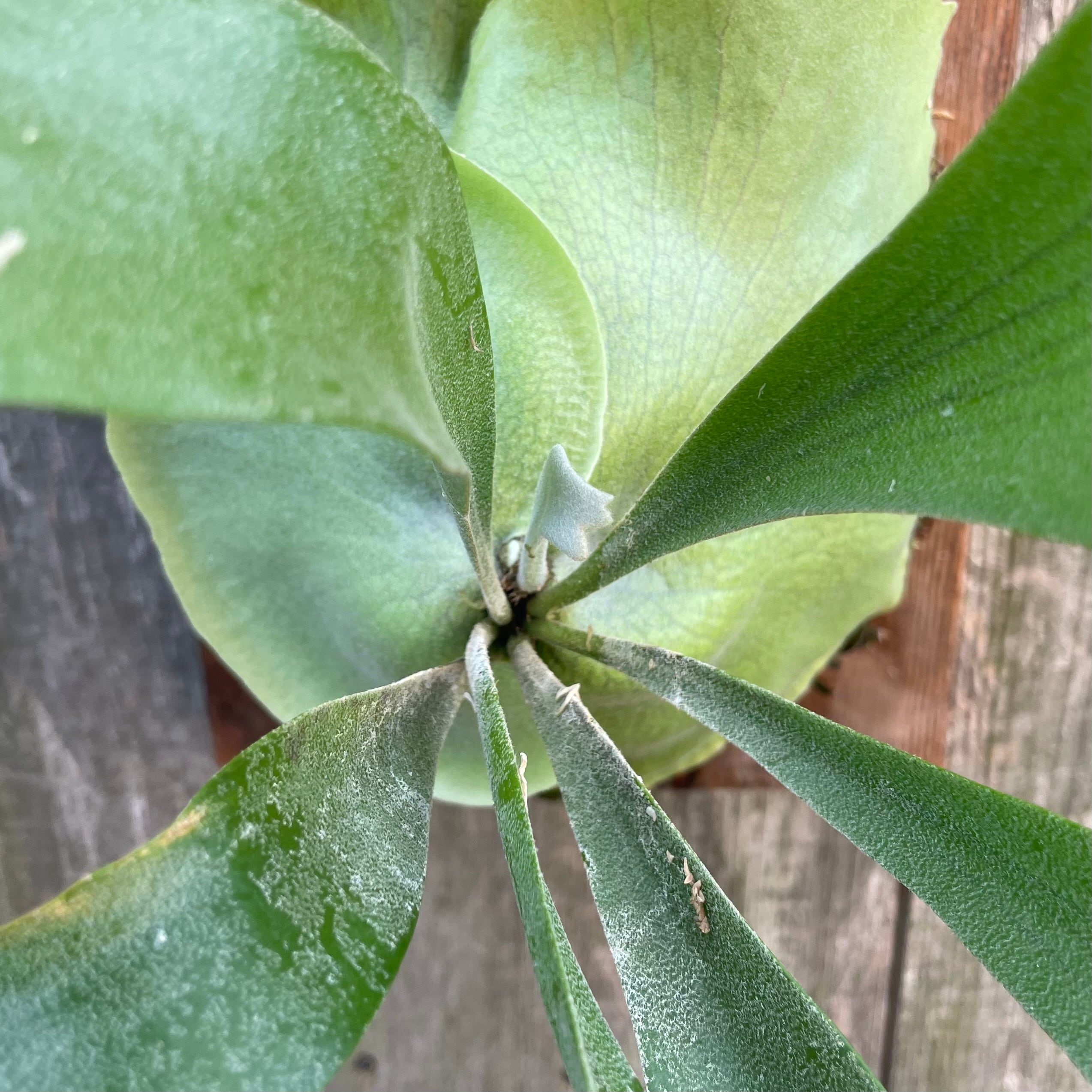 胞子をつけると葉先がカールする特徴ある一株になります。現在活発に成長しております。