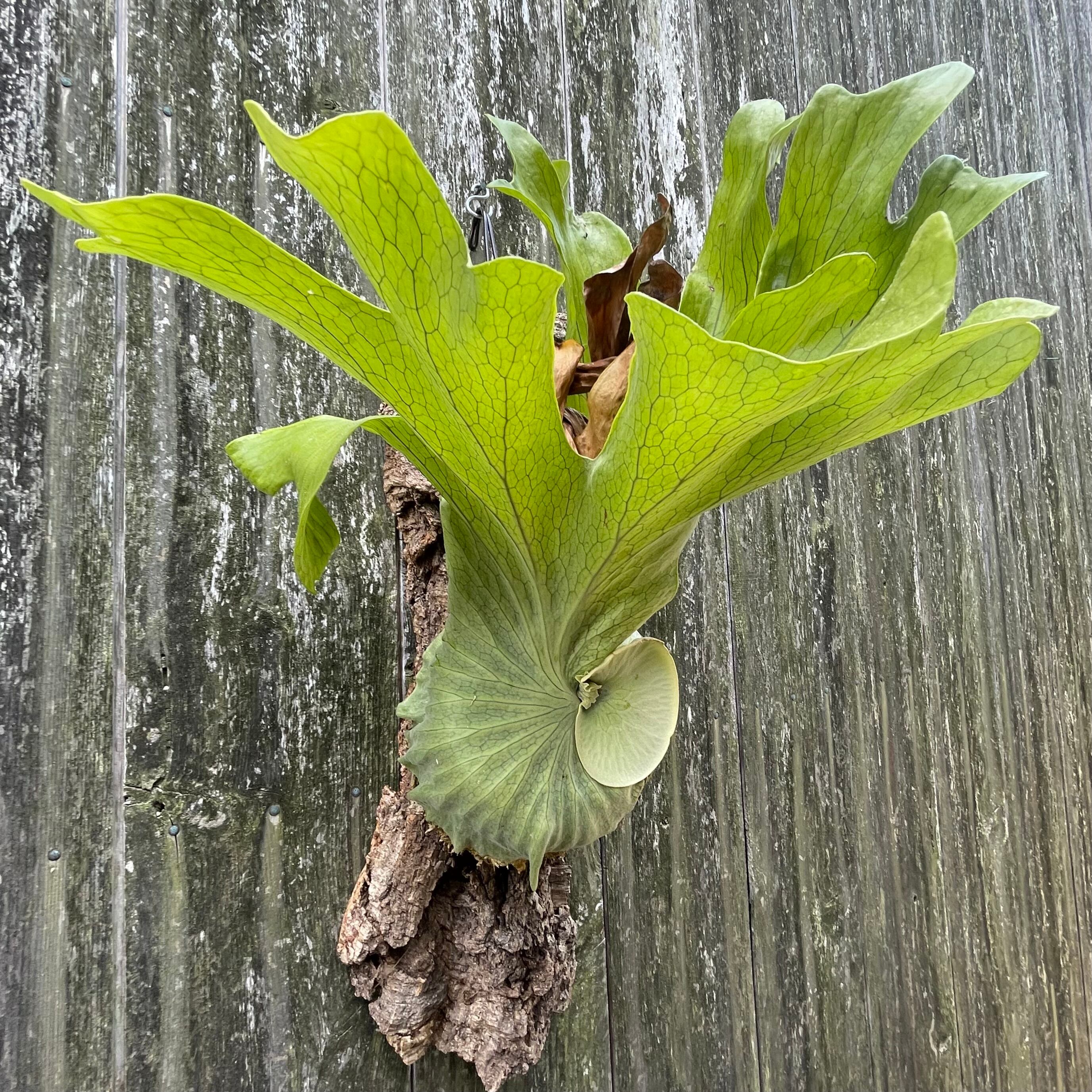 スパーバムとステマリアのハイブリッド株になります。どちらも大型になる品種で、ある程度成長しないと胞子葉を出さないのも特徴です。これからの成長が楽しみではないでしょうか。