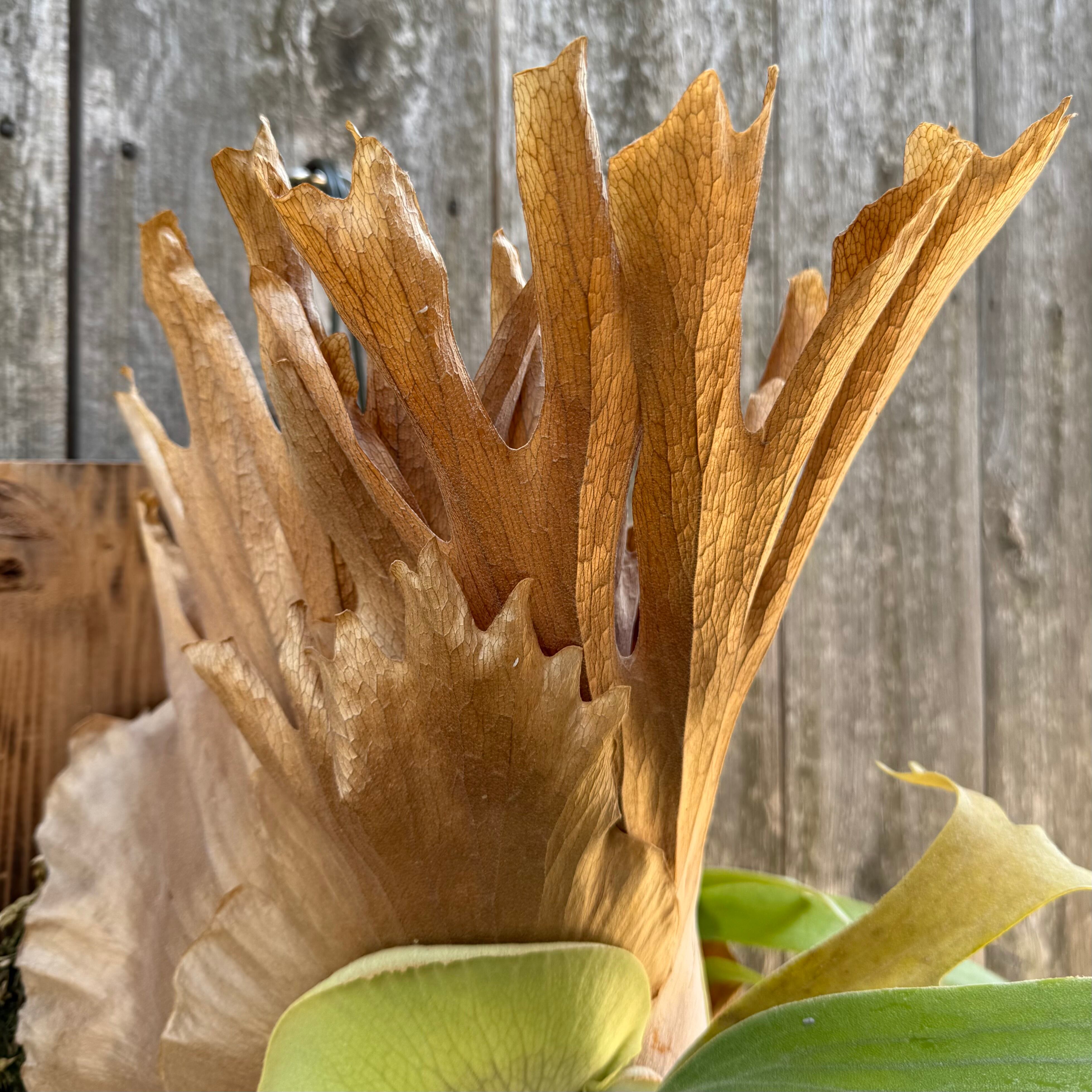 日本にほとんど入ってきていないレア品種になります。比較的ショートに育っており、胞子を付け扇状に広がった胞子葉は見事です。
