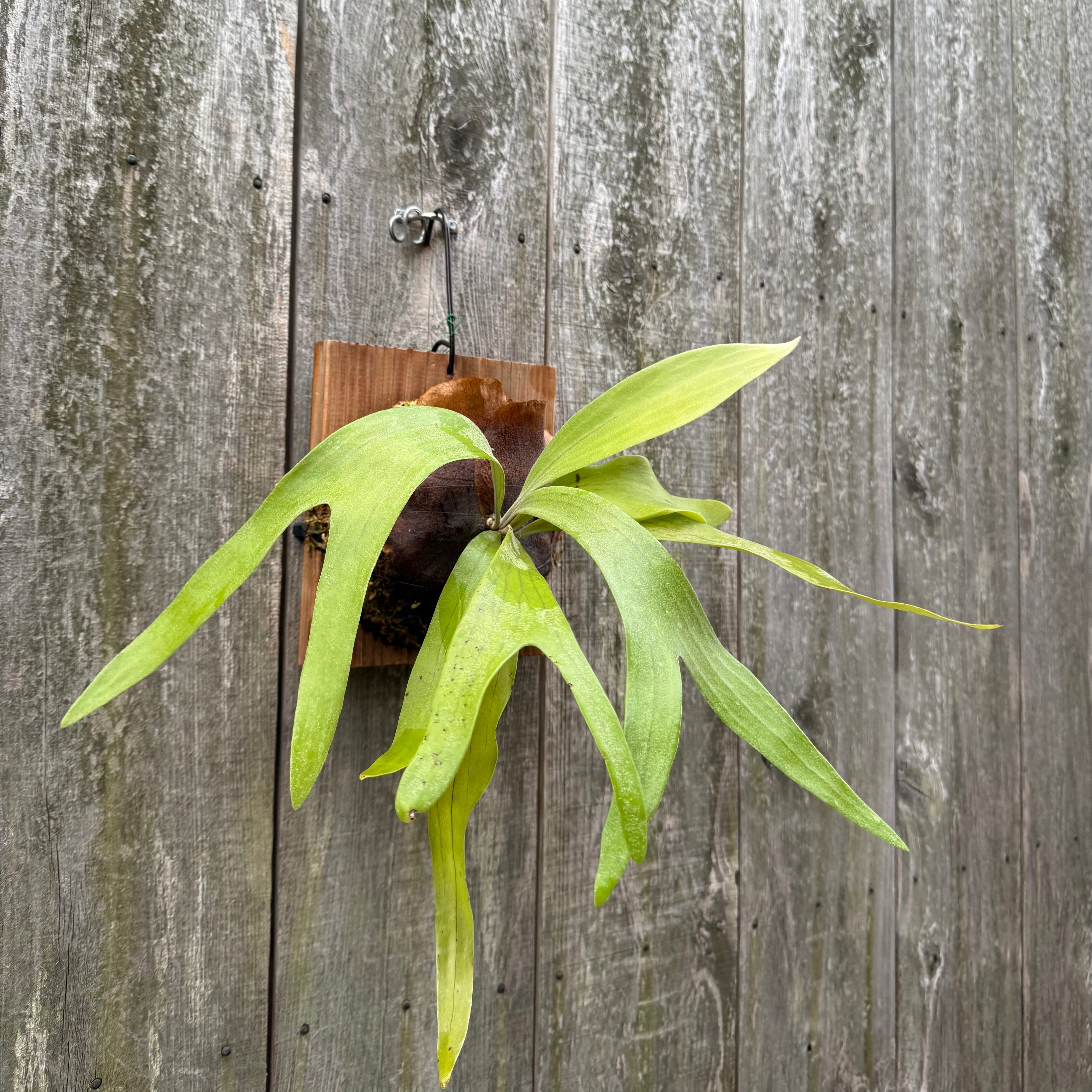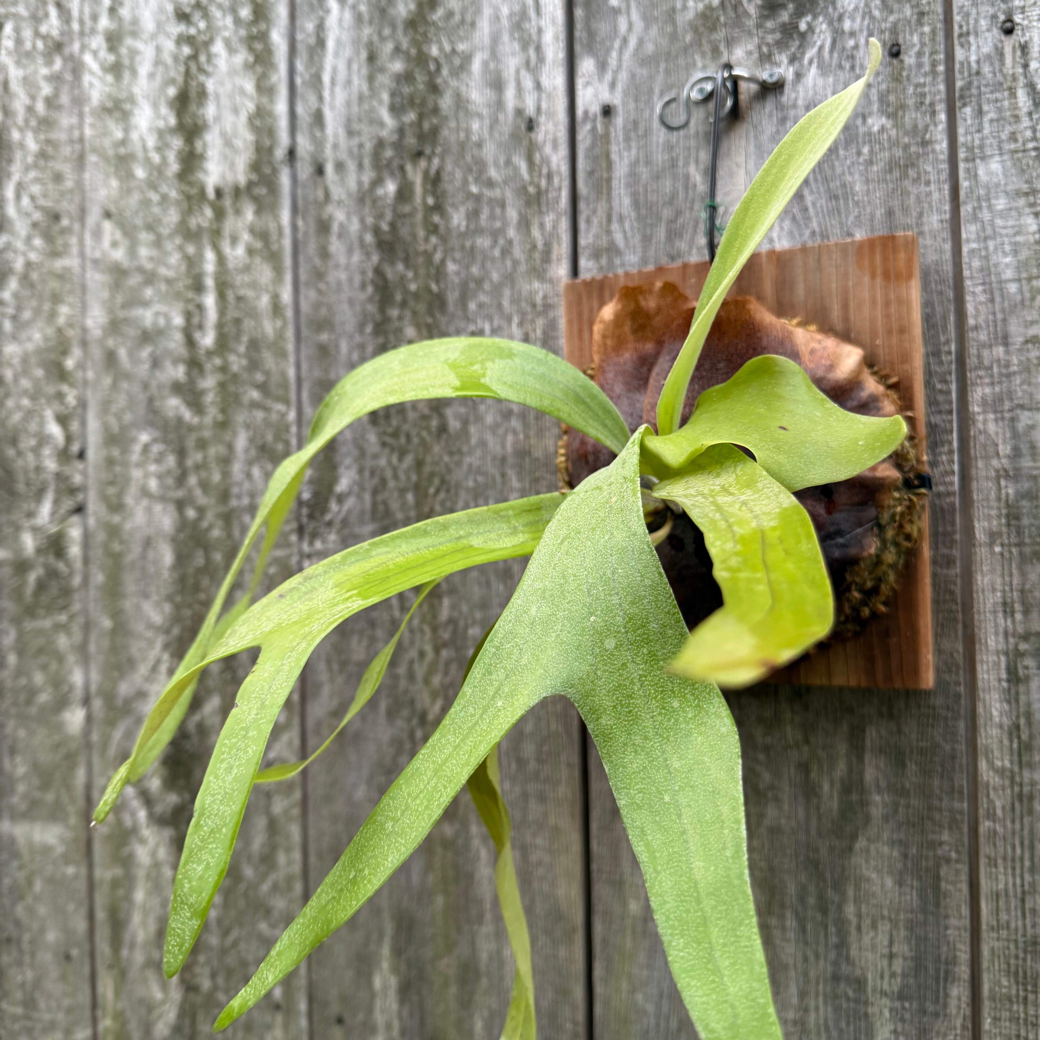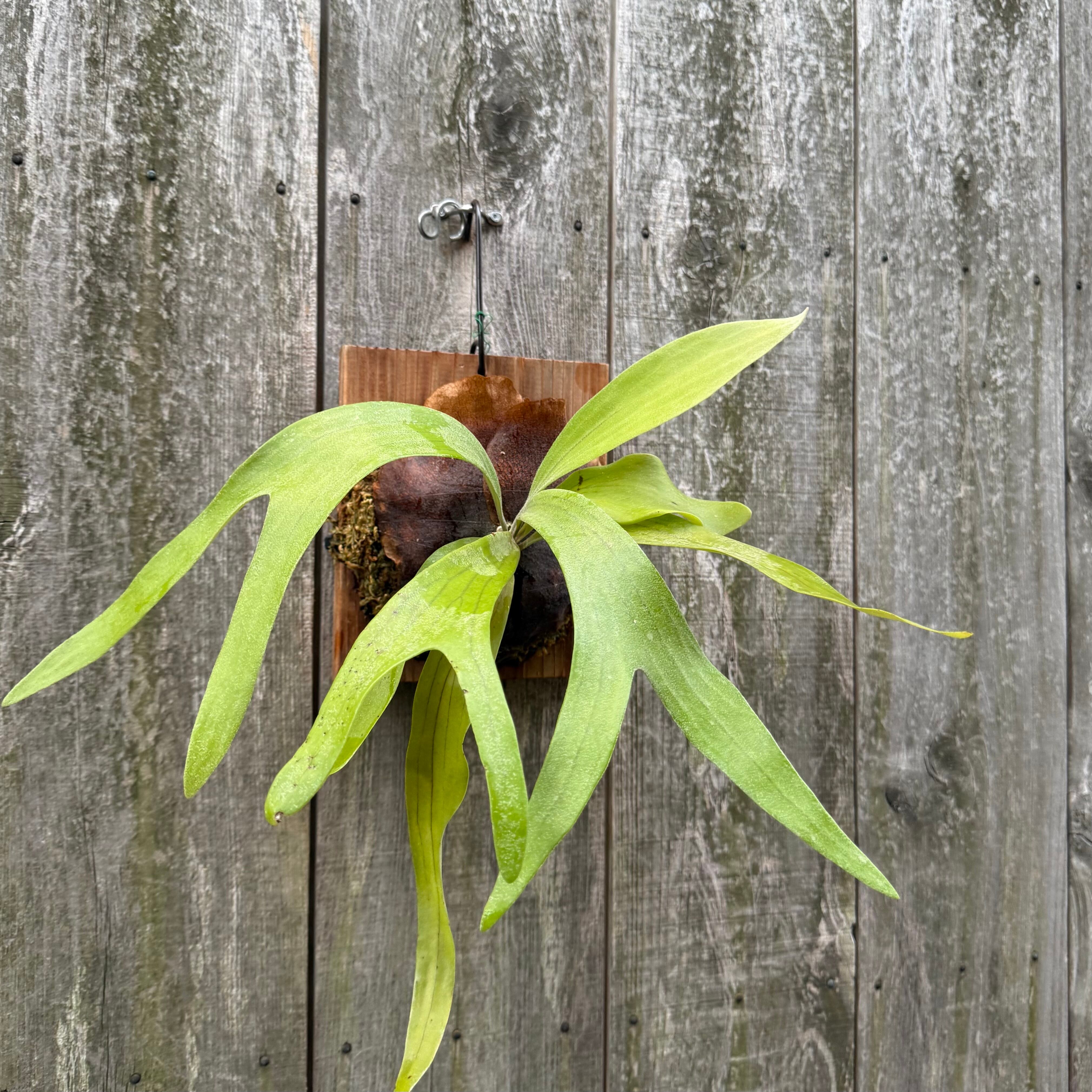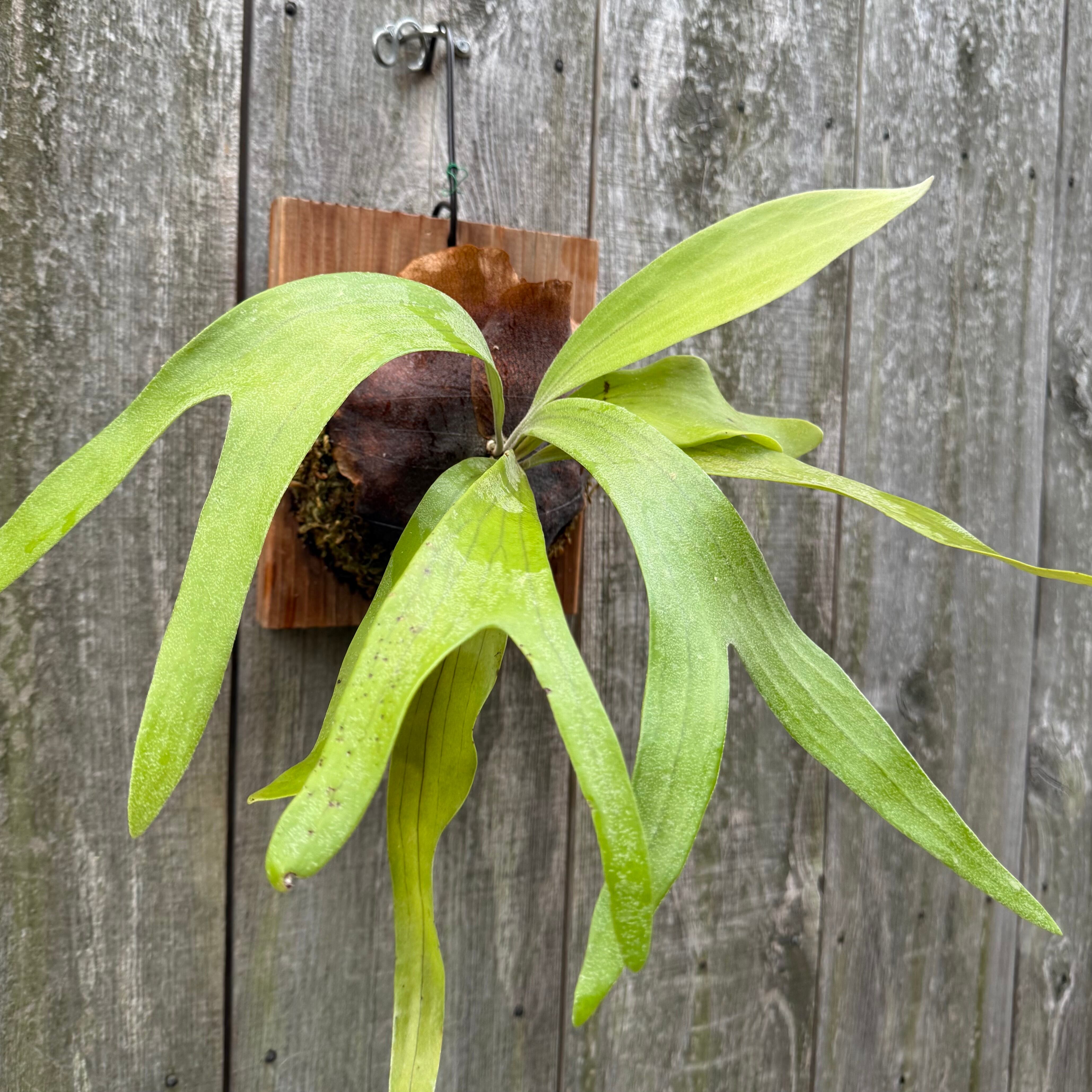 上向に伸びてから垂れる胞子葉は、優雅で美しい姿に成長します。ビフルカツムのハイブリッド品種とされ、日本ではかなり希少な品種になります。CK Pavilion から仕入れた株からの子株となります。