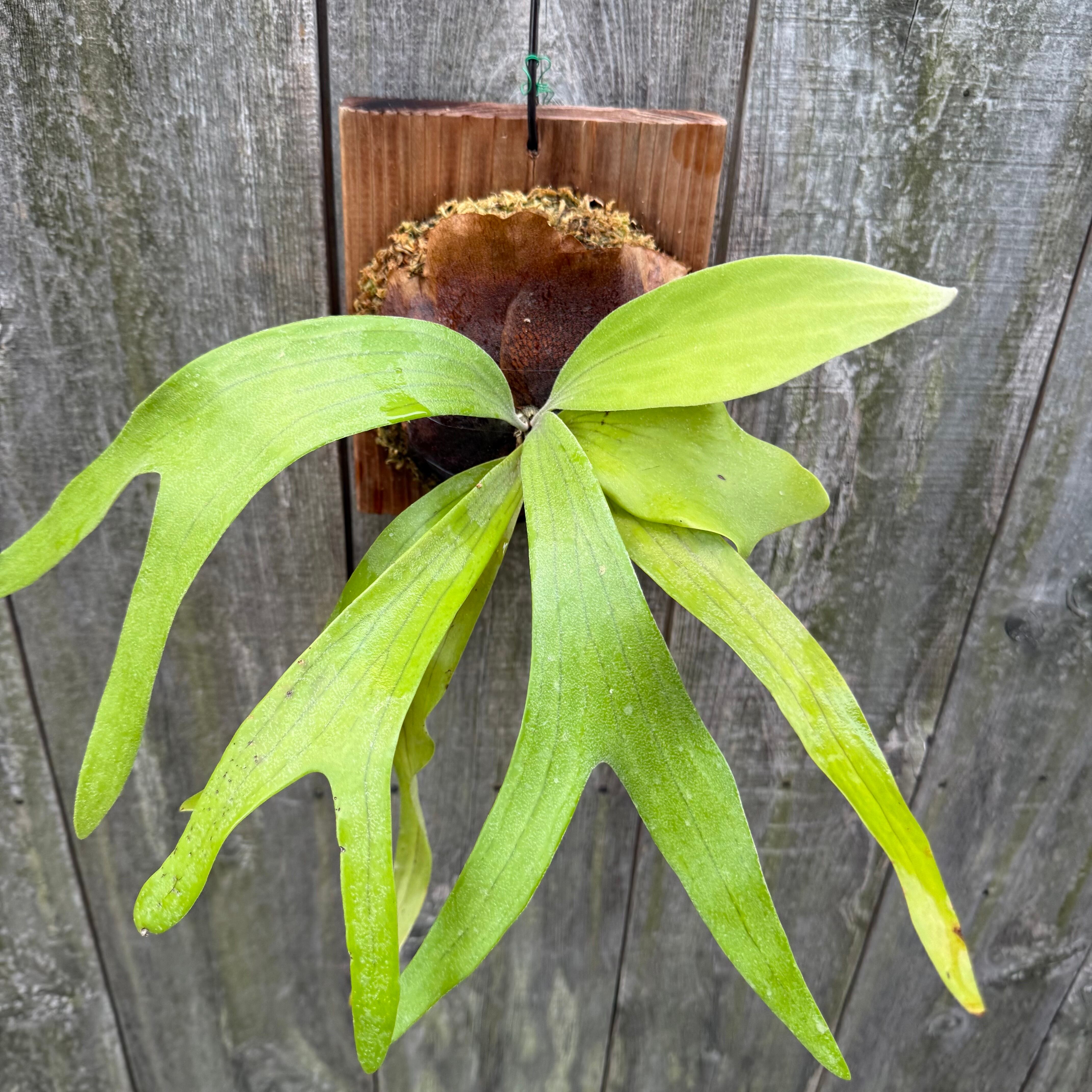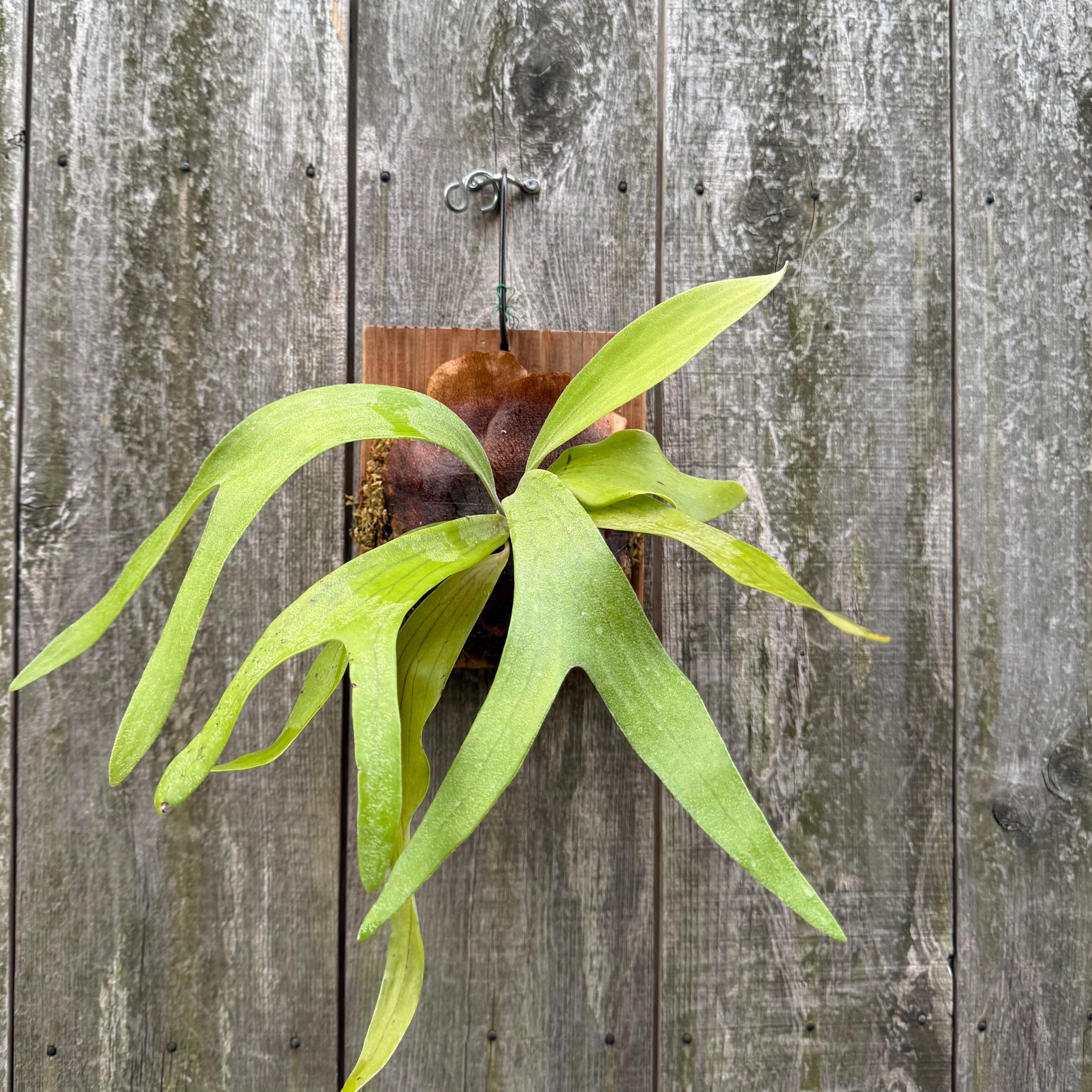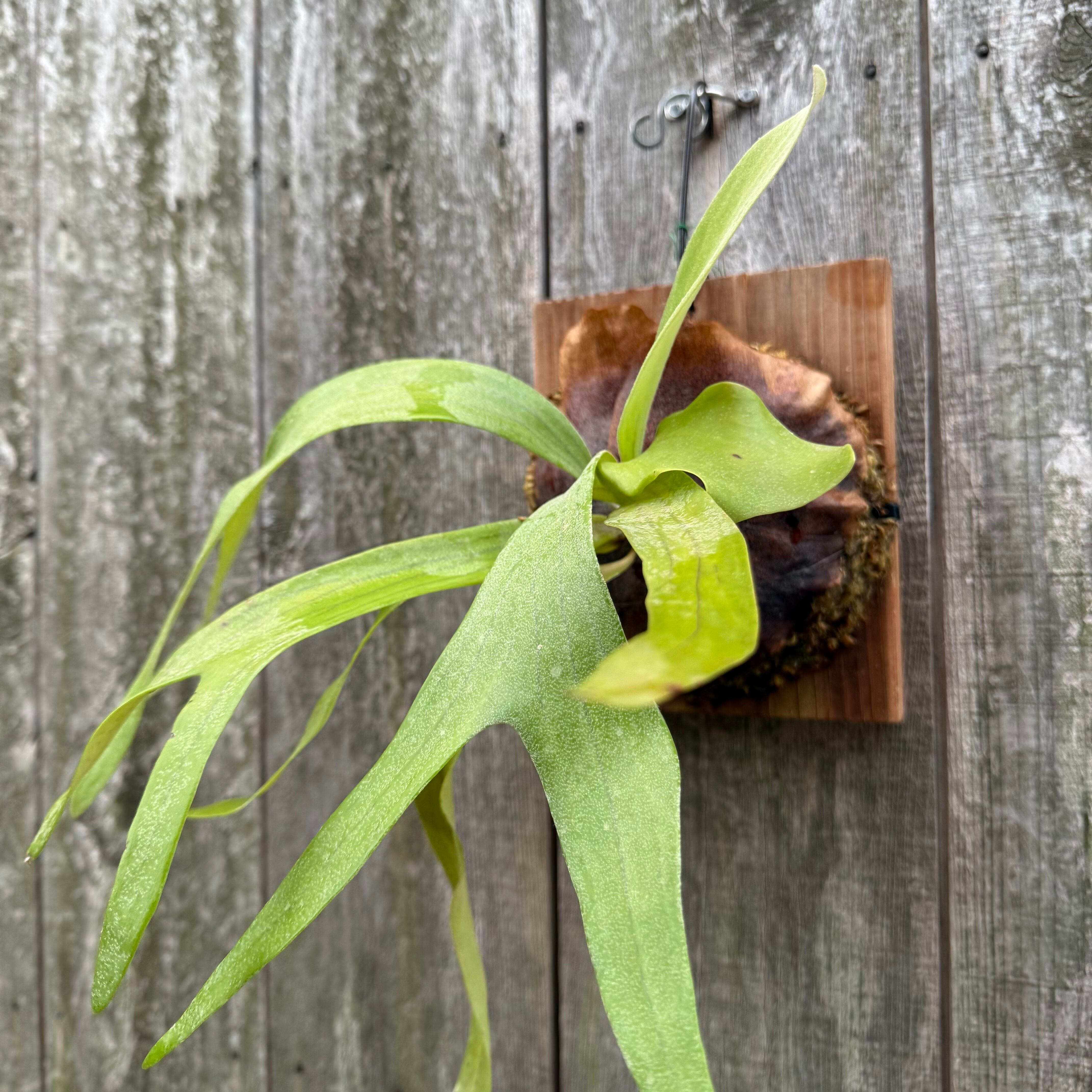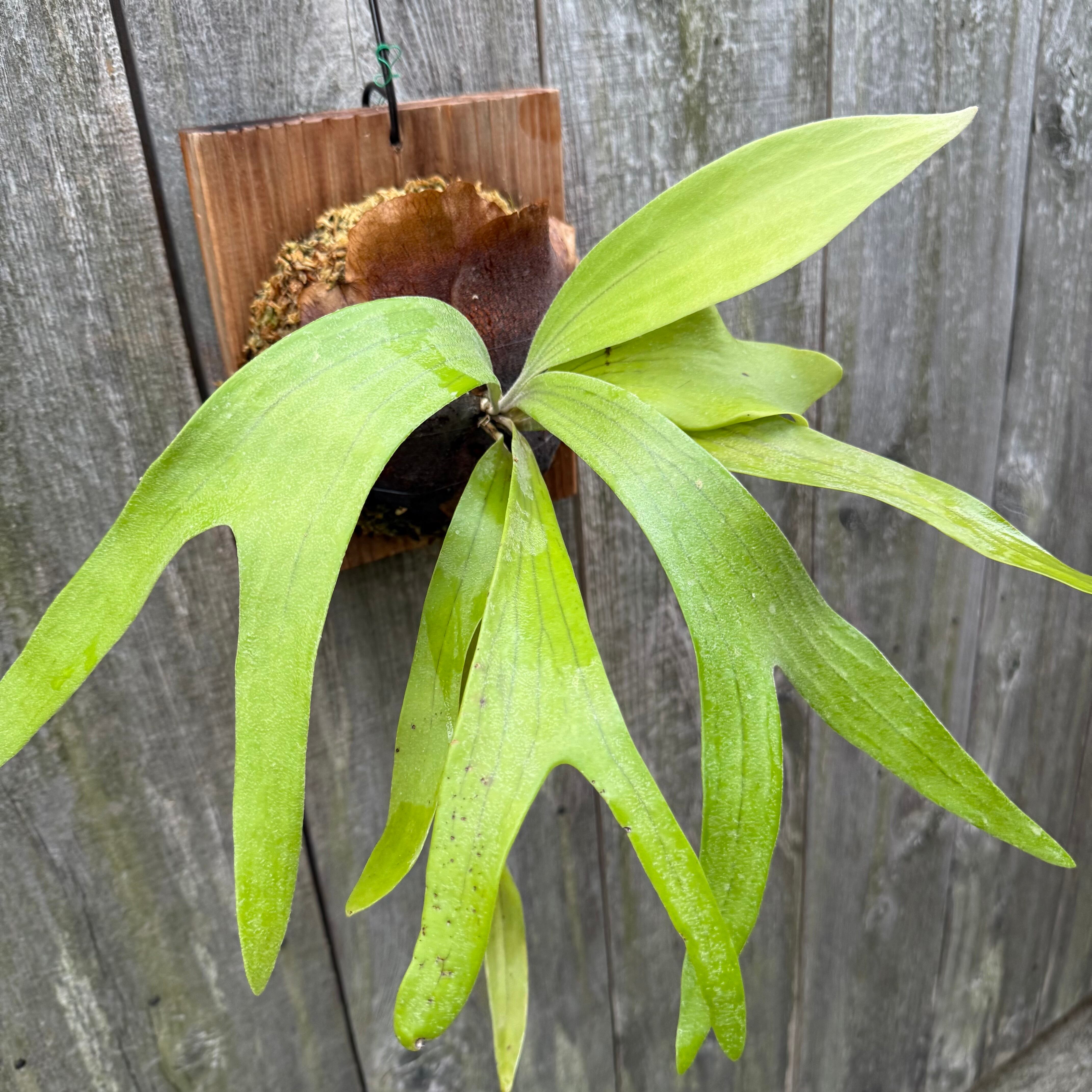 上向に伸びてから垂れる胞子葉は、優雅で美しい姿に成長します。ビフルカツムのハイブリッド品種とされ、日本ではかなり希少な品種になります。CK Pavilion から仕入れた株からの子株となります。
