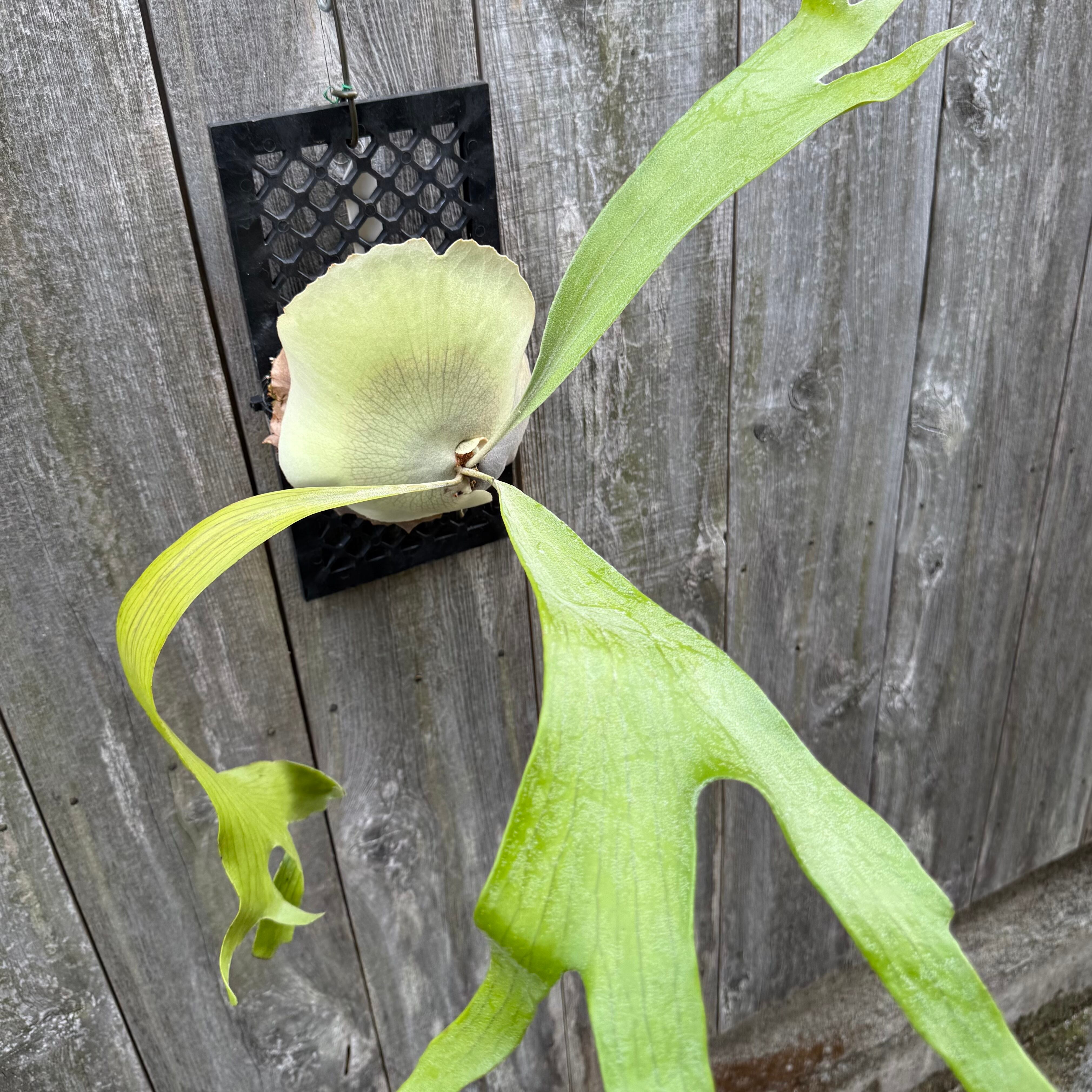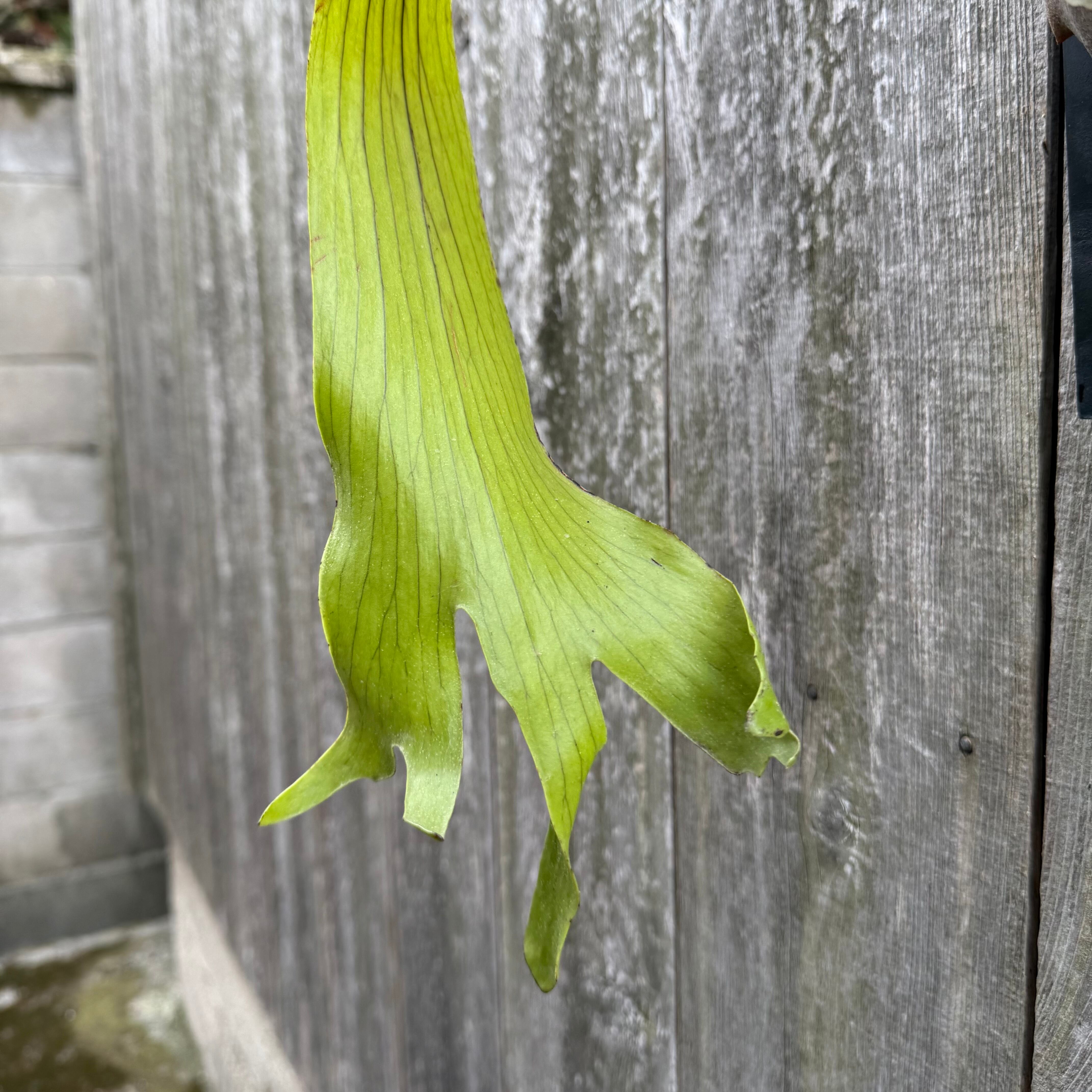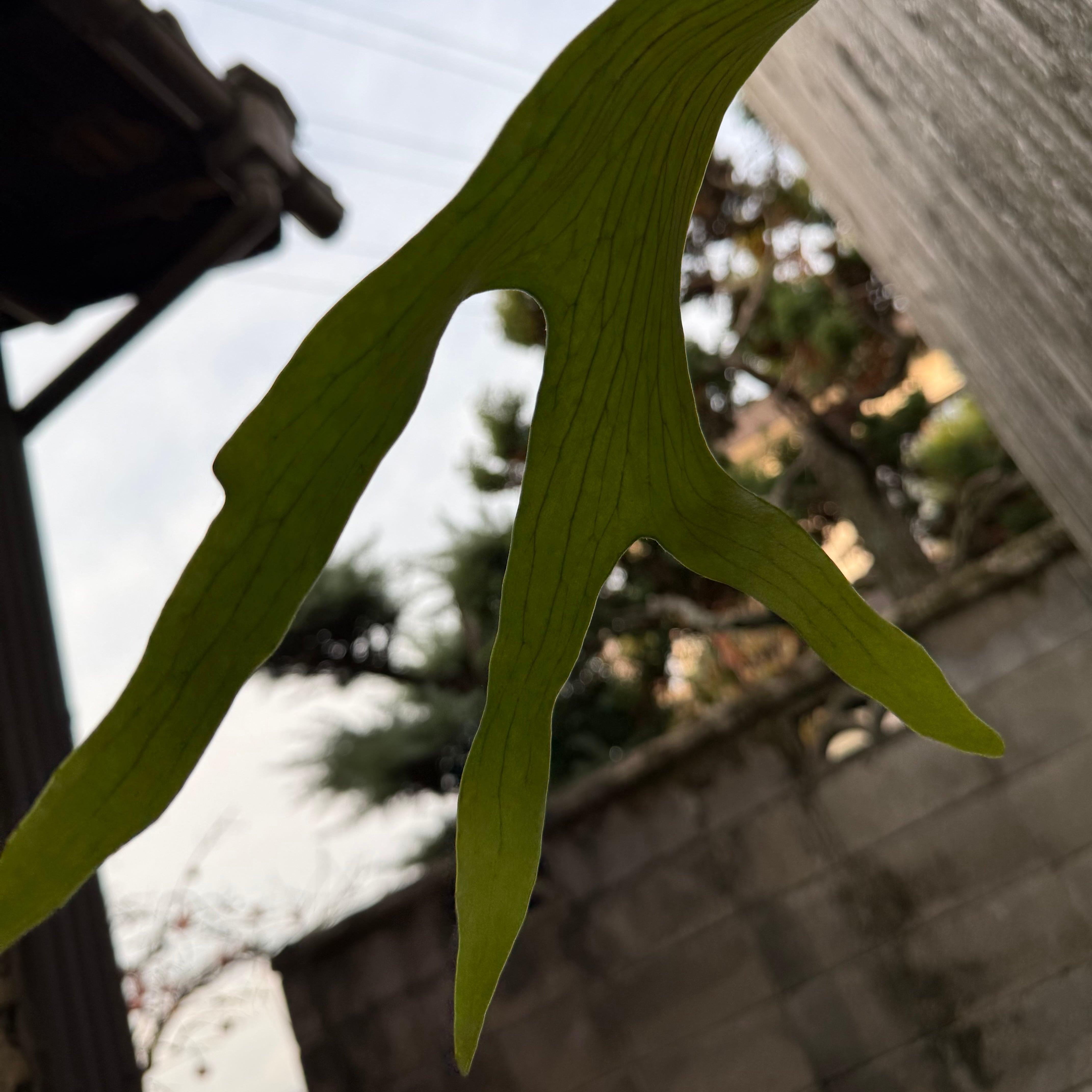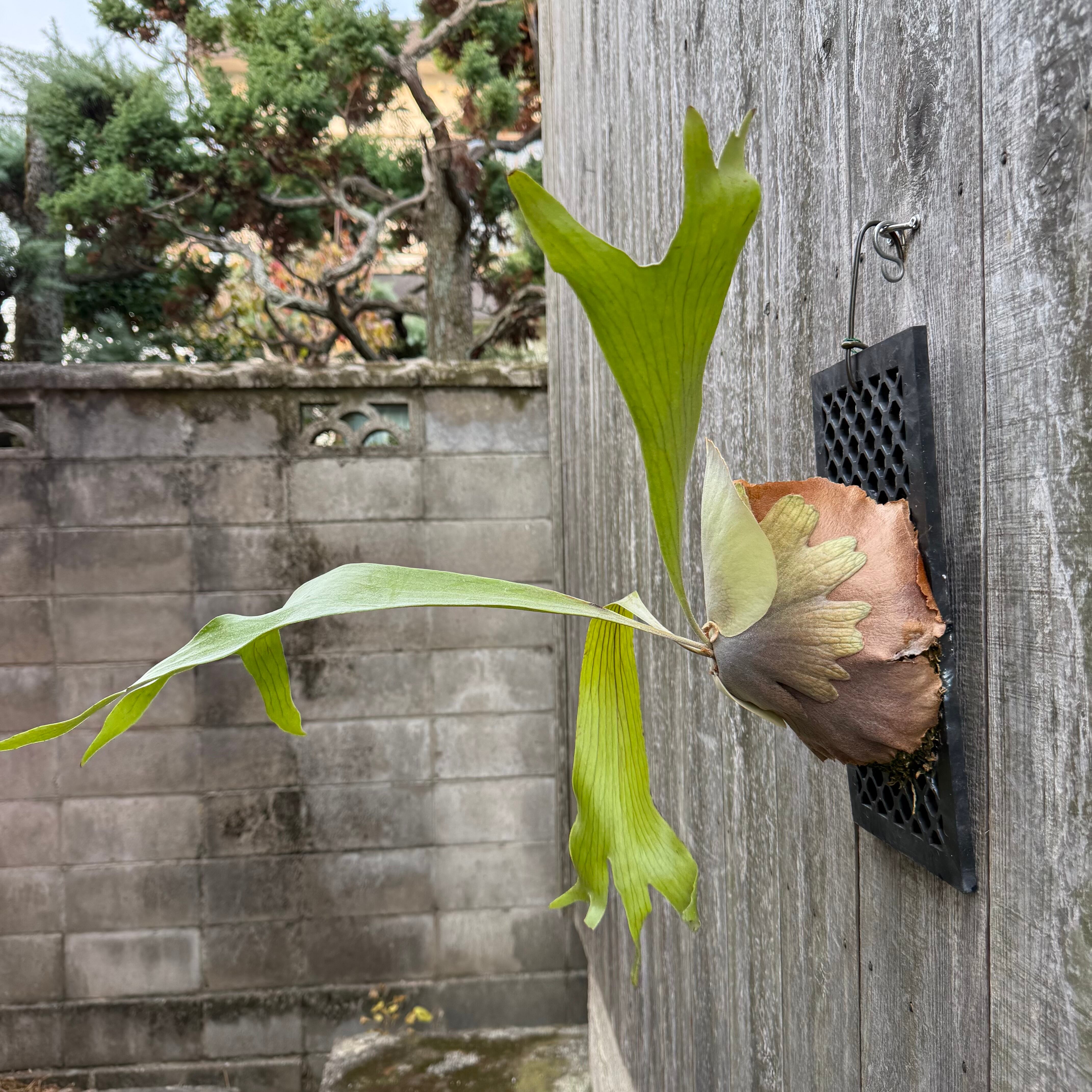 上向きに伸びて垂れる力強い胞子葉が特徴的なビカクシダになります。