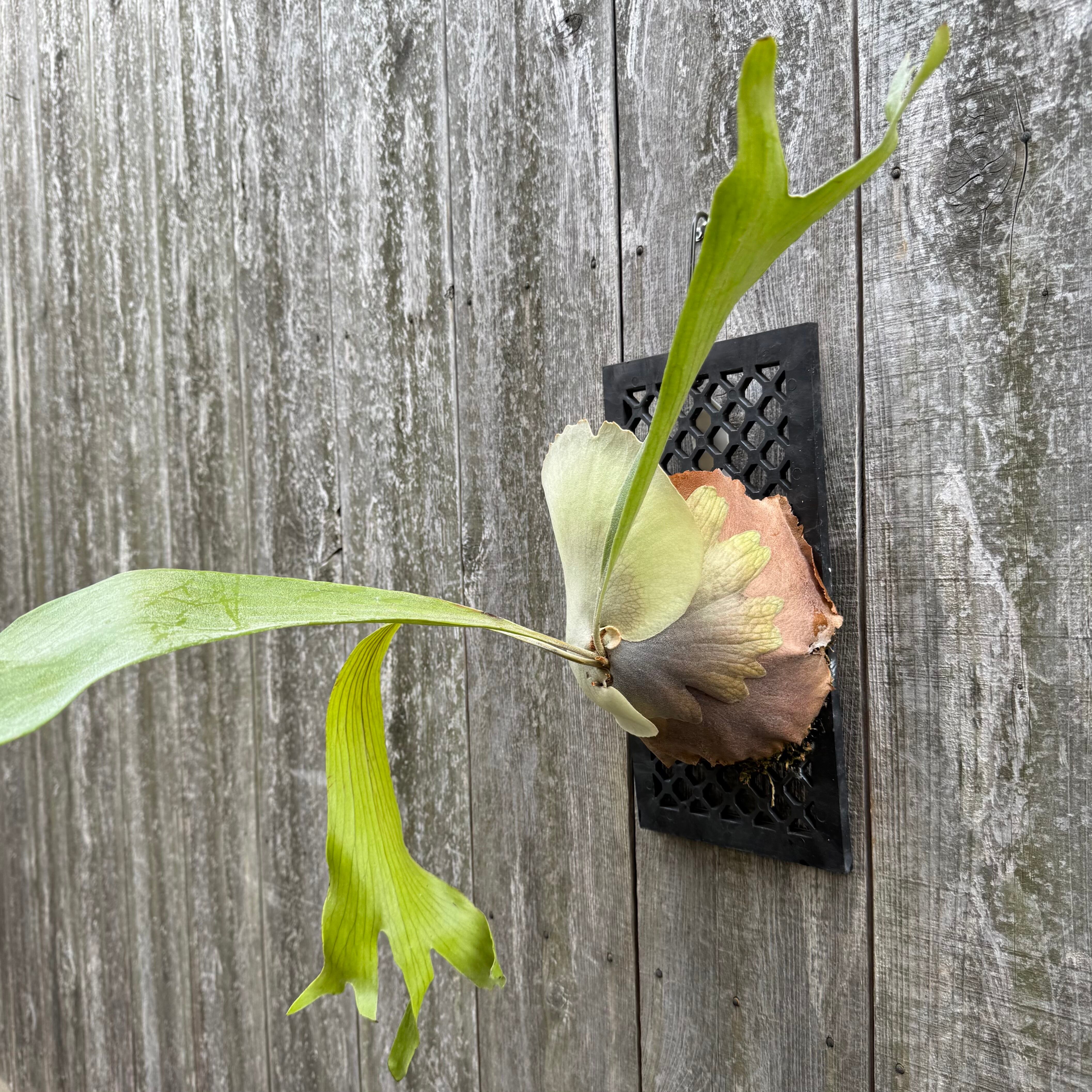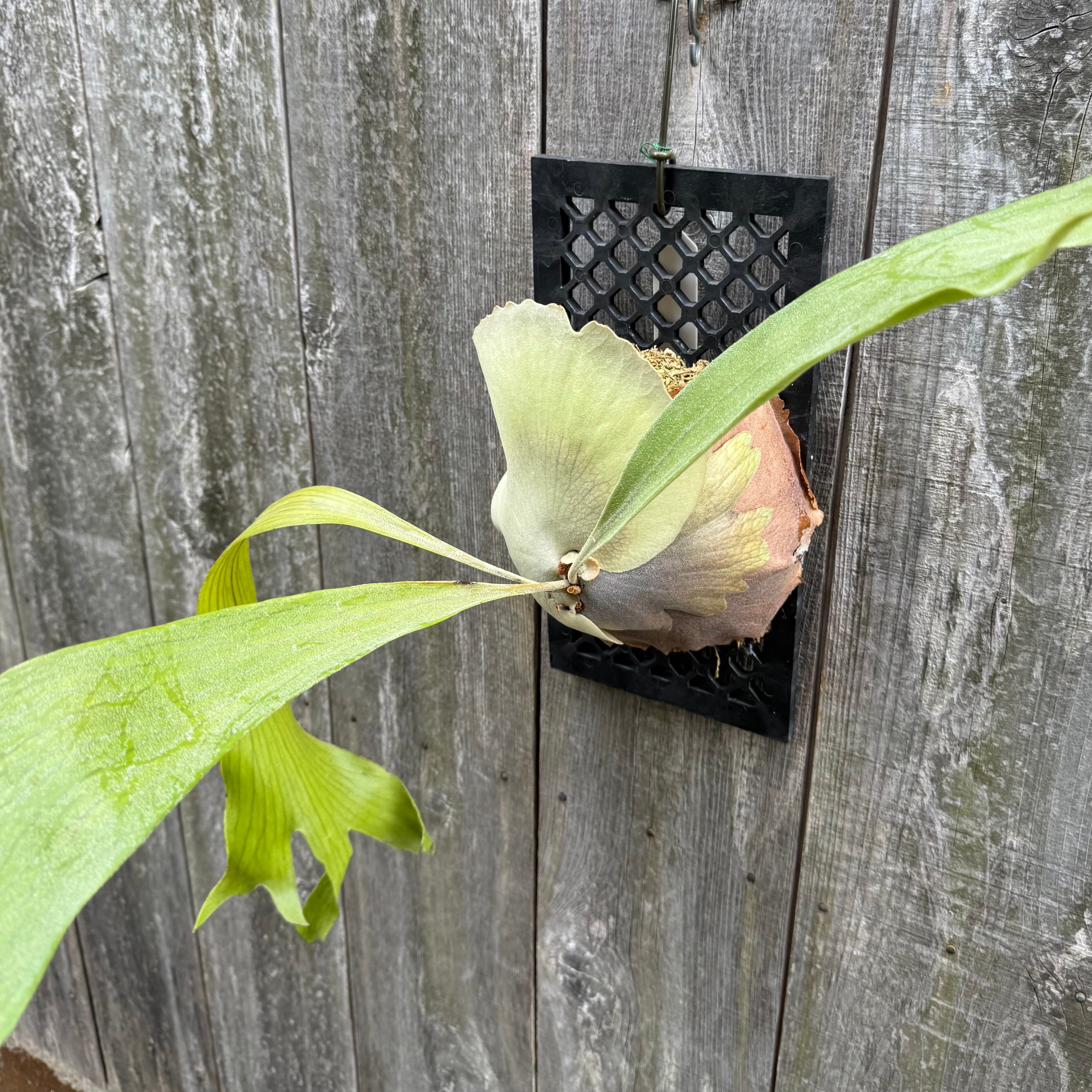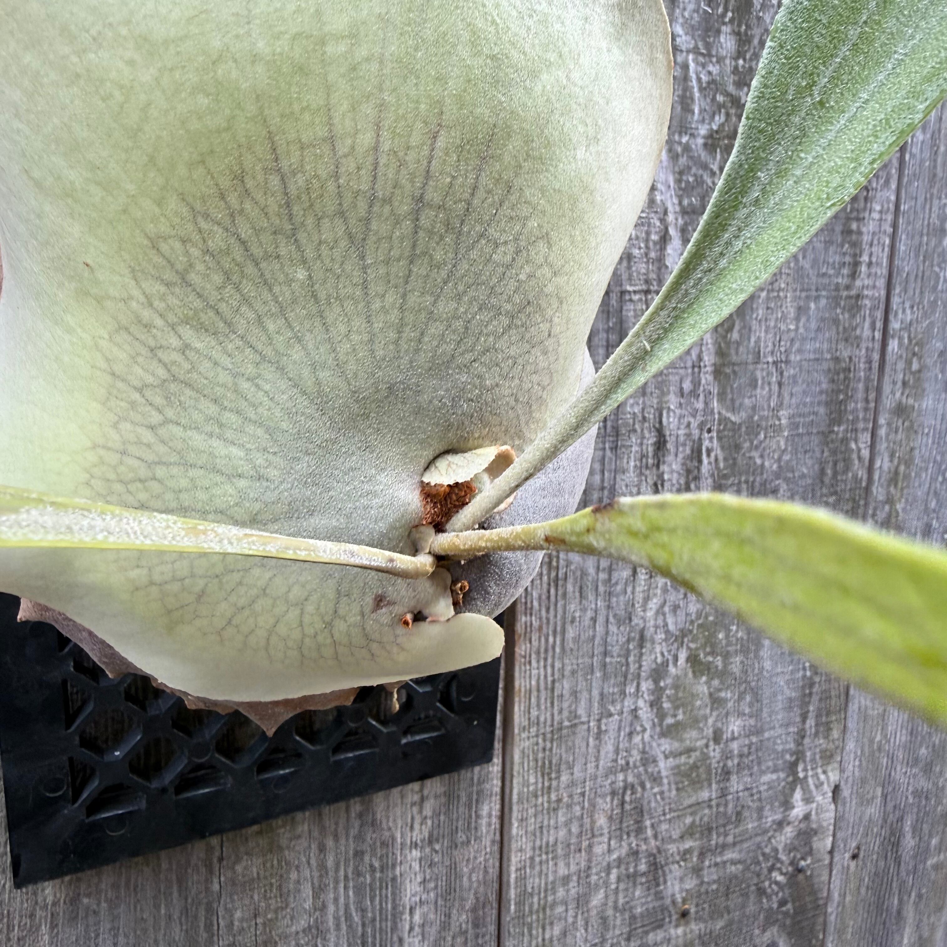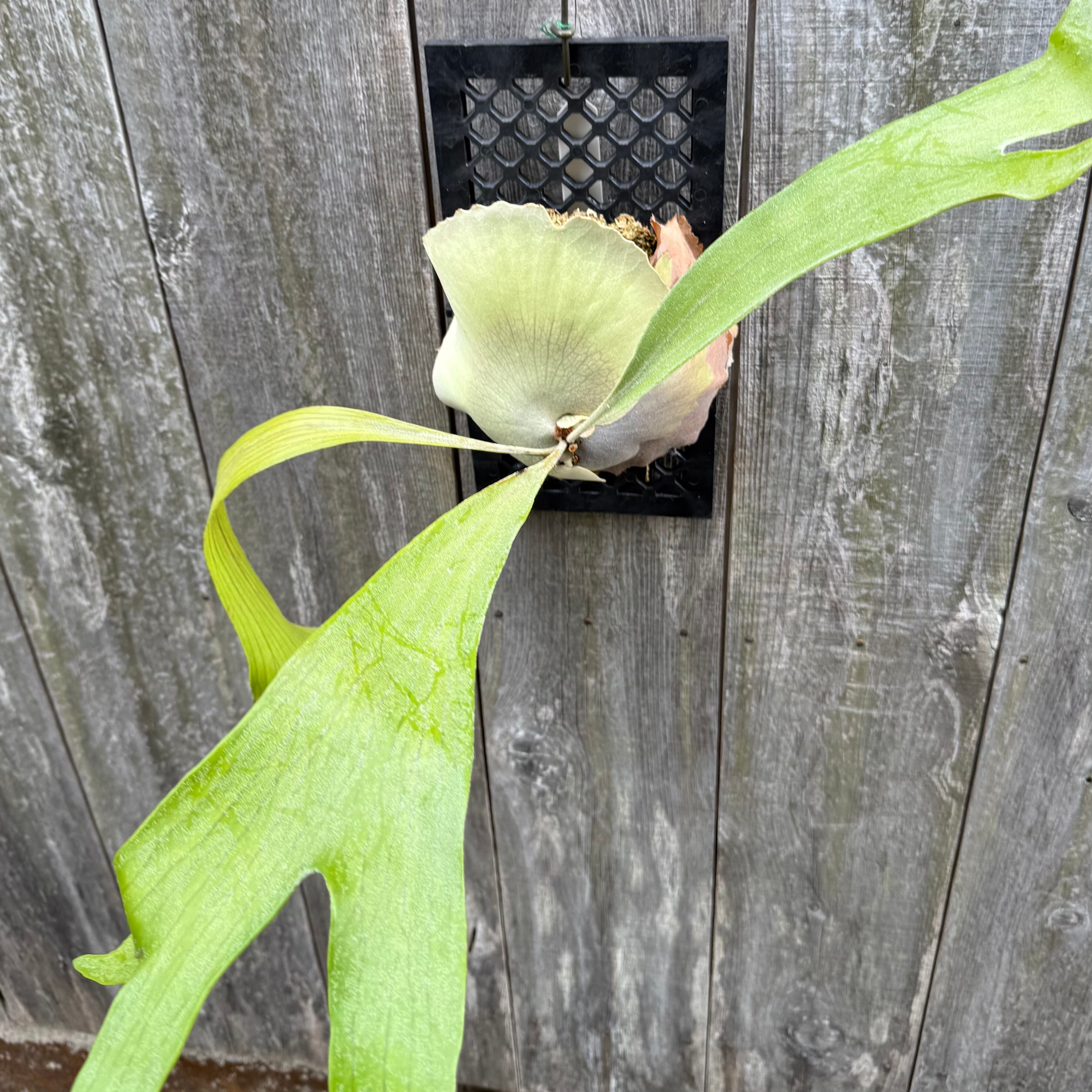 上向きに伸びて垂れる力強い胞子葉が特徴的なビカクシダになります。