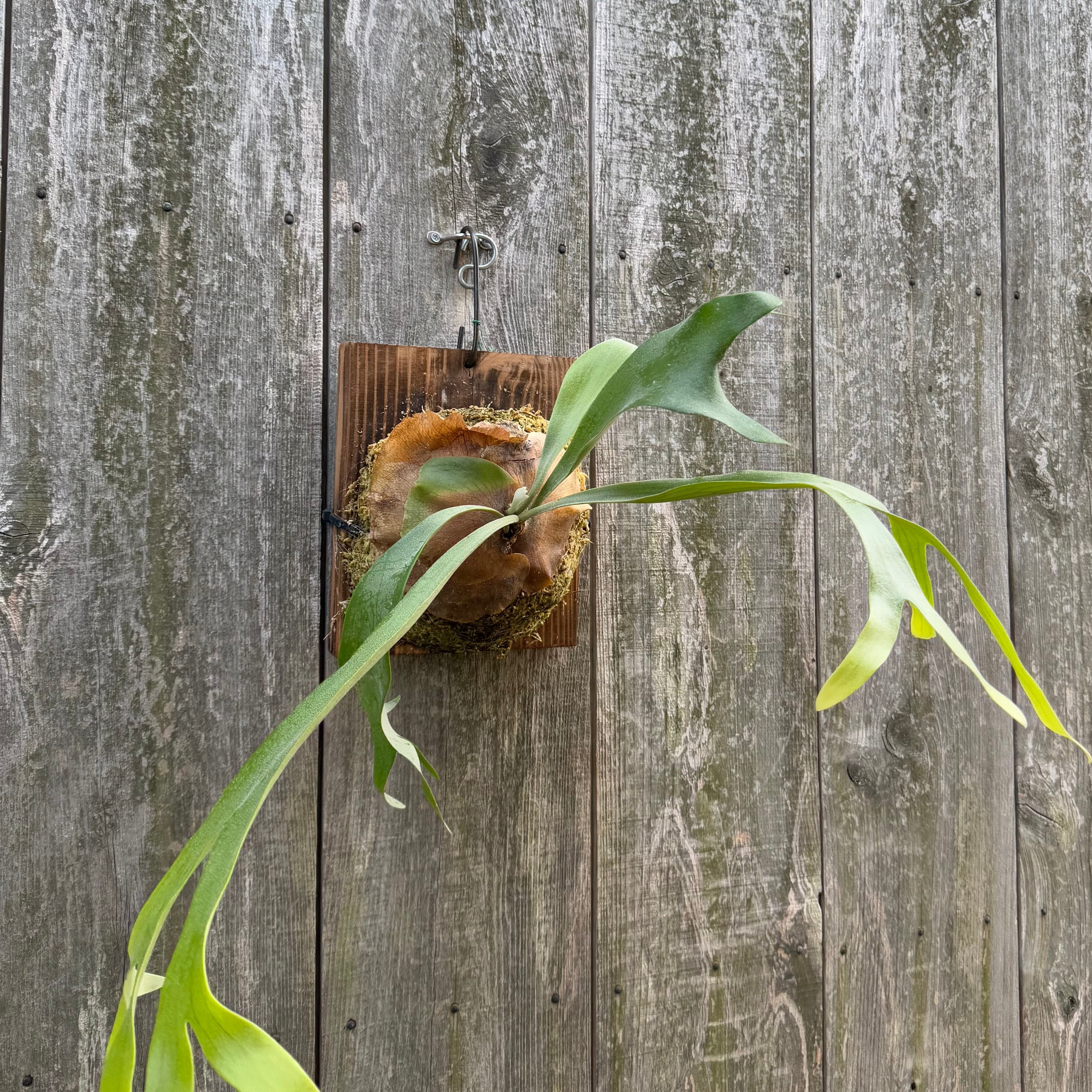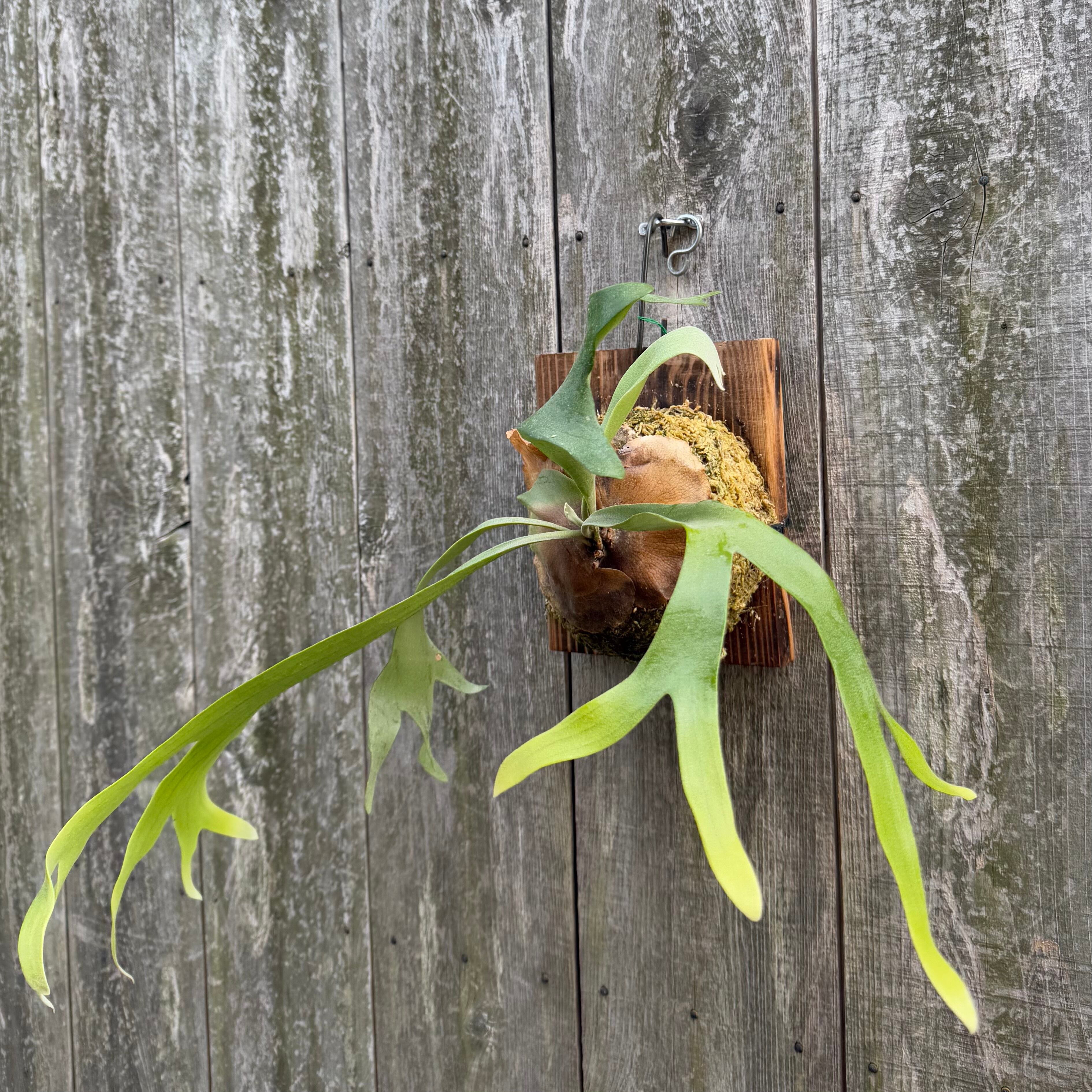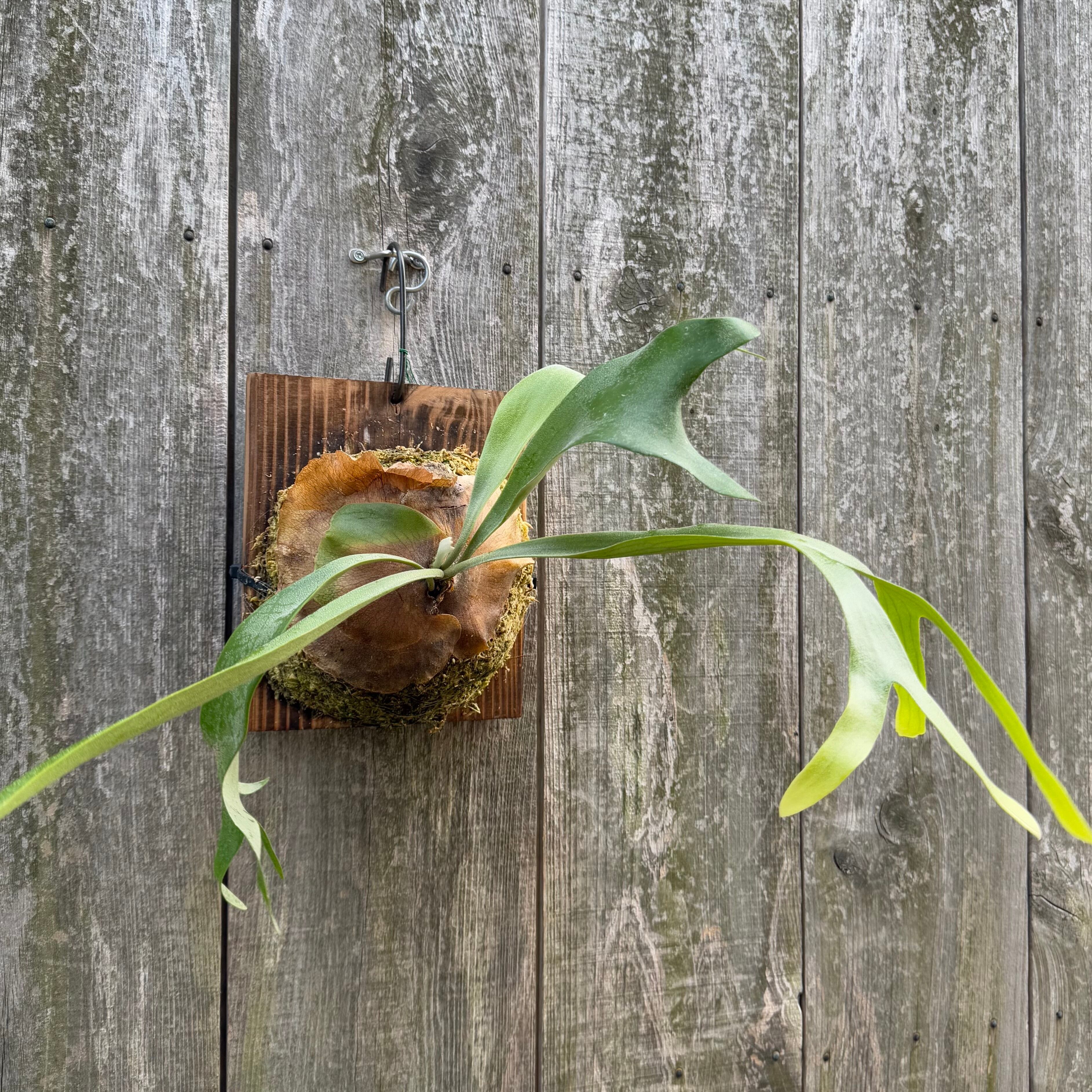 上向きに伸びて垂れる力強い胞子葉が特徴的なビカクシダになります。