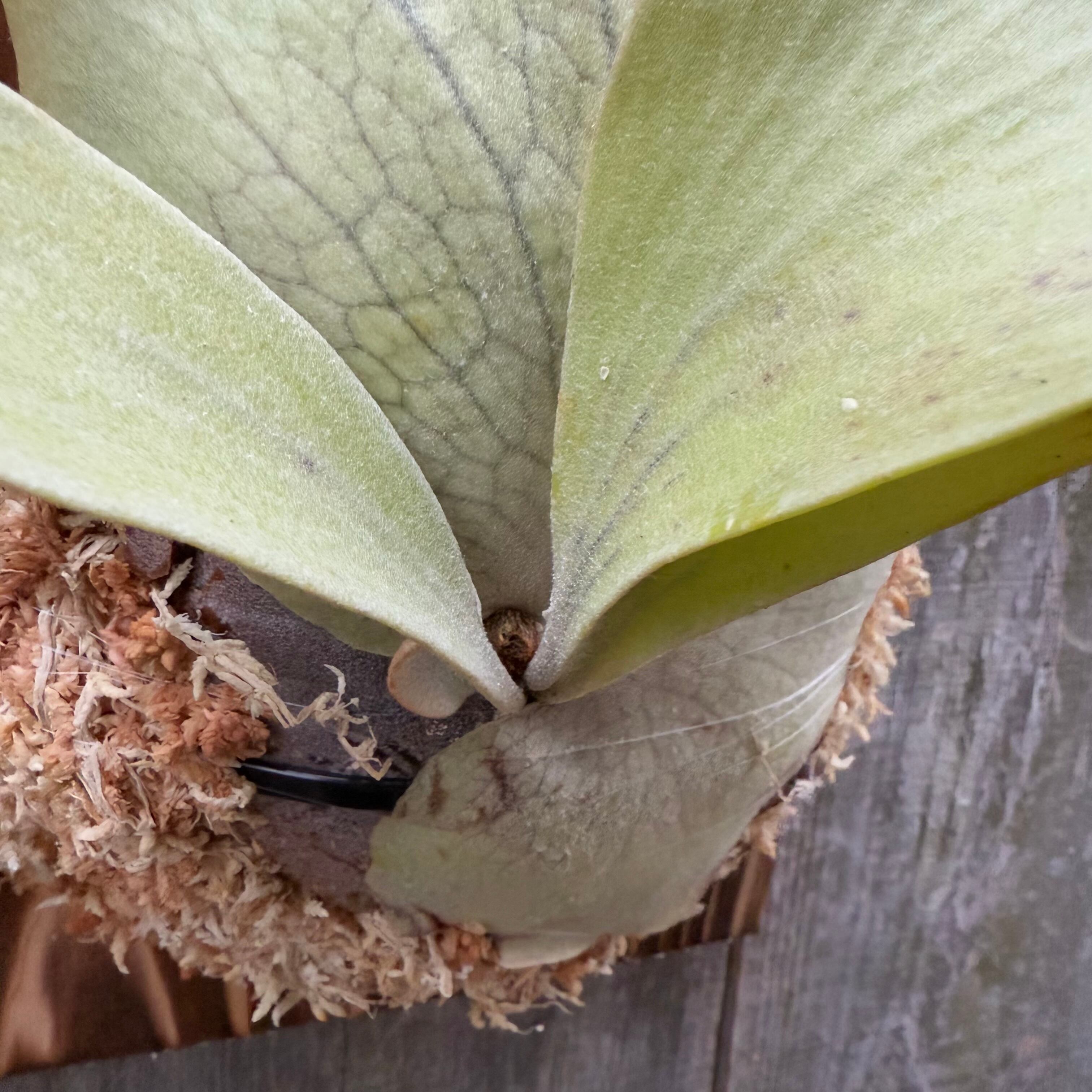 タイのナーセリーBannaさんから譲っていただいた株からの子株となります。王冠のような貯水葉と上向に伸びる胞子葉が特徴的な一株です。