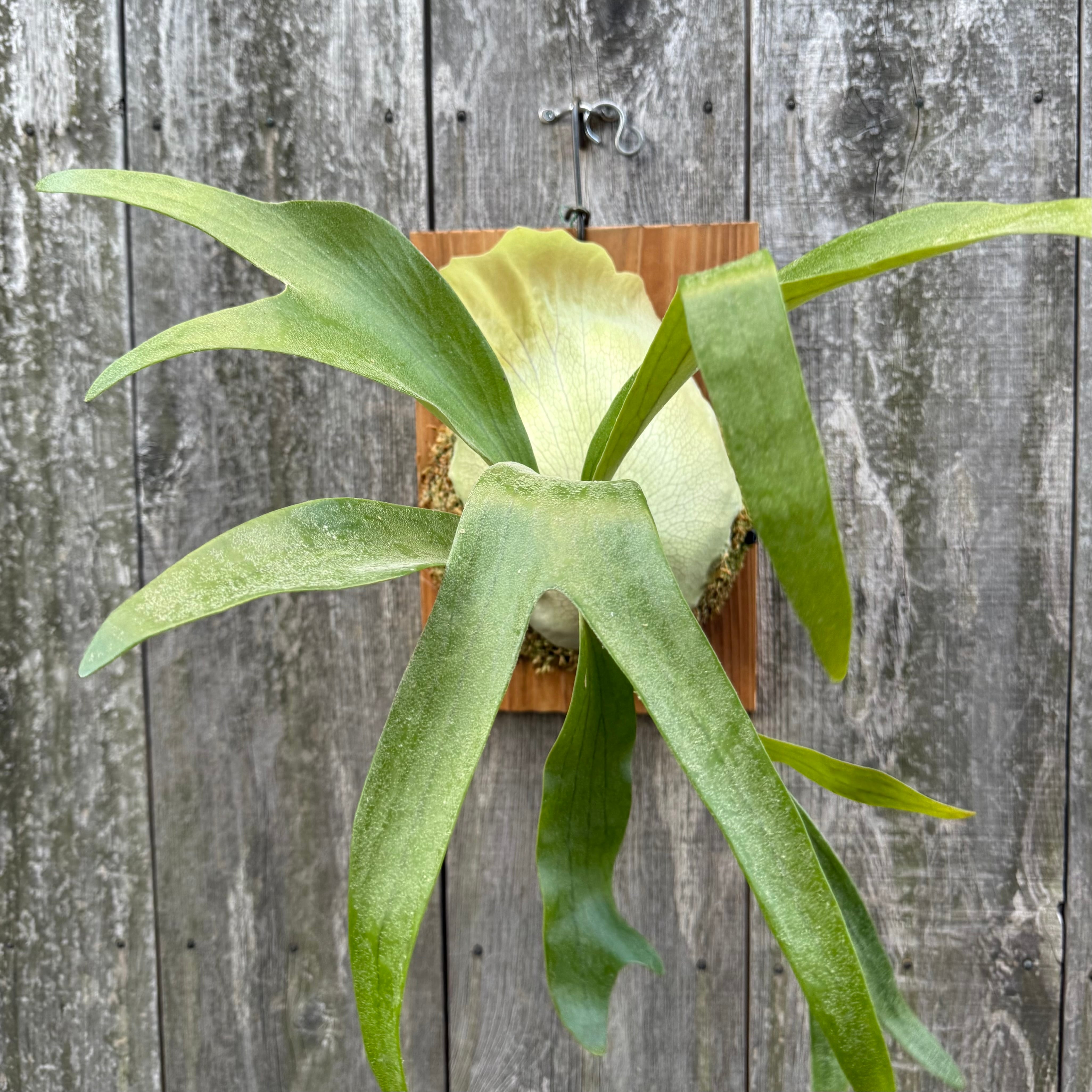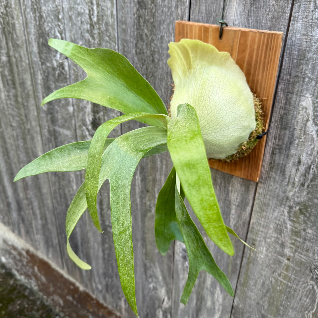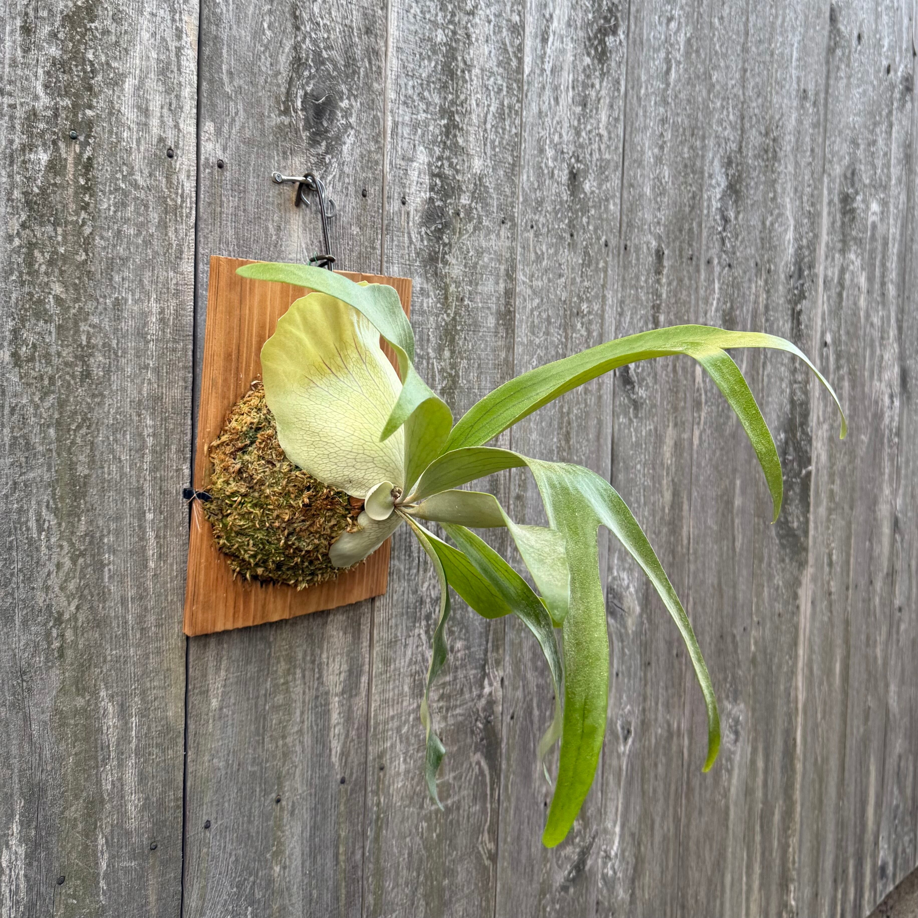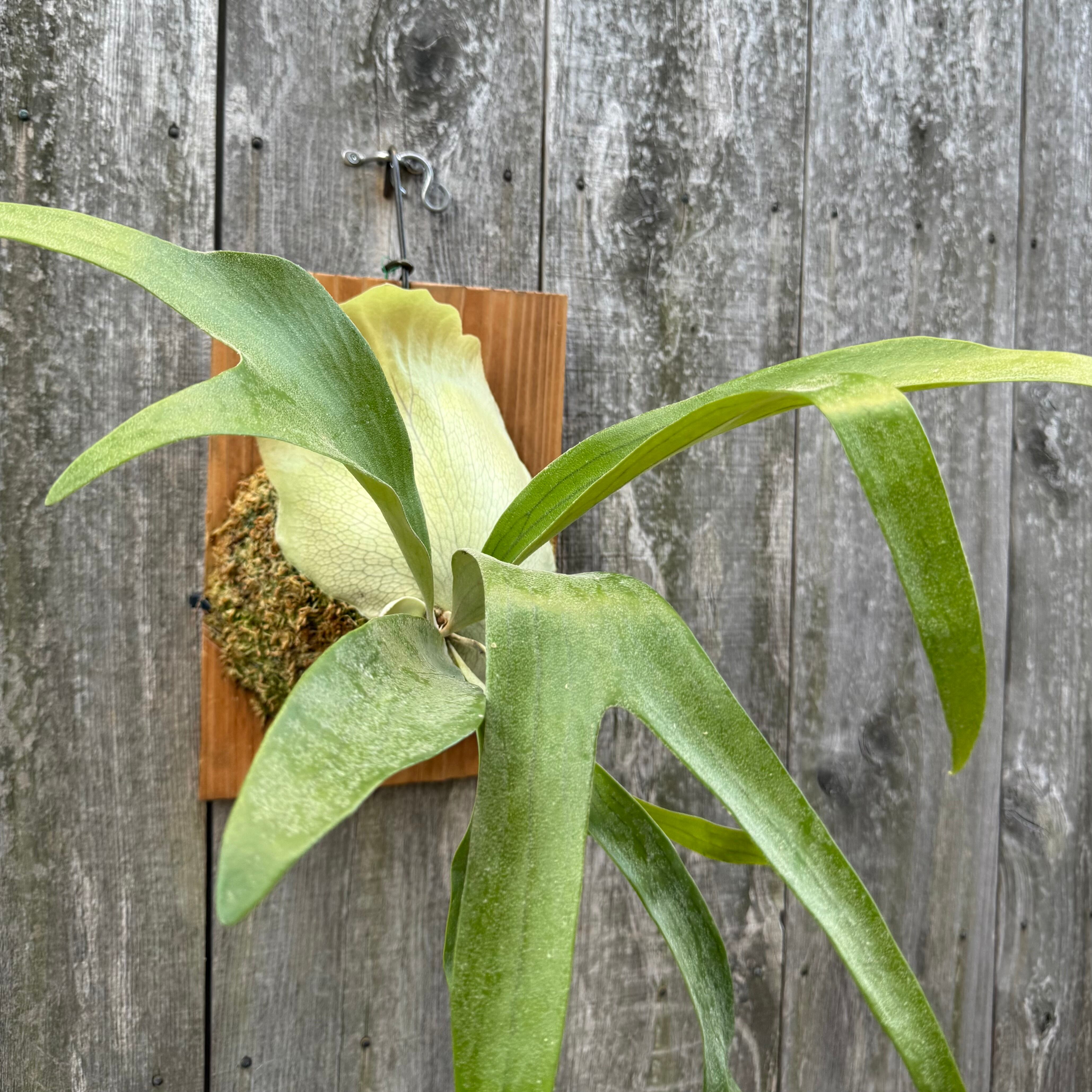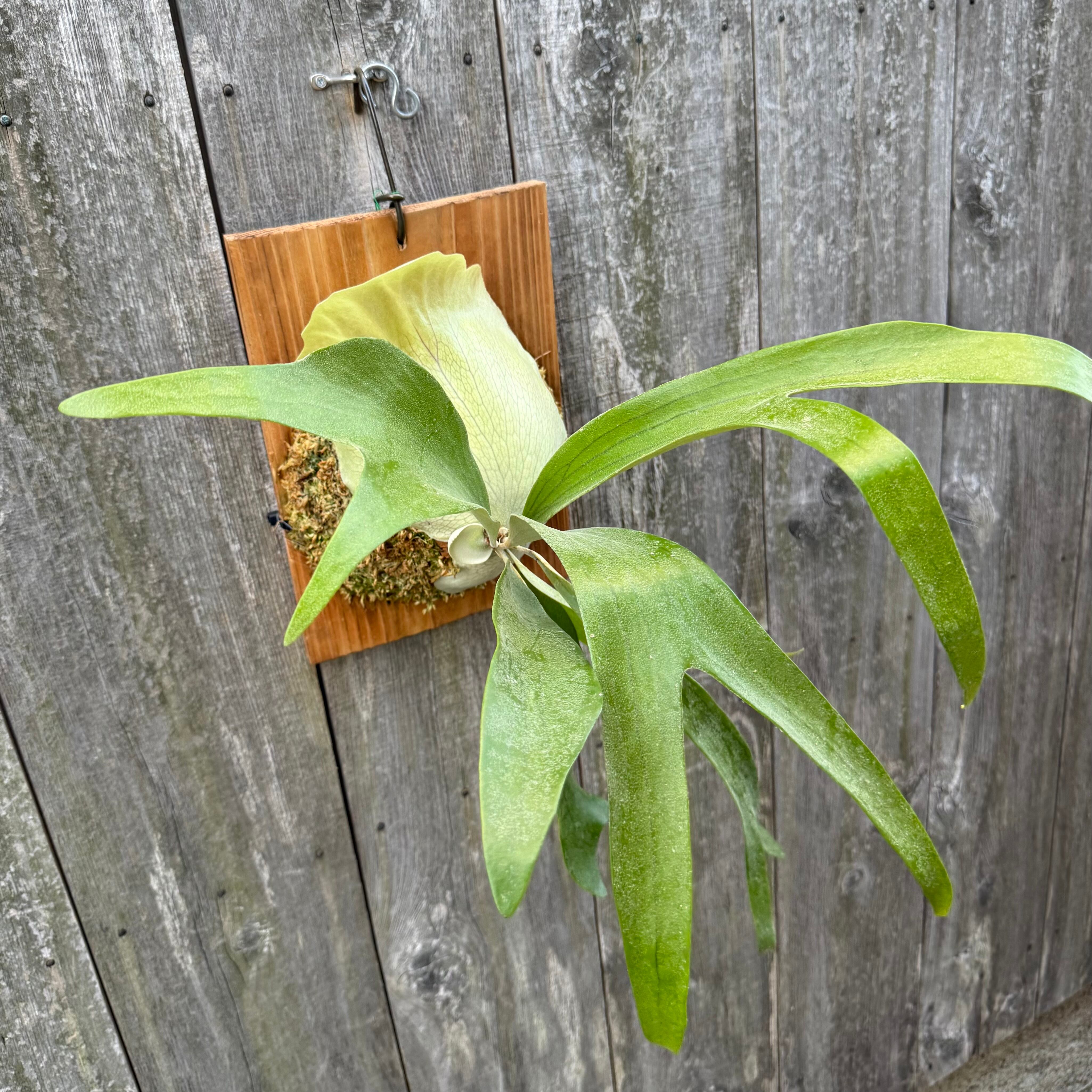 上向に伸びてから垂れる胞子葉は、優雅で美しい姿に成長します。ワイルドのビフルカツムのハイブリッド品種とされ、日本ではかなり希少な品種になります。CK Pavilion から仕入れた株からの子株となります。