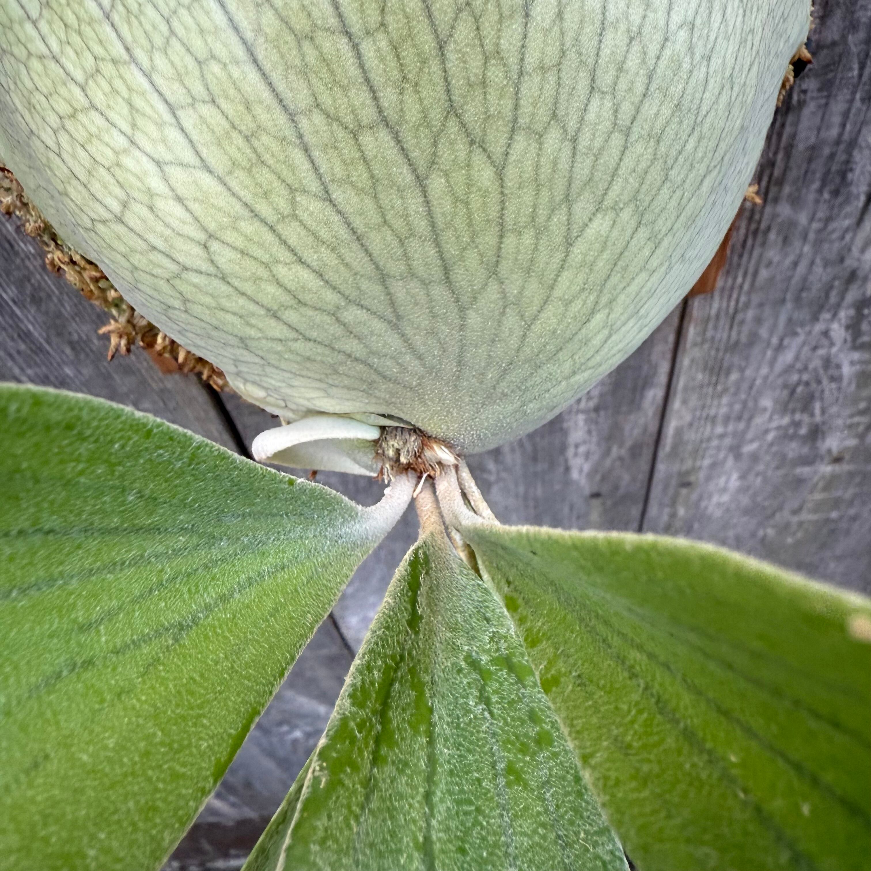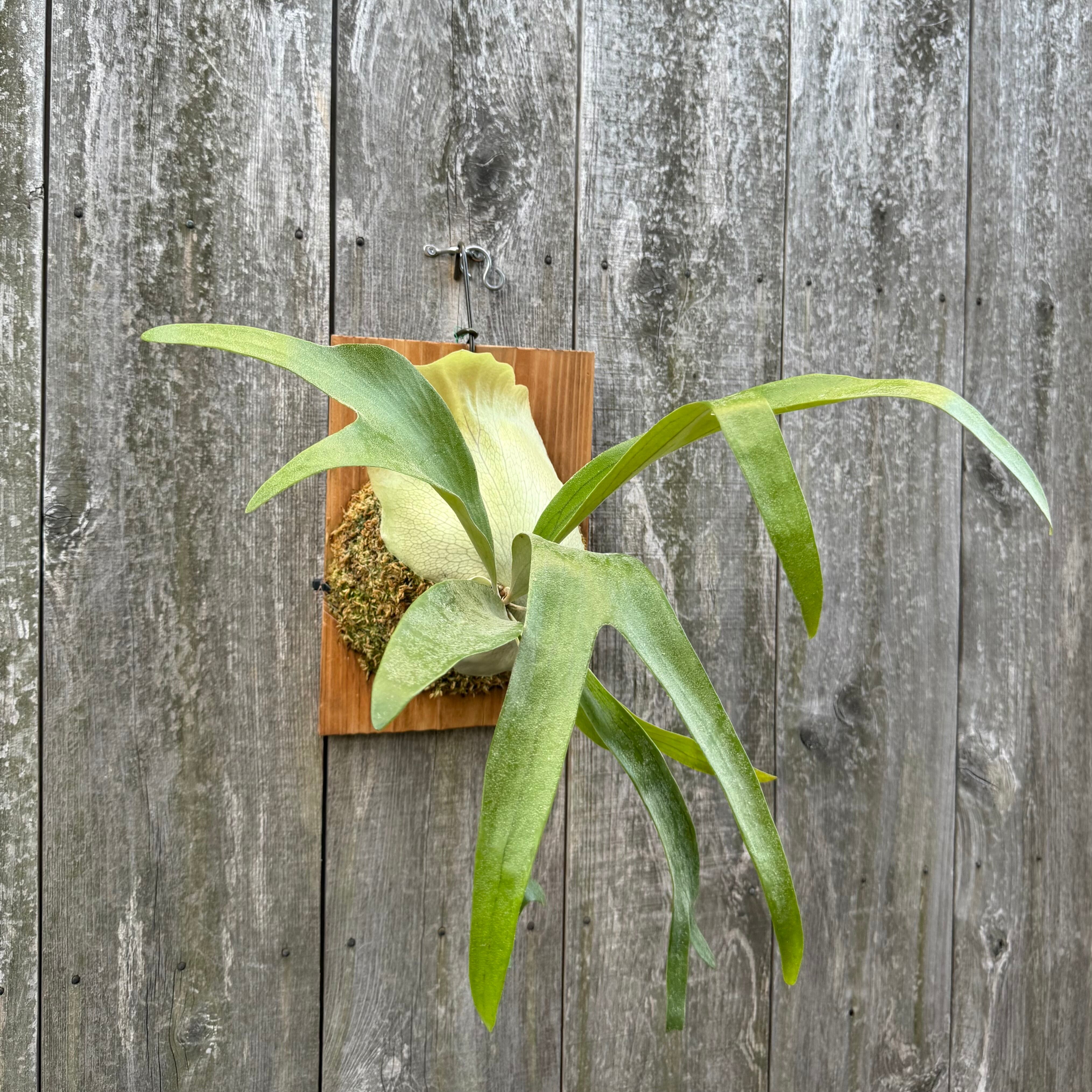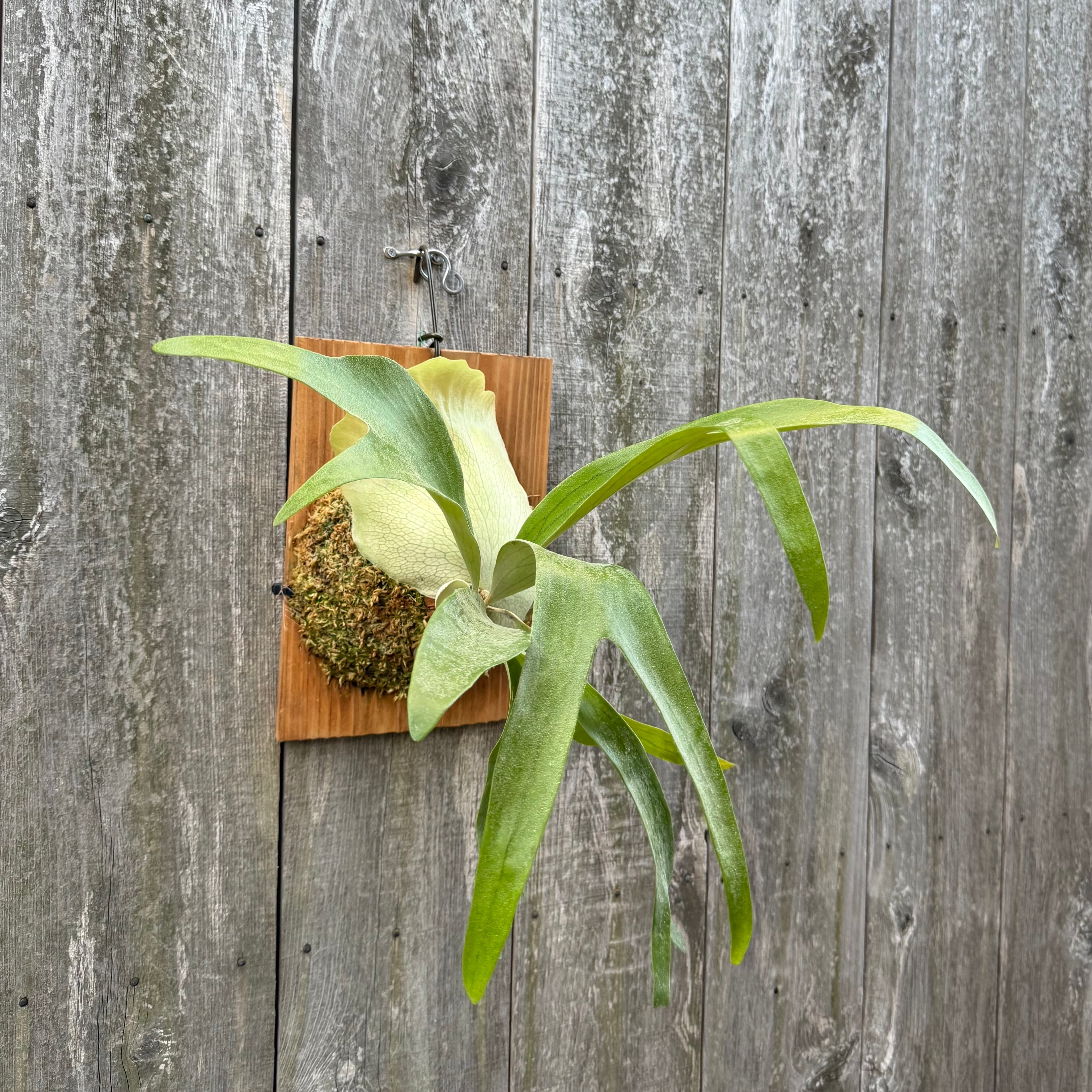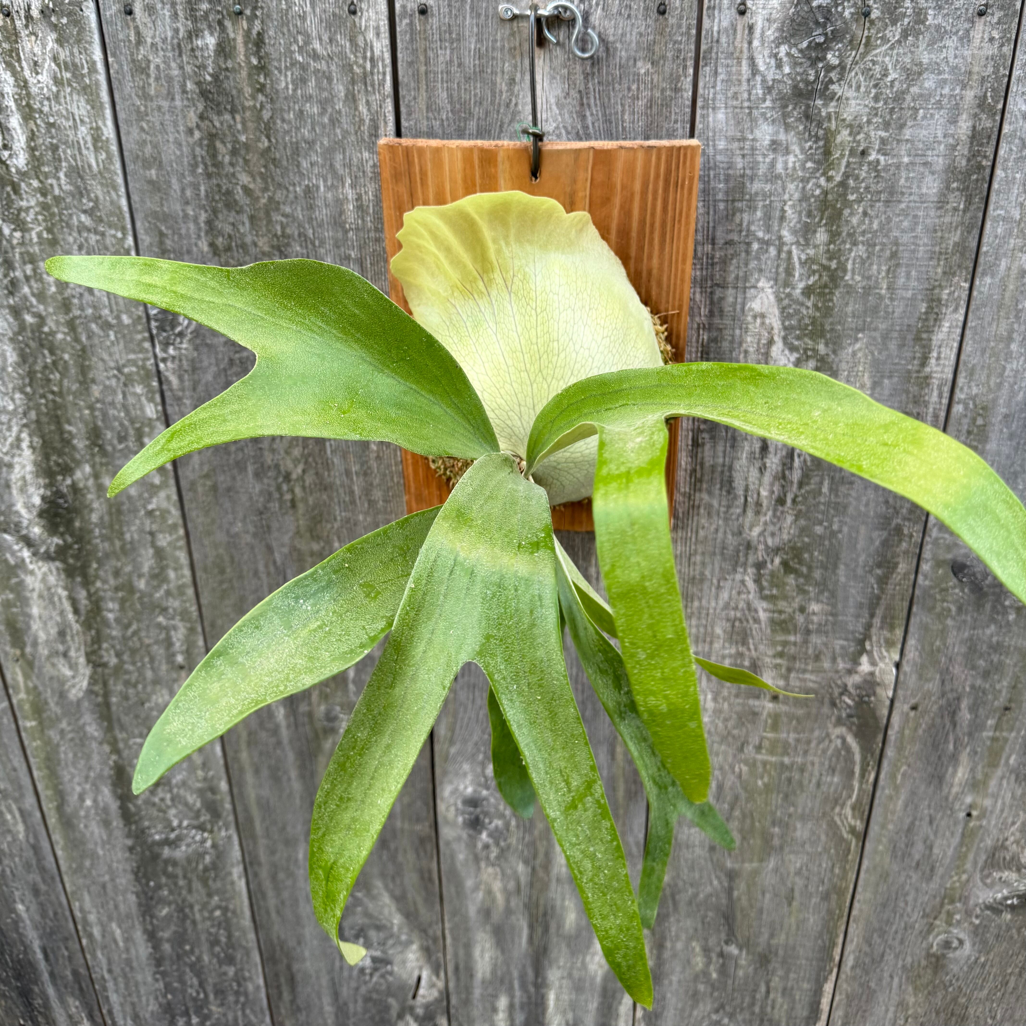 上向に伸びてから垂れる胞子葉は、優雅で美しい姿に成長します。ワイルドのビフルカツムのハイブリッド品種とされ、日本ではかなり希少な品種になります。CK Pavilion から仕入れた株からの子株となります。